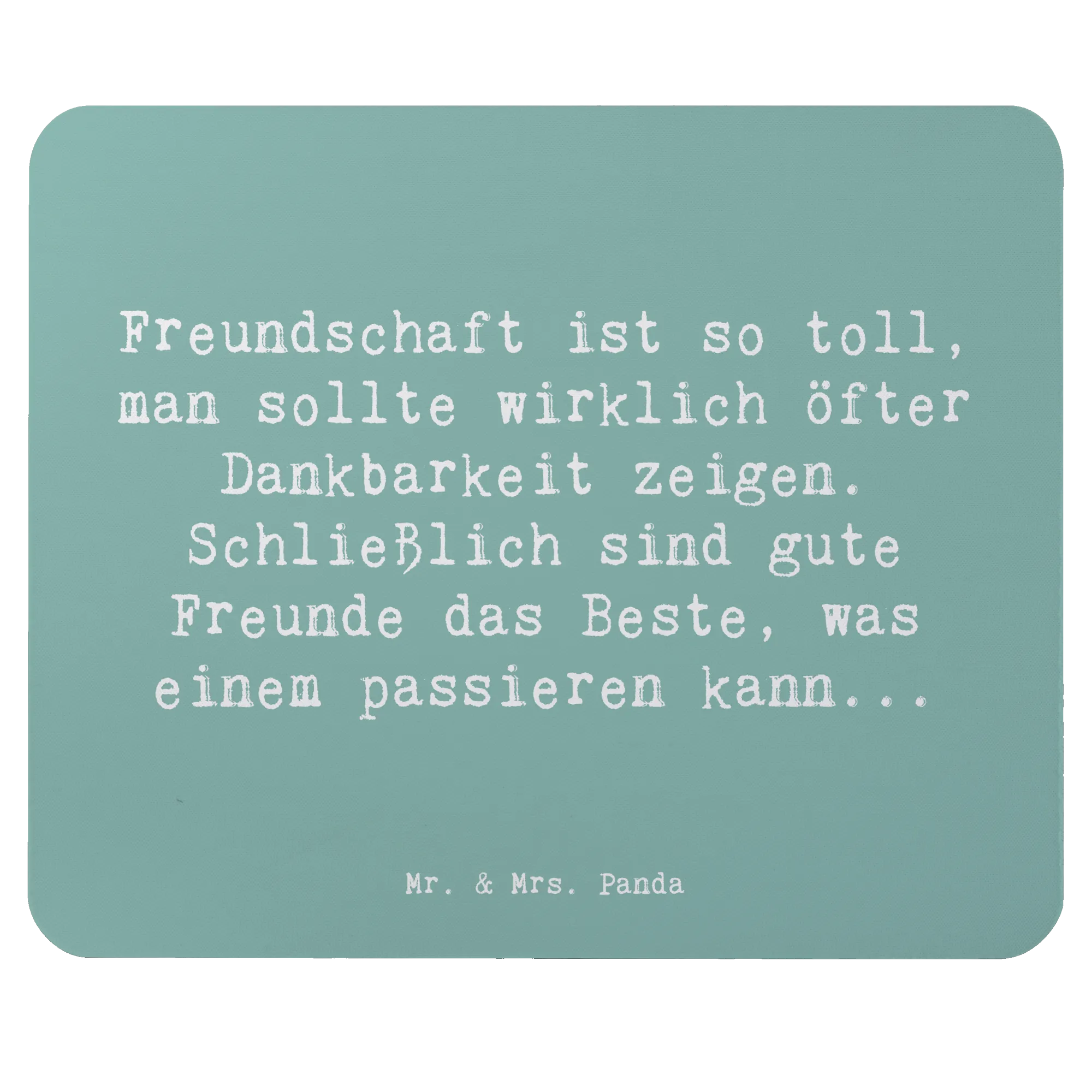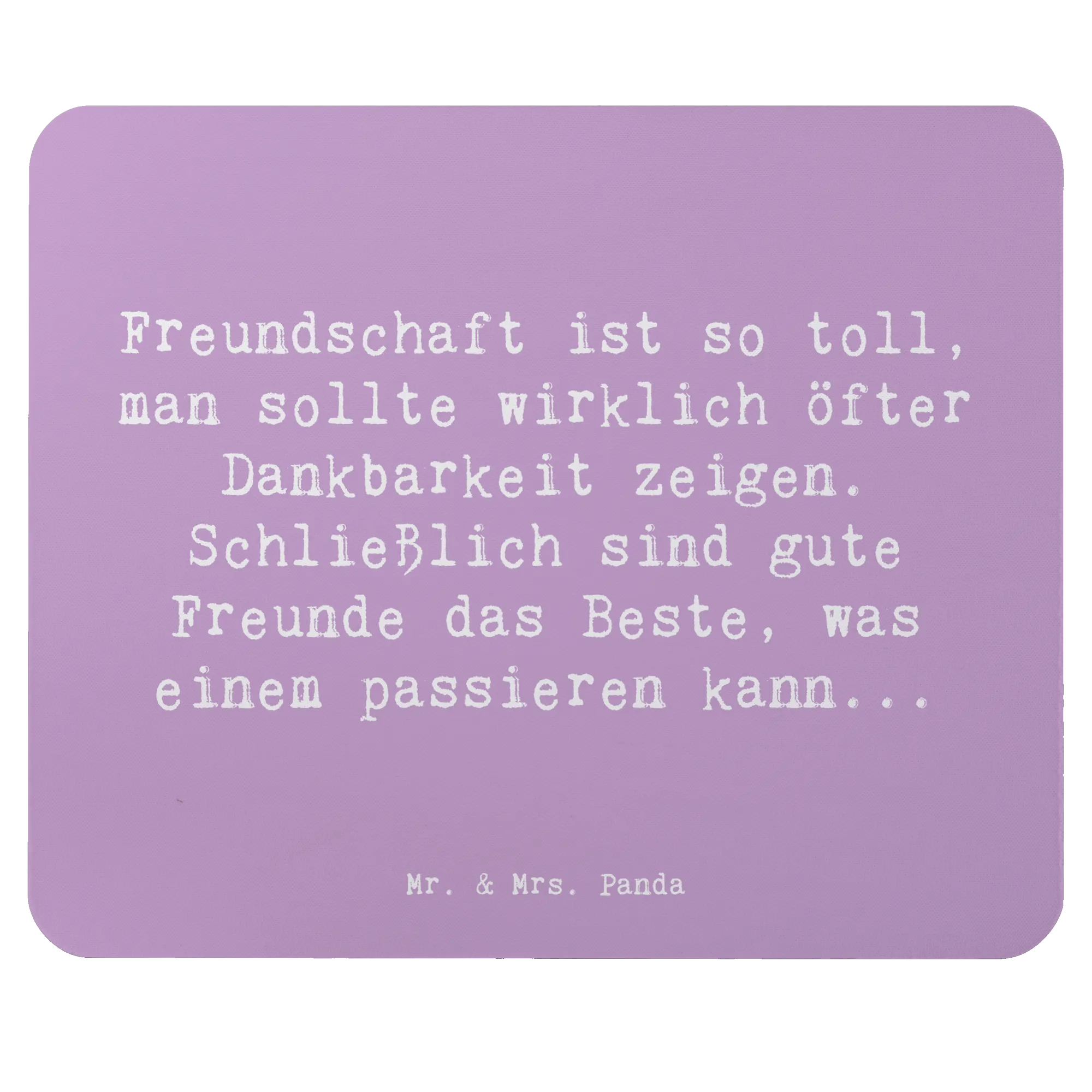 Das Mauspad "Dankbarkeit für Freundschaft" aus der fantastischen Kollektion "Gefühle & Stimmungen" von Mr. & Mrs. Panda ist nicht nur ein stilvolles Accessoire für dein Büro oder Homeoffice, sondern auch ein wunderbares Geschenk für jeden, der Freundschaft schätzt. Dieses einzigartige Mauspad, bedruckt mit einem liebevollen Spruch, erinnert dich und deine Freunde daran, wie wichtig es ist, Dankbarkeit zu zeigen und die kleinen Dinge im Leben zu schätzen. Der Spruch „Freundschaft ist so toll, man sollte wirklich öfter Dankbarkeit zeigen. Schließlich sind gute Freunde das Beste, was einem passieren kann...“ wird jeden Tag ein Lächeln auf dein Gesicht zaubern und die Atmosphäre in deinem Arbeitszimmer aufhellen.