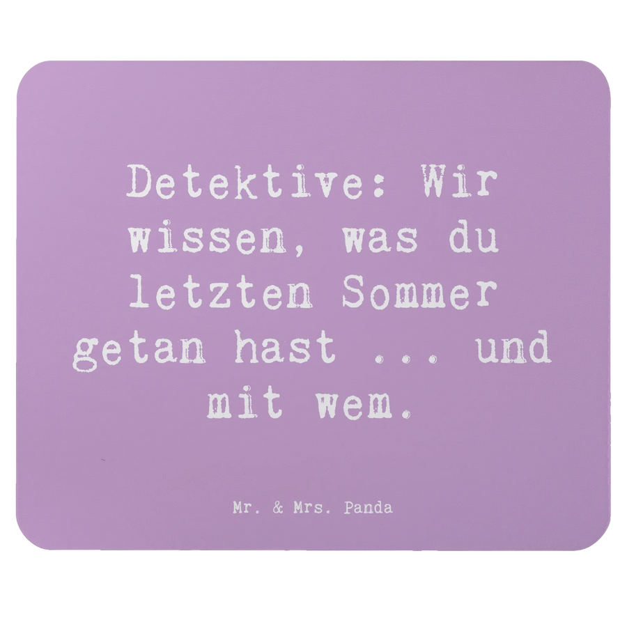 Bist du auf der Suche nach einem ganz besonderen Geschenk für den Detektiv in deinem Leben? Dann ist unser bezauberndes Mauspad "Detektive: Wir wissen, was du letzten Sommer getan hast ... und mit wem." aus der Berufe Kollektion von Mr. & Mrs. Panda genau das Richtige!