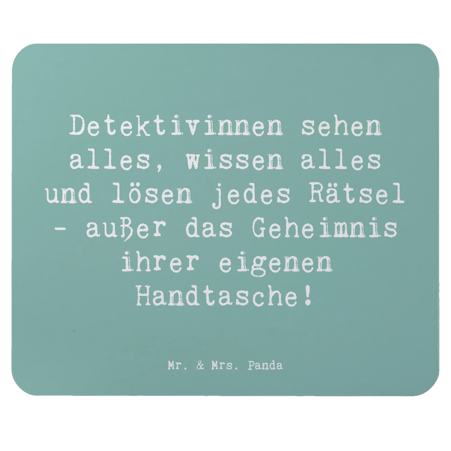 Das Mauspad "Detektivin" von Mr. & Mrs. Panda ist das ideale Accessoire für alle, die sich leidenschaftlich für ihren Beruf als Detektivin einsetzen. Mit dem witzigen Slogan "Detektivinnen sehen alles, wissen alles und lösen jedes Rätsel - außer das Geheimnis ihrer eigenen Handtasche!" bringt es einen humorvollen und einzigartigen Touch in deinen Alltag und lässt dich in jeder Sekunde deiner Arbeit schmunzeln. Dieses Mauspad ist nicht nur ein echter Blickfang, es bietet auch einen komfortablen und ergonomischen Arbeitsplatz.