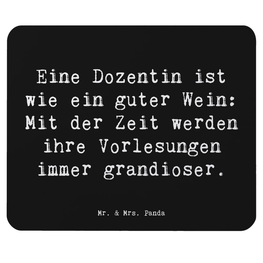 Suchst Du das perfekte Geschenk für eine Dozentin oder um Deine eigene Schreibtischausstattung aufzupeppen? Dann ist das Mauspad von Mr. & Mrs. Panda genau das Richtige! Mit dem charmanten Spruch "Eine Dozentin ist wie ein guter Wein: Mit der Zeit werden ihre Vorlesungen immer grandioser" versehen, bringt dieses Mauspad nicht nur Freude, sondern auch einen Hauch von Humor in den Arbeitsalltag.