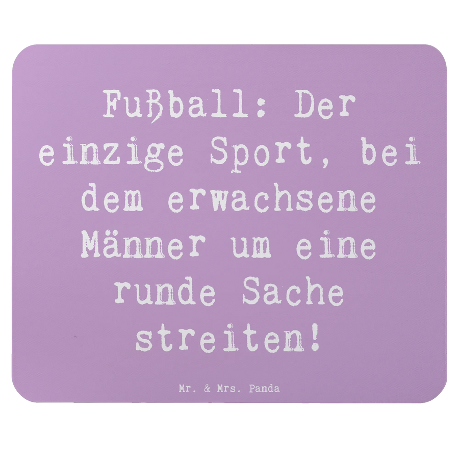 Wenn du auf der Suche nach einem besonderen Geschenk für einen Fußball-Enthusiasten bist, dann ist das Mauspad mit dem Motto "Fußball: Der einzige Sport, bei dem erwachsene Männer um eine runde Sache streiten!" von Mr. & Mrs. Panda die perfekte Wahl!