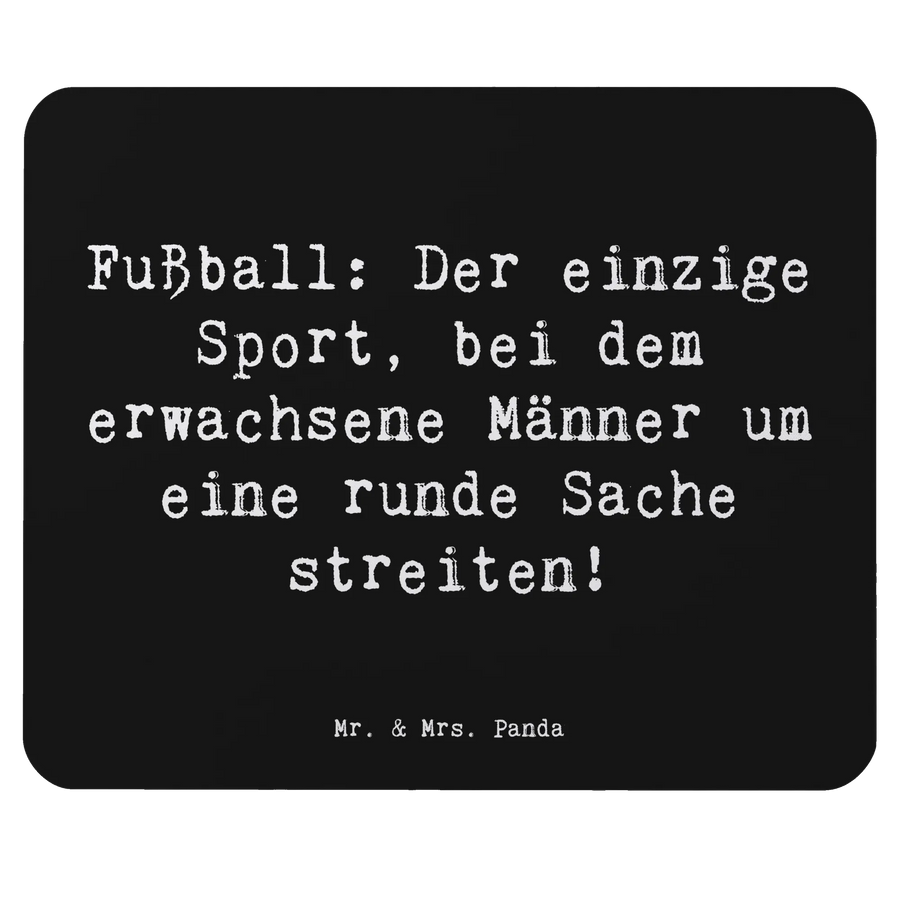 Wenn du auf der Suche nach einem besonderen Geschenk für einen Fußball-Enthusiasten bist, dann ist das Mauspad mit dem Motto "Fußball: Der einzige Sport, bei dem erwachsene Männer um eine runde Sache streiten!" von Mr. & Mrs. Panda die perfekte Wahl!