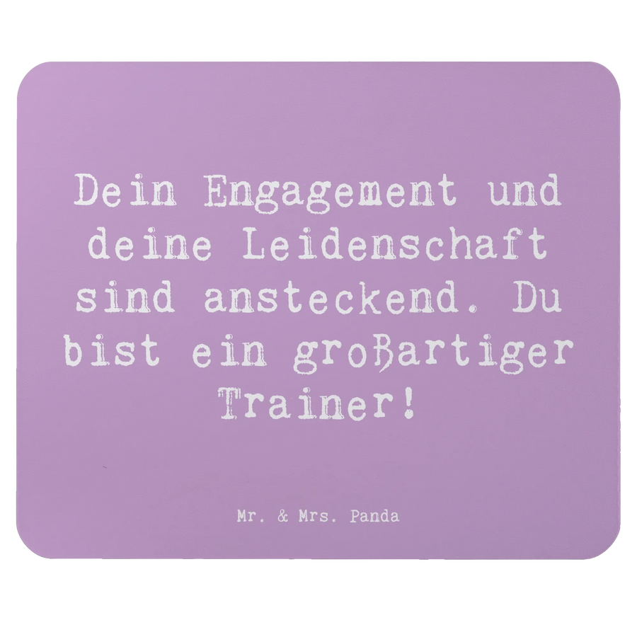 Das wundervolle Mauspad "Trainer" aus der Danke-Kollektion von Mr. & Mrs. Panda ist der perfekte Begleiter für jeden, der seine Leidenschaft für das Coaching und Training ausleben möchte. Mit dem inspirierenden Spruch "Dein Engagement und deine Leidenschaft sind ansteckend. Du bist ein großartiger Trainer!" bringt dieses Mauspad eine besondere Motivation in deinen Arbeitsalltag oder dein Homeoffice.