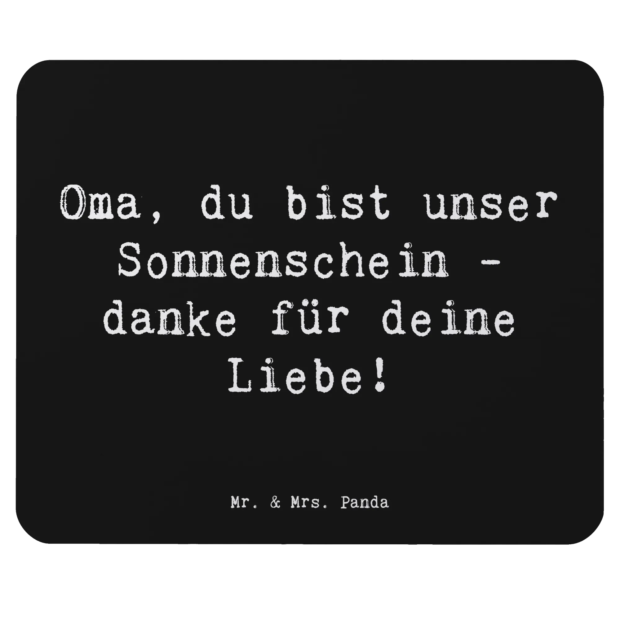 Auf dem Mauspad prangt der süße Spruch: "Oma, du bist unser Sonnenschein - danke für deine Liebe!", der jeden Arbeitsalltag mit einem Lächeln verzaubert und eine warme Atmosphäre schafft.