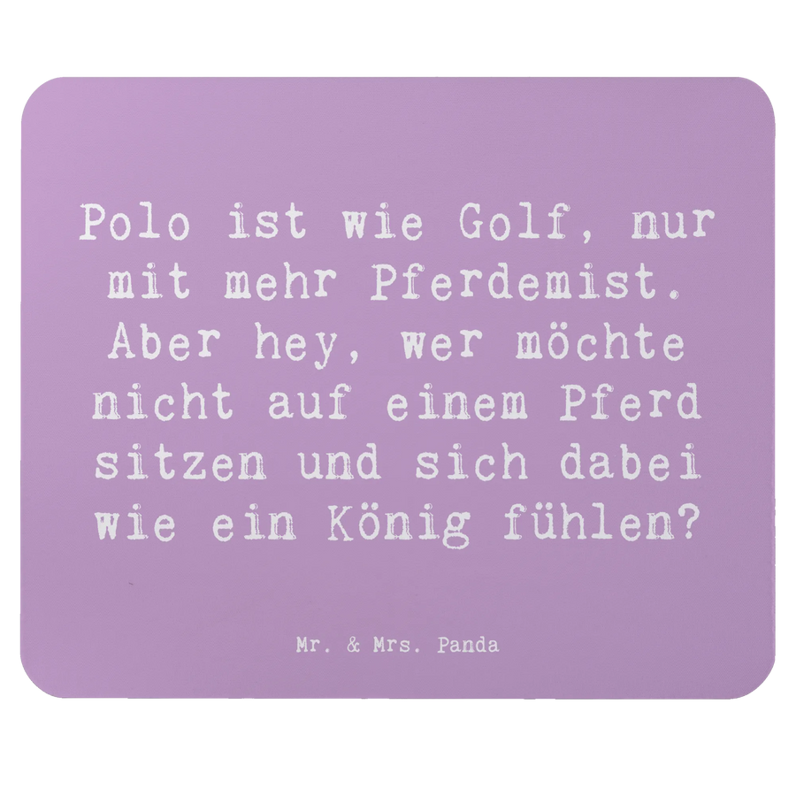 Das wunderschöne Mauspad von Mr. & Mrs. Panda ist der perfekte Begleiter für jeden Sportliebhaber, der am Computer arbeitet oder spielt. Mit dem einzigartigen Motiv "Polo ist wie Golf, nur mit mehr Pferdemist. Aber hey, wer möchte nicht auf einem Pferd sitzen und sich dabei wie ein König fühlen?" zaubert es ein Lächeln in dein Gesicht und lässt dich bei jeder Nutzung die Freude am Sport spüren.