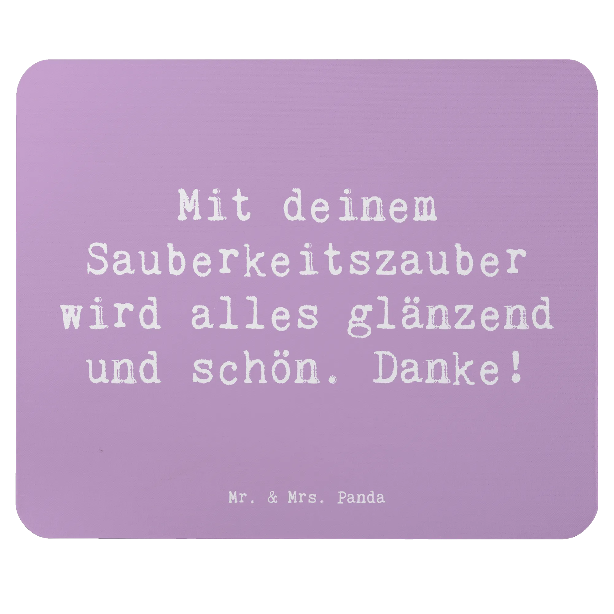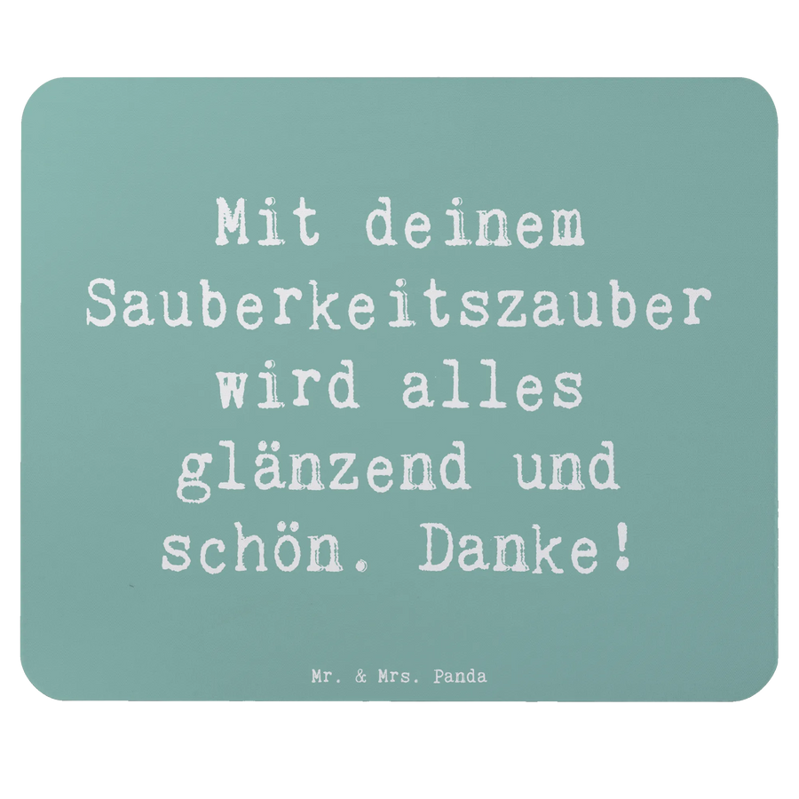 Mit einem tollen Slogan, der lebt: "Mit deinem Sauberkeitszauber wird alles glänzend und schön. Danke!" wird dieses Mauspad zum idealen Blickfang in jedem Büro oder Homeoffice. Es bietet nicht nur eine angenehme und handgelenkschonende Oberfläche, sondern ist auch rutschfest und angenehm dick – perfekt für lange Arbeitsstunden.