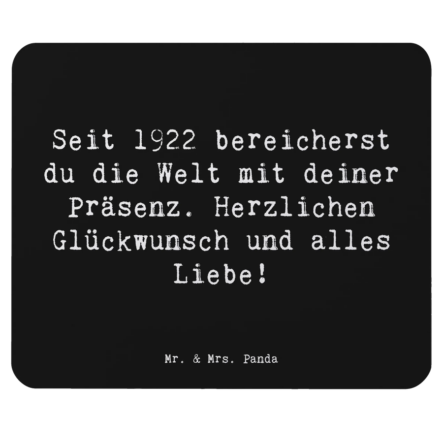 Mauspad Spruch Seit 1922 bereicherst du die Welt mit deiner Präsenz. Herzlichen Glückwunsch und alles Liebe! - Schwarz
