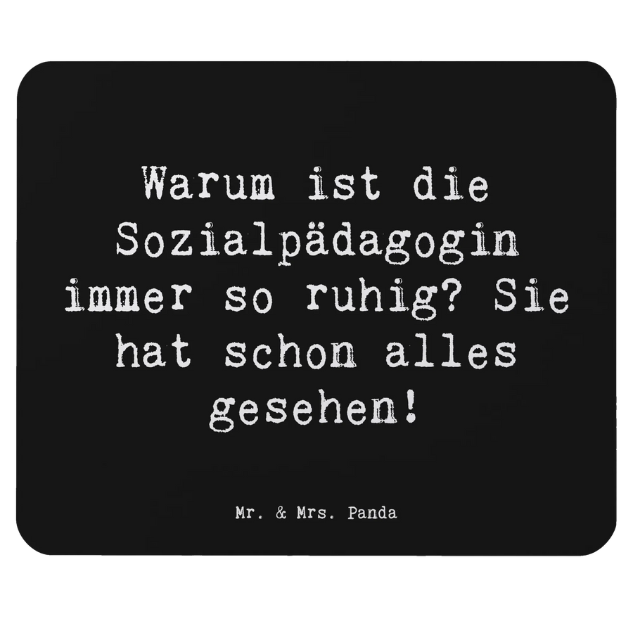 Mauspad Spruch Warum ist die Sozialpädagogin immer so ruhig? Sie hat schon alles gesehen! - Schwarz