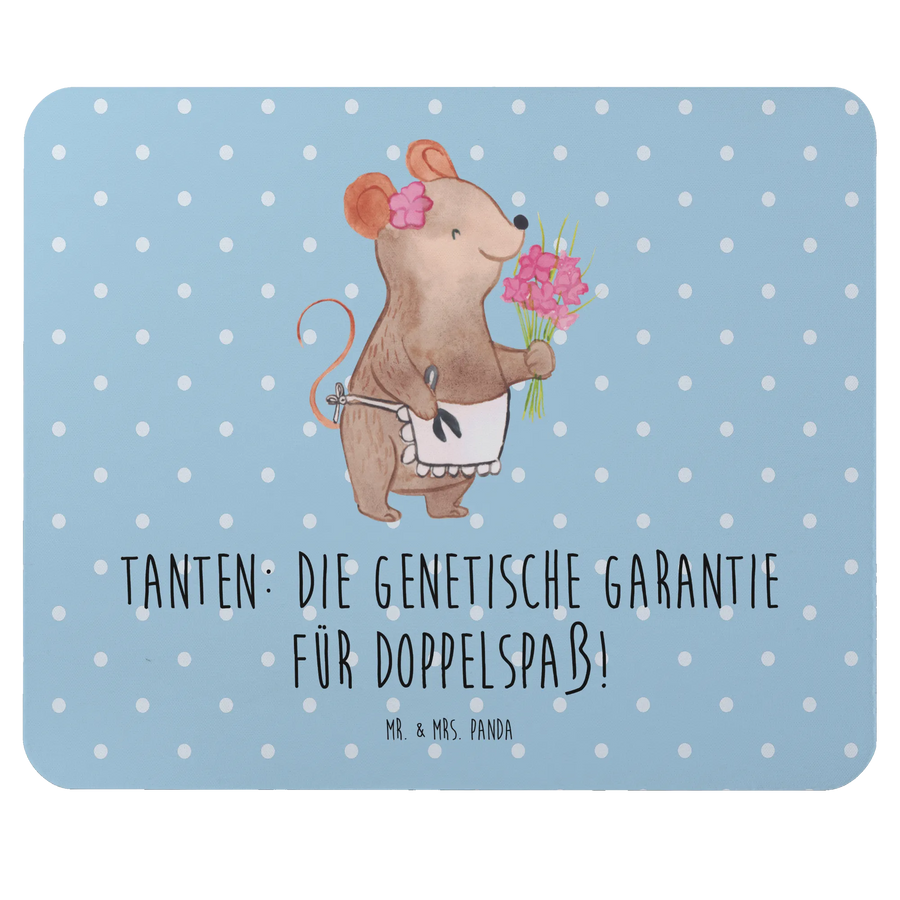 Suchst Du nach einem besonderen Geschenk für Deine Tante oder möchtest Du einfach nur selbst etwas Niedliches für Deinen Arbeitsplatz? Dann ist das Mauspad mit dem tollen Motiv „Tanten: Die genetische Garantie für Doppelspaß!“ von Mr. & Mrs. Panda genau das richtige für Dich!