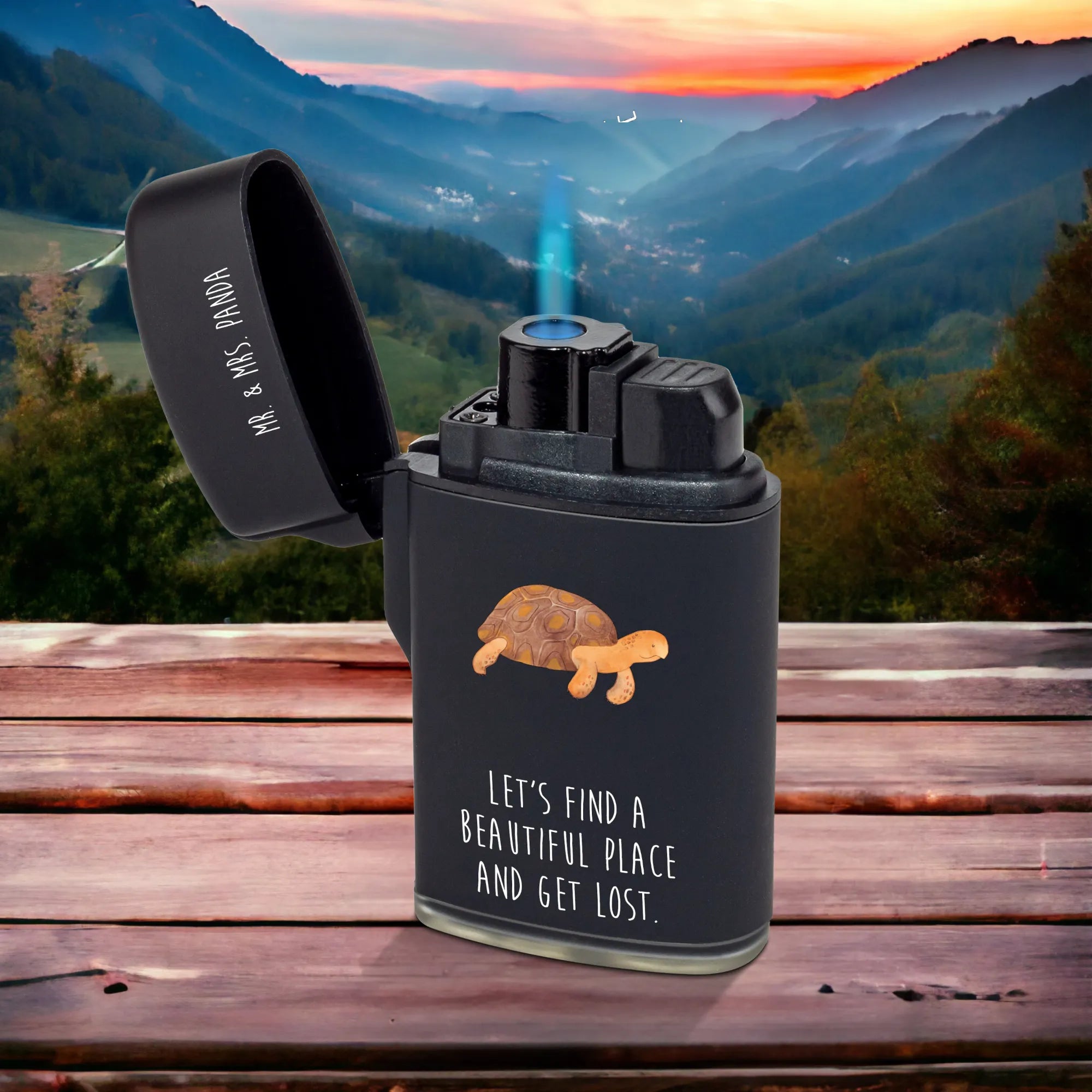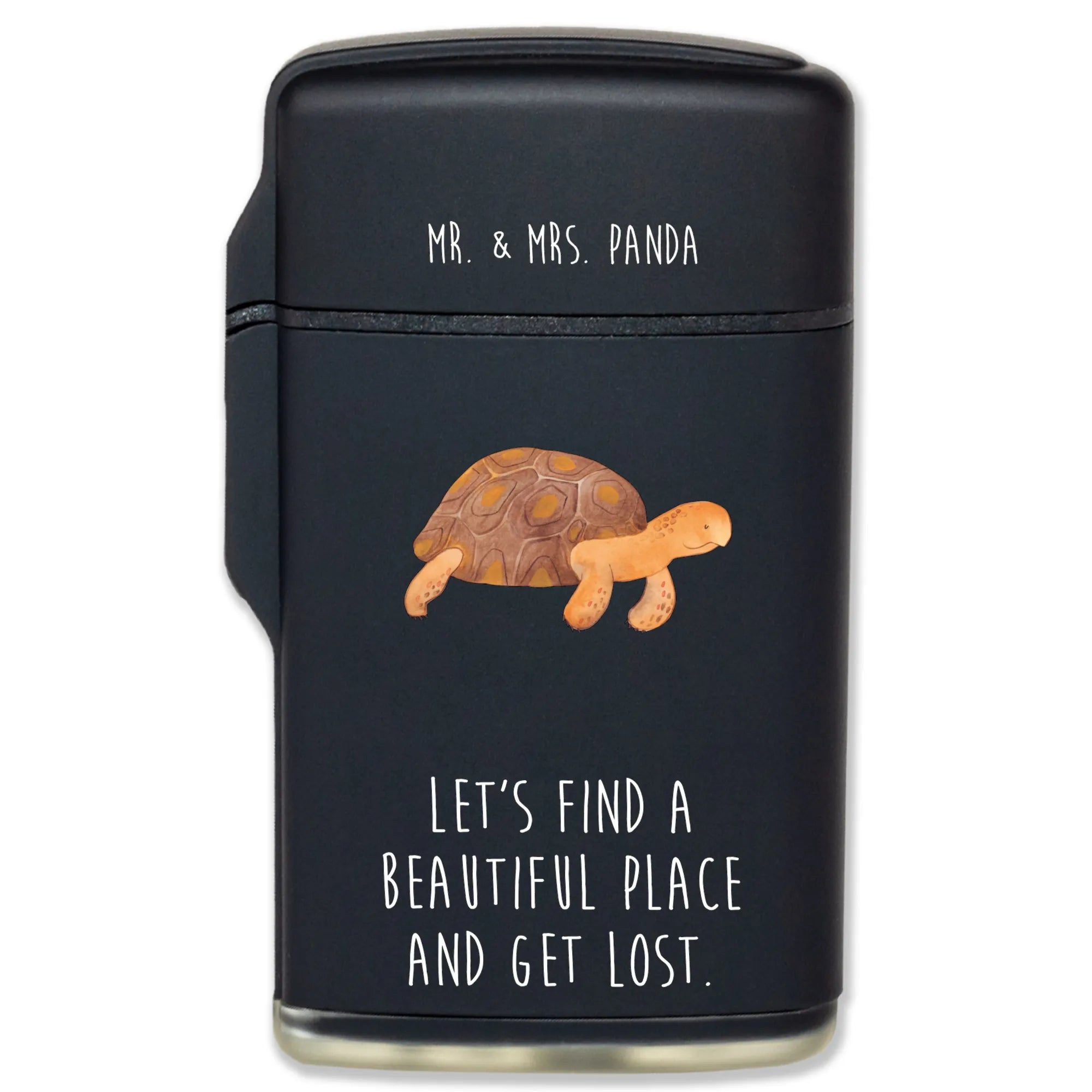 Entdecke das fantastische Feuerzeug mit dem schönen Motiv der Schildkröte aus der Meerestiere Kollektion von Mr. & Mrs. Panda. Dieses einzigartige Feuerzeug ist nicht nur funktional, sondern auch ein echter Hingucker. Mit dem charmanten Entwurf einer Schildkröte, die in einer entspannten Haltung marschiert, inspiriert es dazu, das Leben in vollen Zügen zu genießen und Abenteuer zu suchen. Der bezaubernde Spruch 'Let's find a beautiful place and get lost.' unterstreicht das Gefühl von Freiheit und Wanderlust.