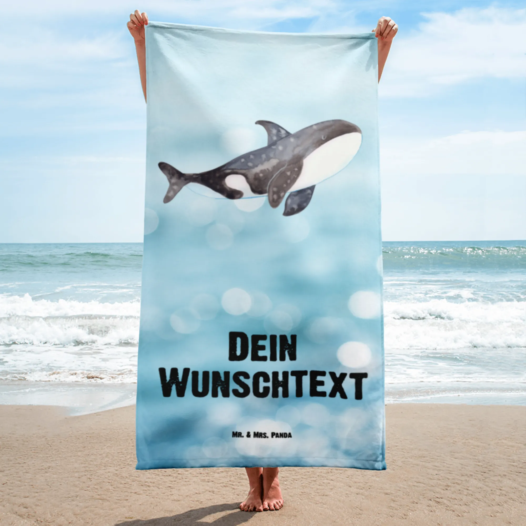 Entdecke das bezaubernde personalisierte Badehandtuch mit Orca-Motiv von Mr. & Mrs. Panda! Dieses wunderschöne Handtuch mit Namen ist nicht nur ein praktischer Begleiter für deinen nächsten Strandtag oder den Besuch im Schwimmbad, sondern auch eine herzerwärmende Geschenkidee.
