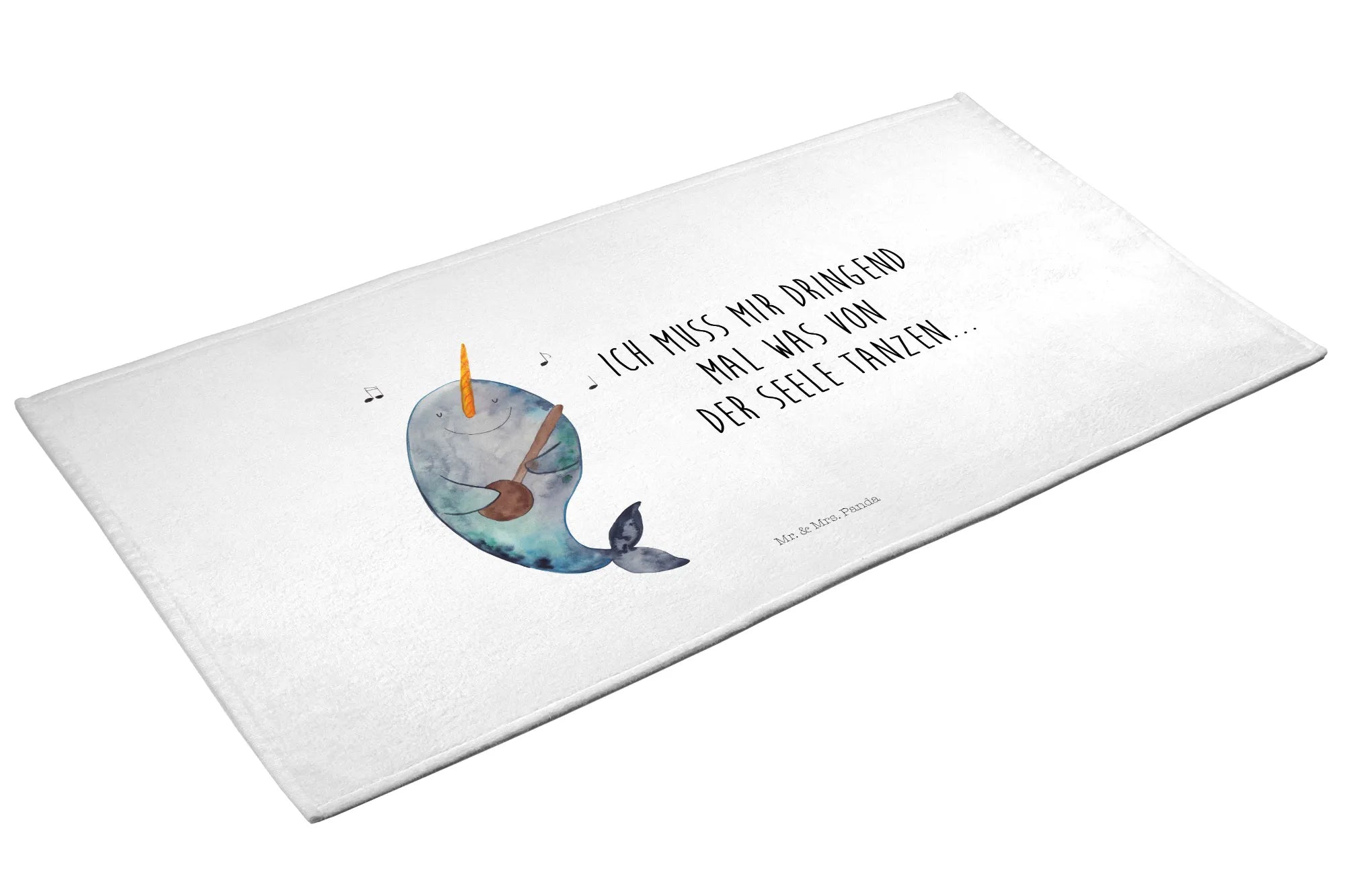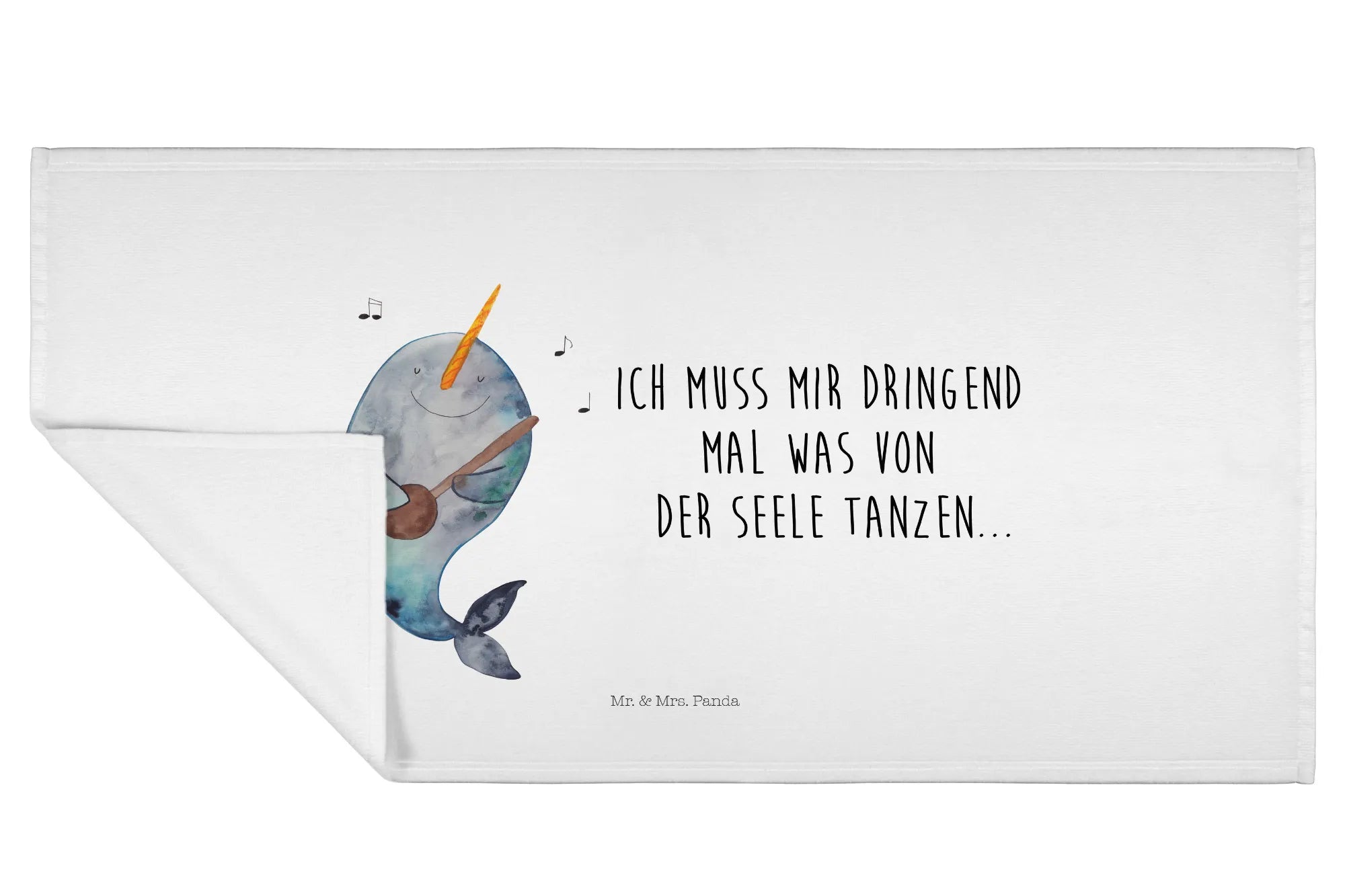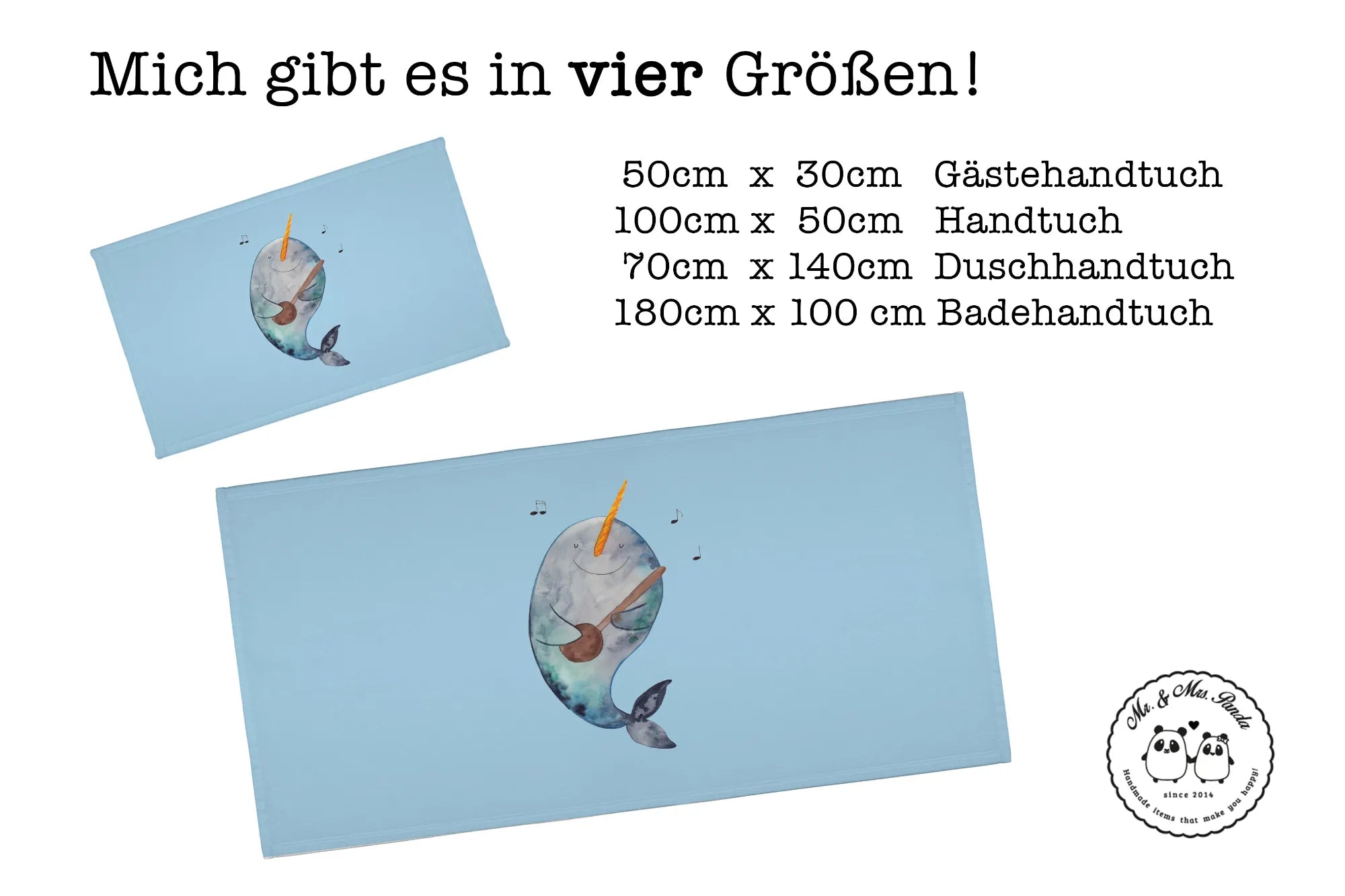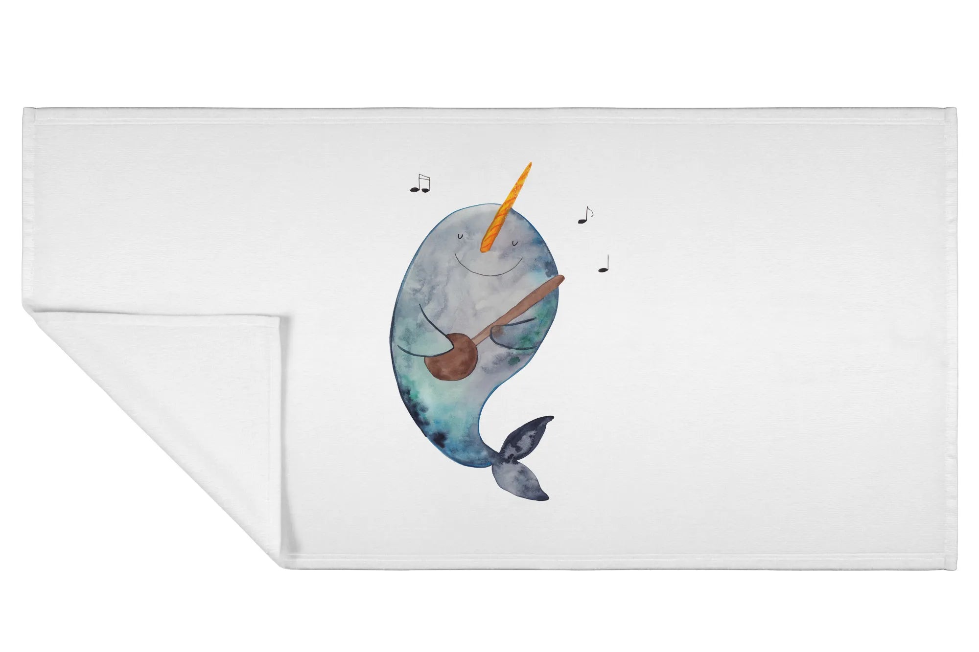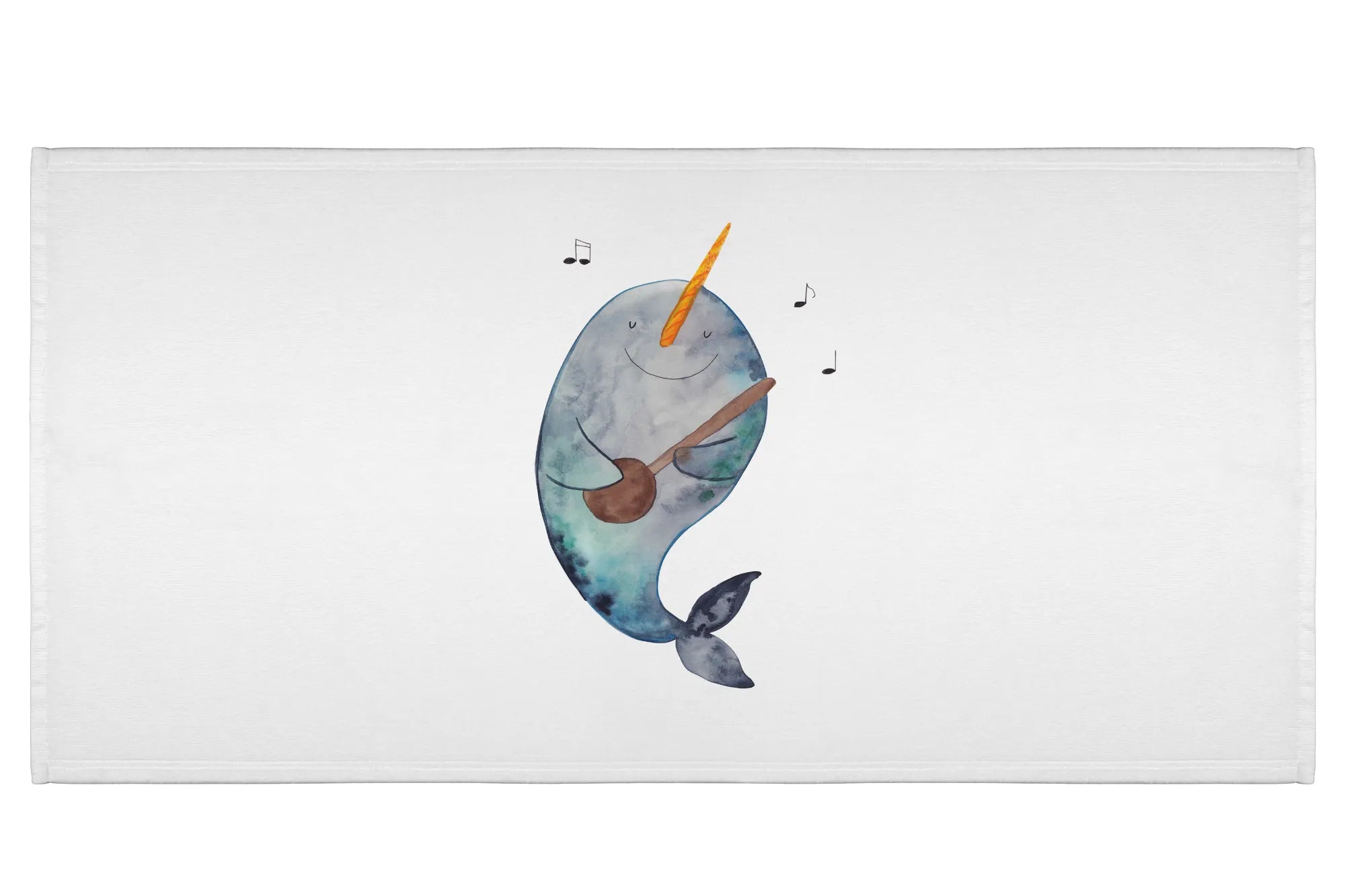 Das 50 x 100 Handtuch von Mr. & Mrs. Panda mit dem fröhlichen Narwal-Motiv und Gitarre ist der perfekte Begleiter für dein Badezimmer!