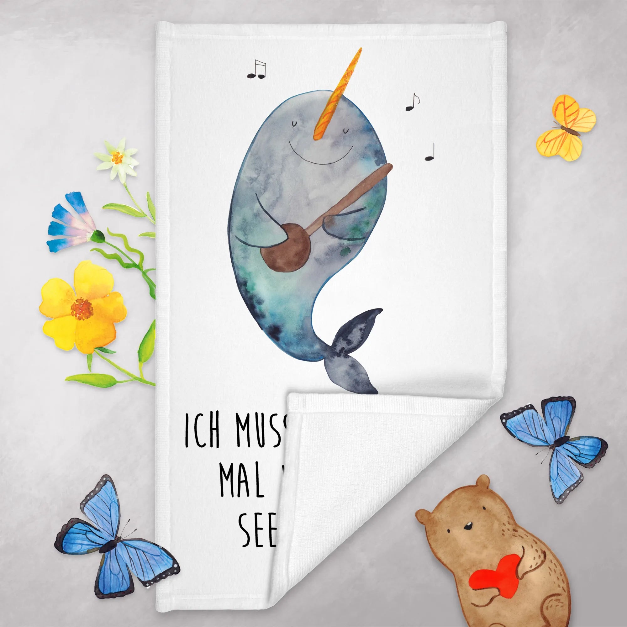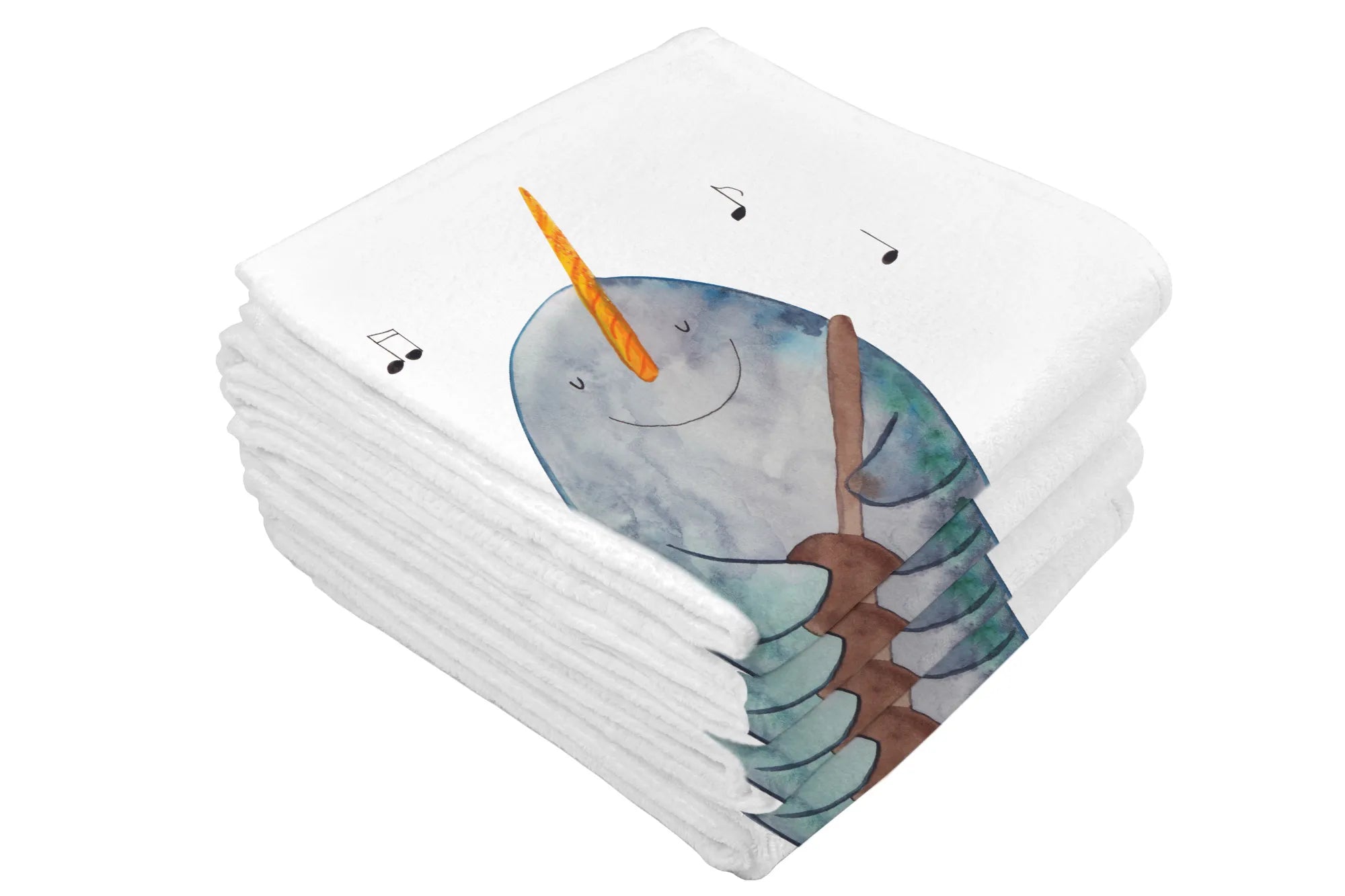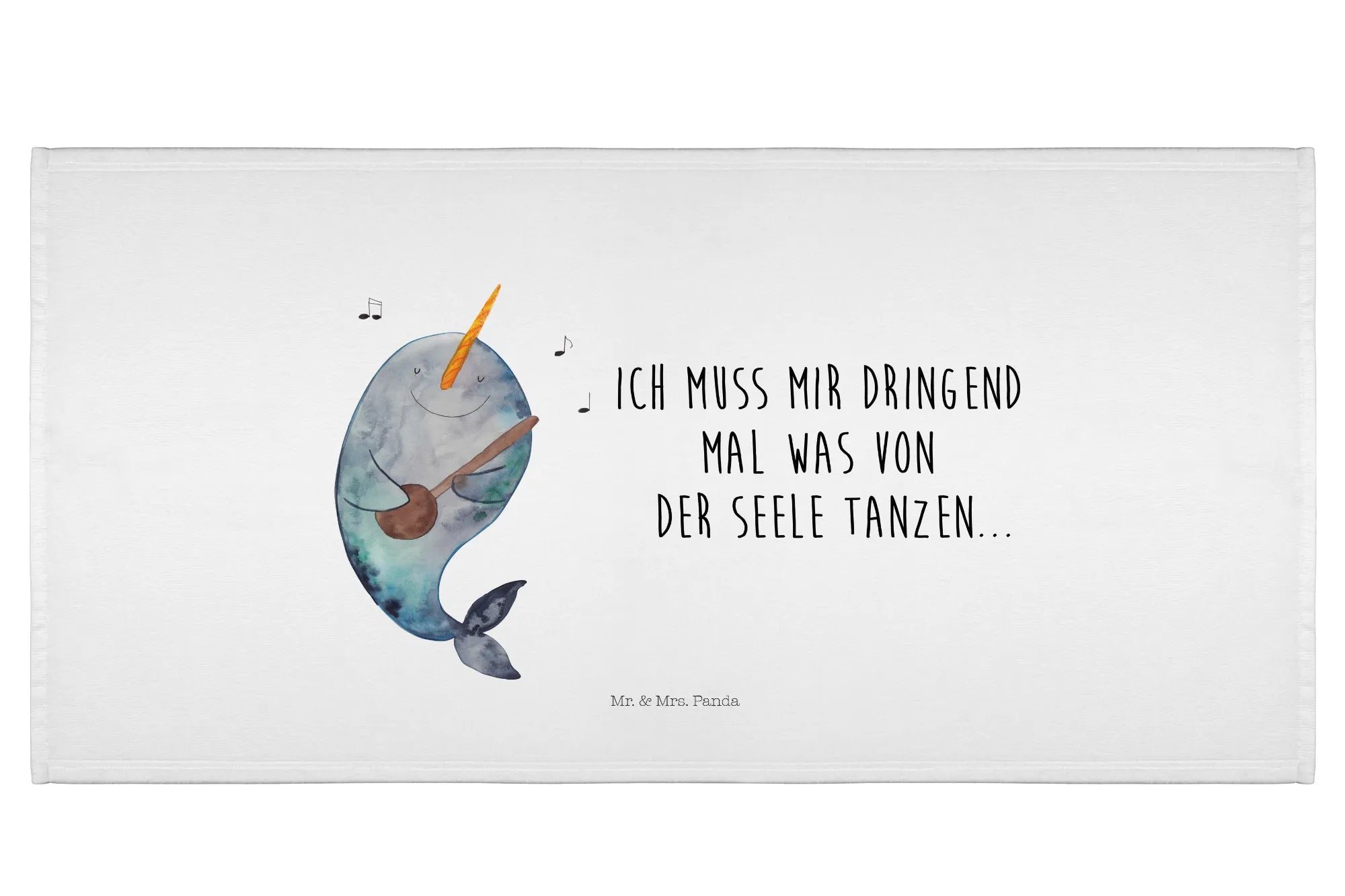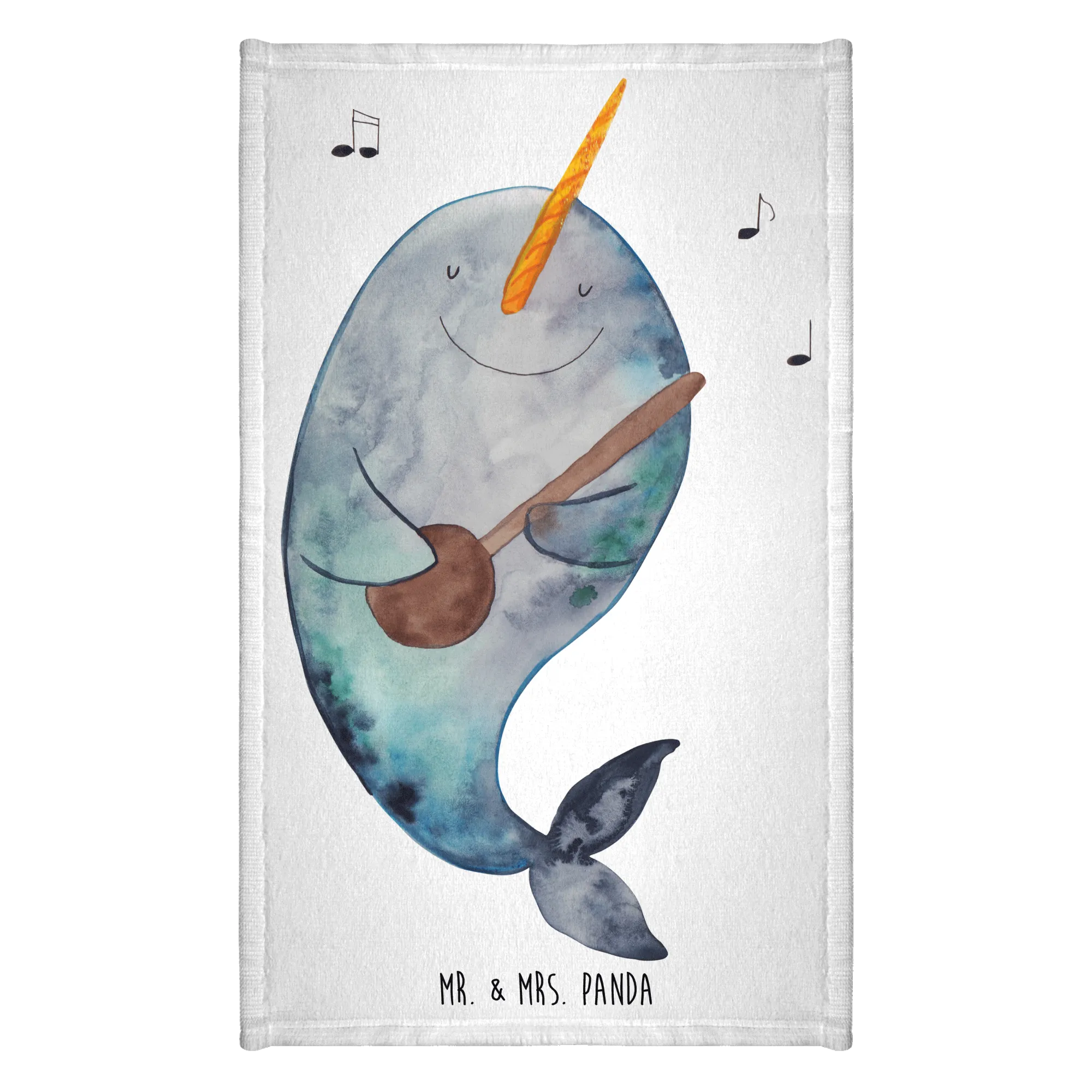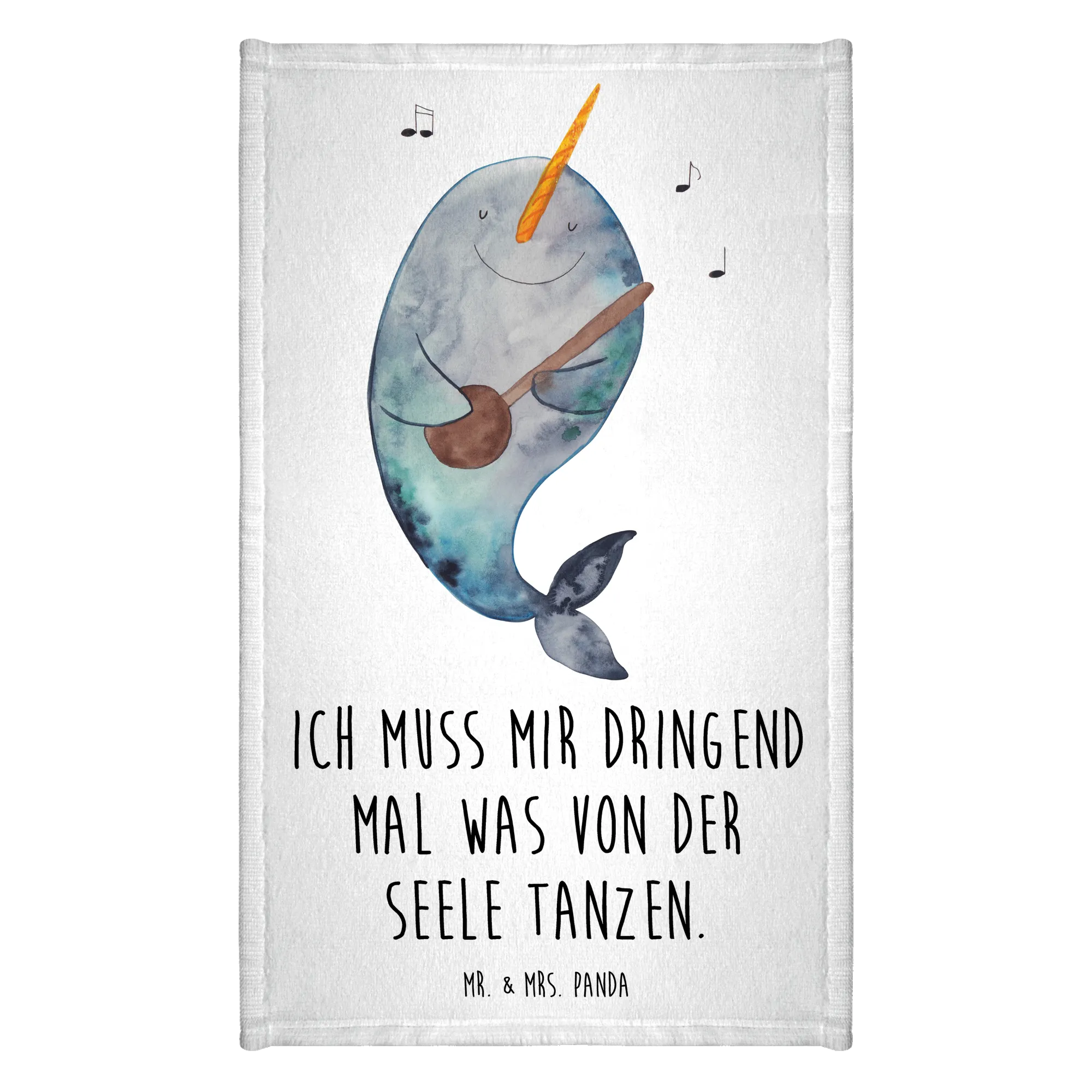 Das 50 x 100 Handtuch von Mr. & Mrs. Panda mit dem fröhlichen Narwal-Motiv und Gitarre ist der perfekte Begleiter für dein Badezimmer!