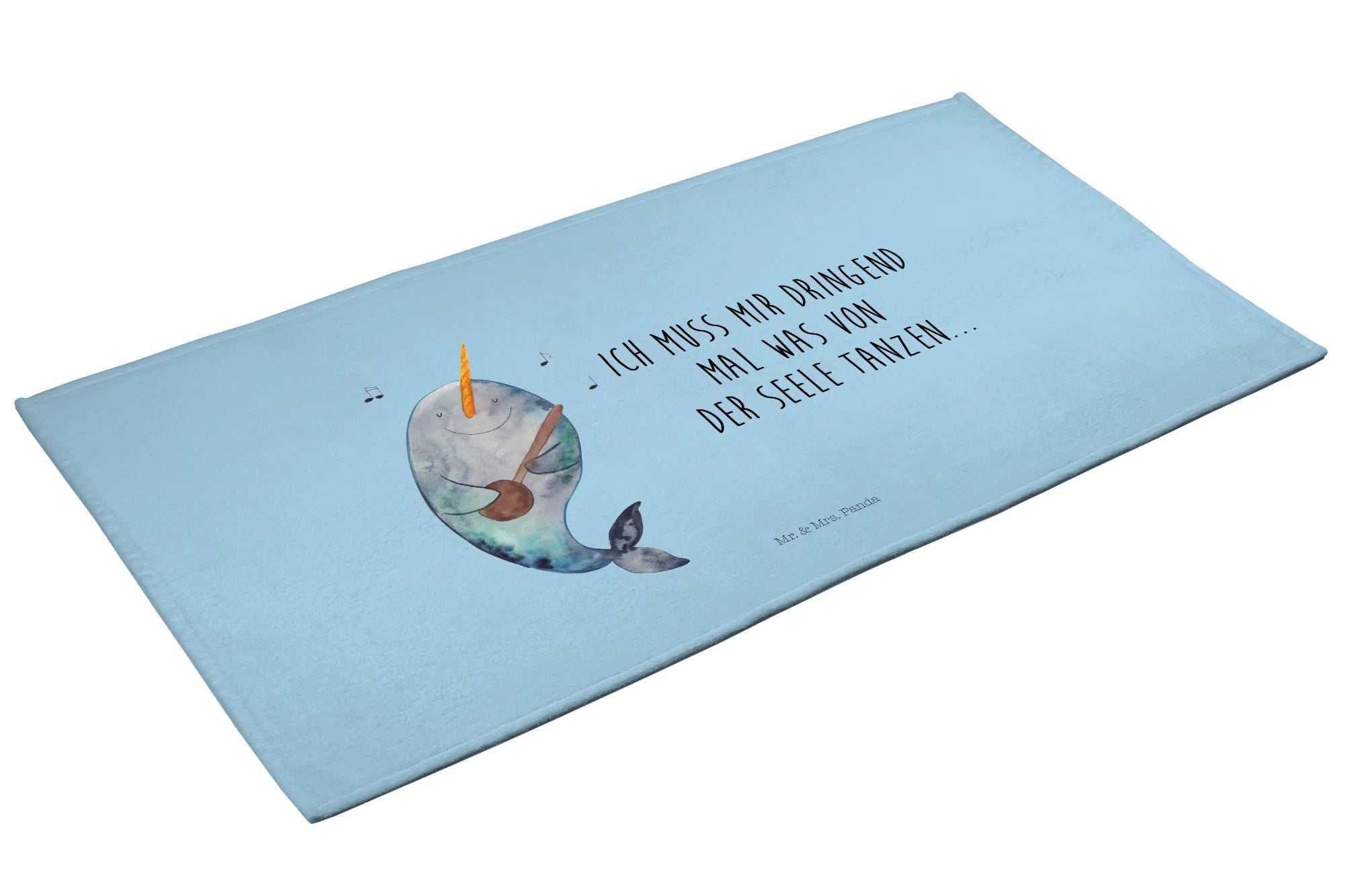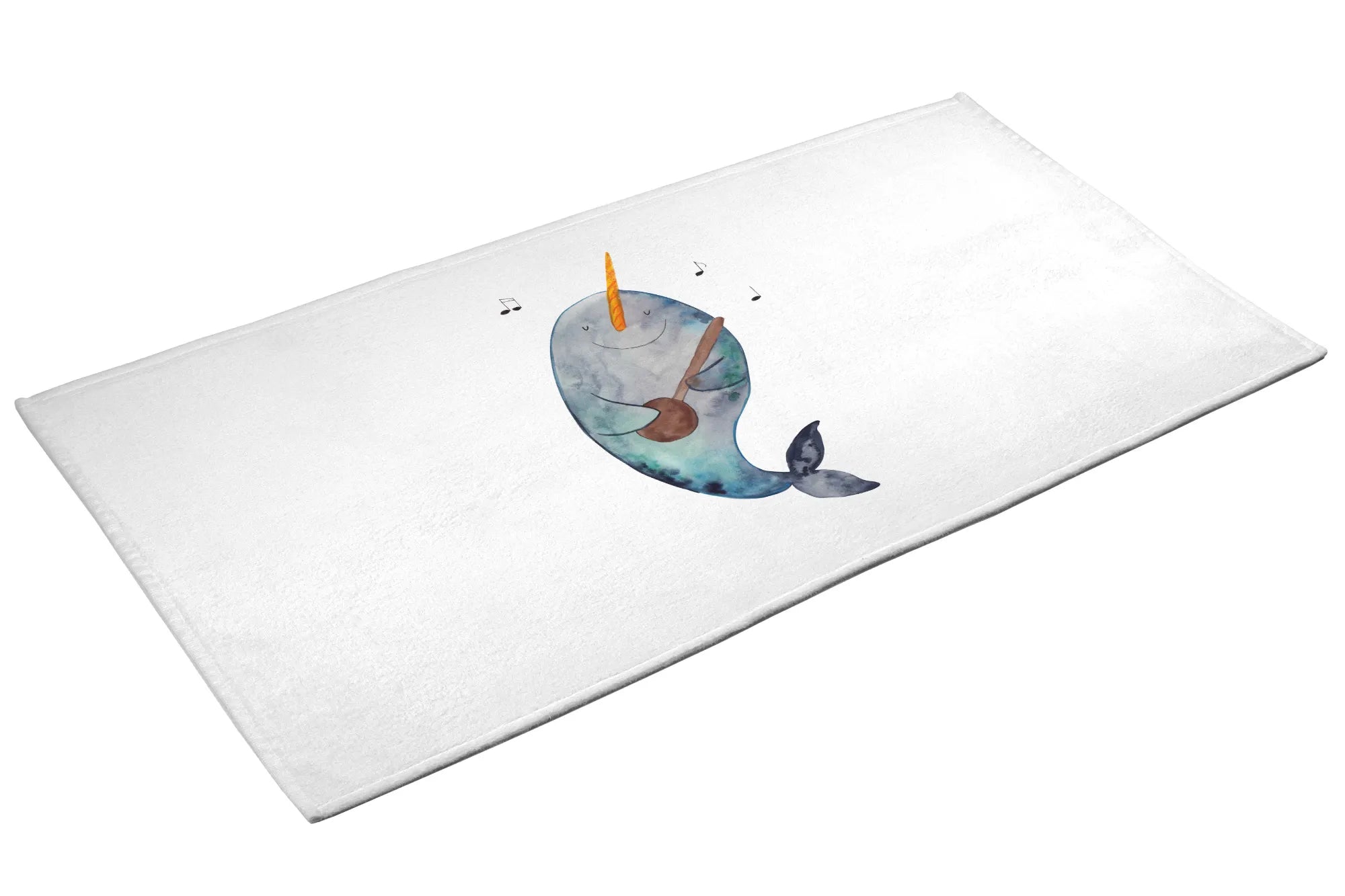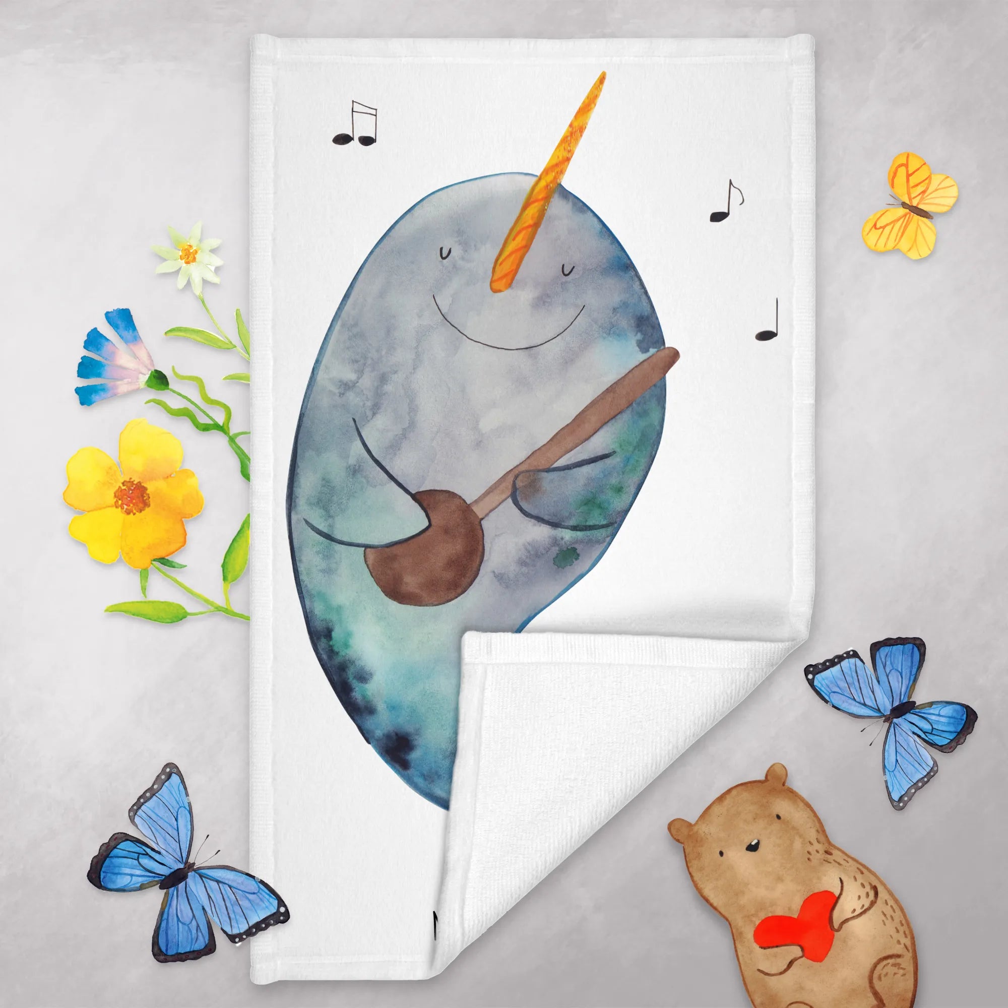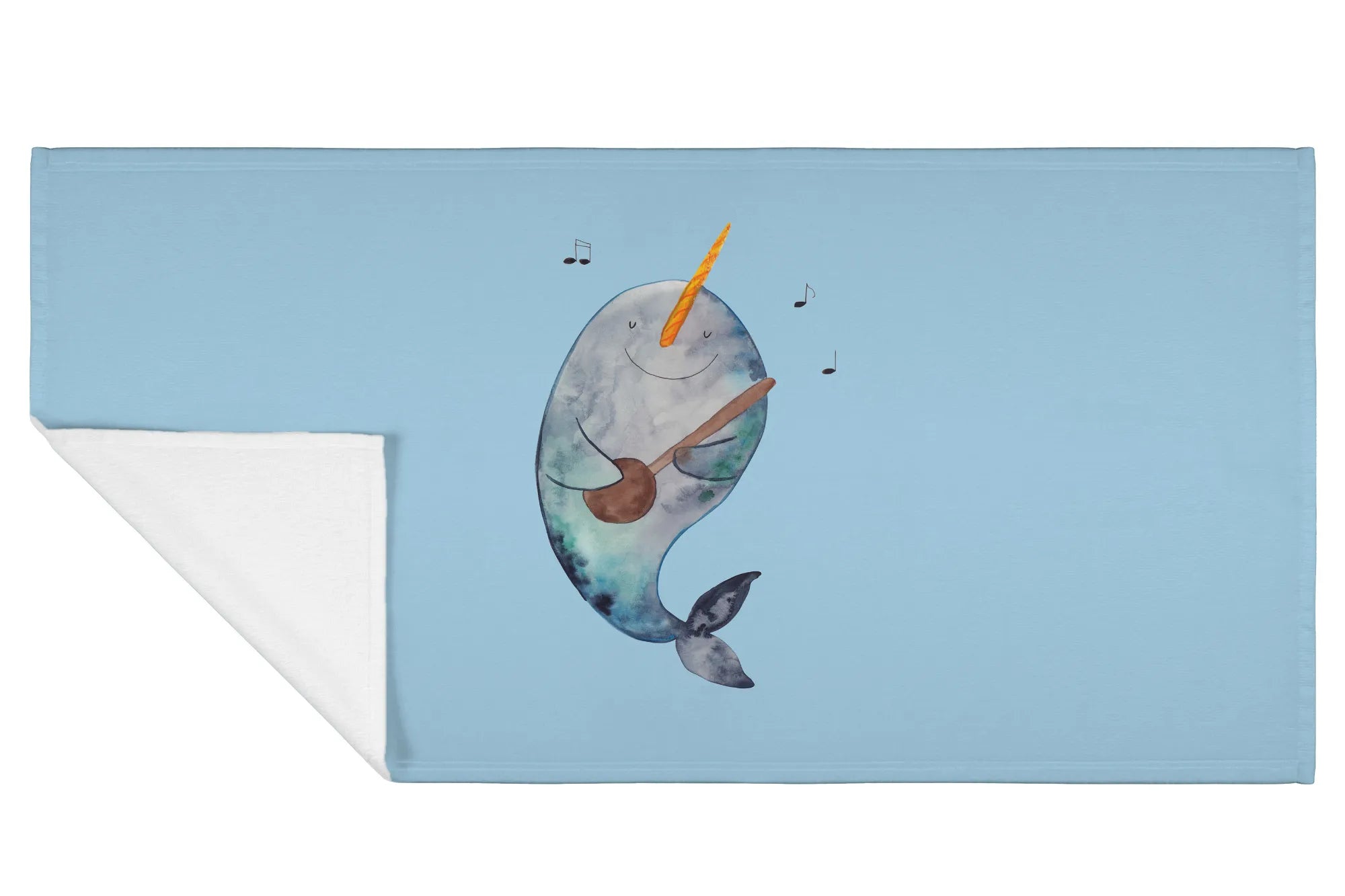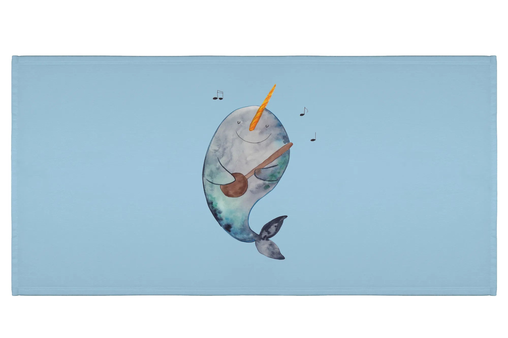 Das 50 x 100 Handtuch von Mr. & Mrs. Panda mit dem fröhlichen Narwal-Motiv und Gitarre ist der perfekte Begleiter für dein Badezimmer!