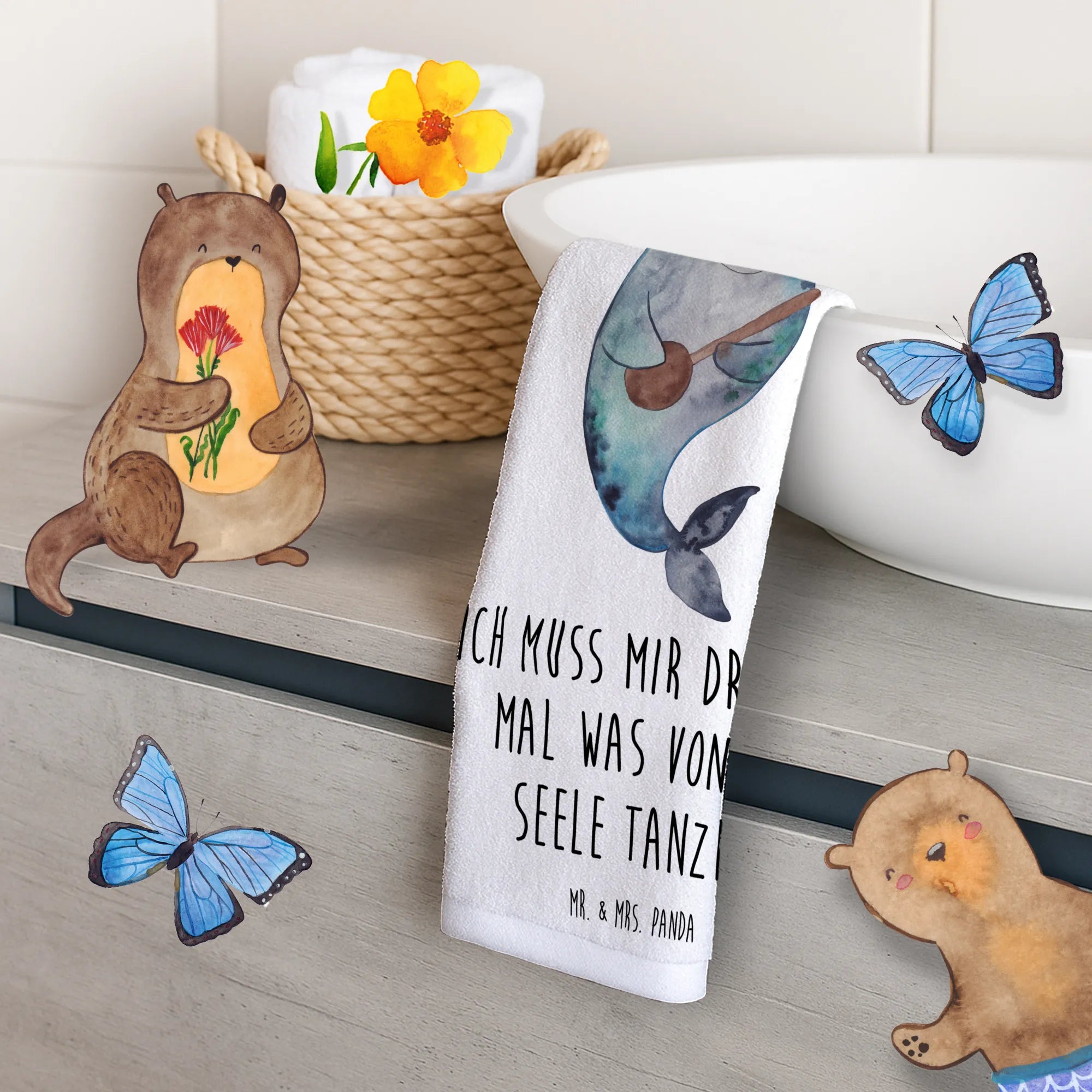 Mit dem einladenden Slogan 'Ich muss mir dringend mal was von der Seele tanzen' eignet sich dieses Handtuch ideal, um sich nach einem erholsamen Bad oder einer Dusche einzuwickeln. Es gibt nichts Besseres, als sich mit der fröhlichen Botschaft eines Narwals, der die Musik des Lebens spielt, umgeben zu wissen.