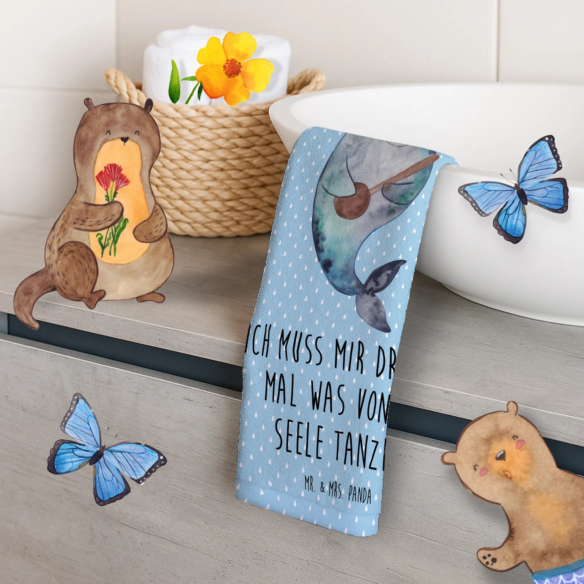 Das Gästehandtuch mit dem einzigartigen Motiv des Narwals, der Gitarre spielt, ist das perfekte Geschenk für alle, die das Meer und die Musik lieben!🏖️ Dieses wundervolle Handtuch von Mr. & Mrs. Panda ist nicht nur praktisch, sondern bringt auch Freude und Farbe in jedes Badezimmer. Der fröhliche Narwal lächelt dir entgegen und macht klar: "Ich muss mir dringend mal was von der Seele tanzen!" Ein schöner Spruch, der an die Leichtigkeit des Seins erinnert und zum Träumen einlädt.