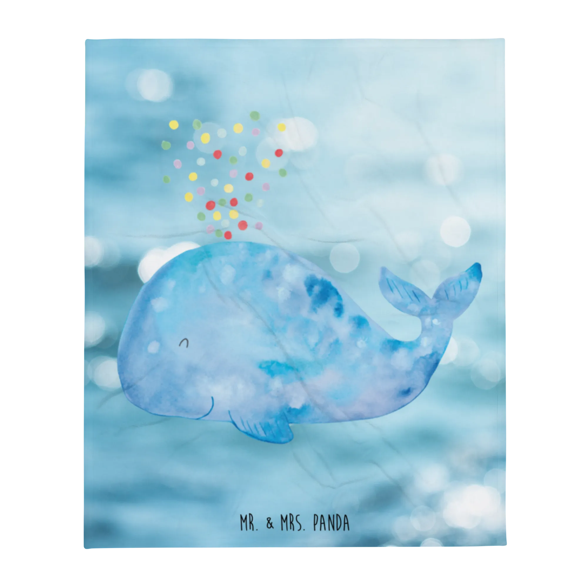 Der freundlich lächelnde Wal, umgeben von schillerndem Konfetti, zaubert jedem ein Lächeln ins Gesicht. Ob für entspannte Abende auf dem Sofa oder für die gemütlichen Stunden im Bett, mit dieser Decke bringst du Farbe und Freude in jeden Raum.