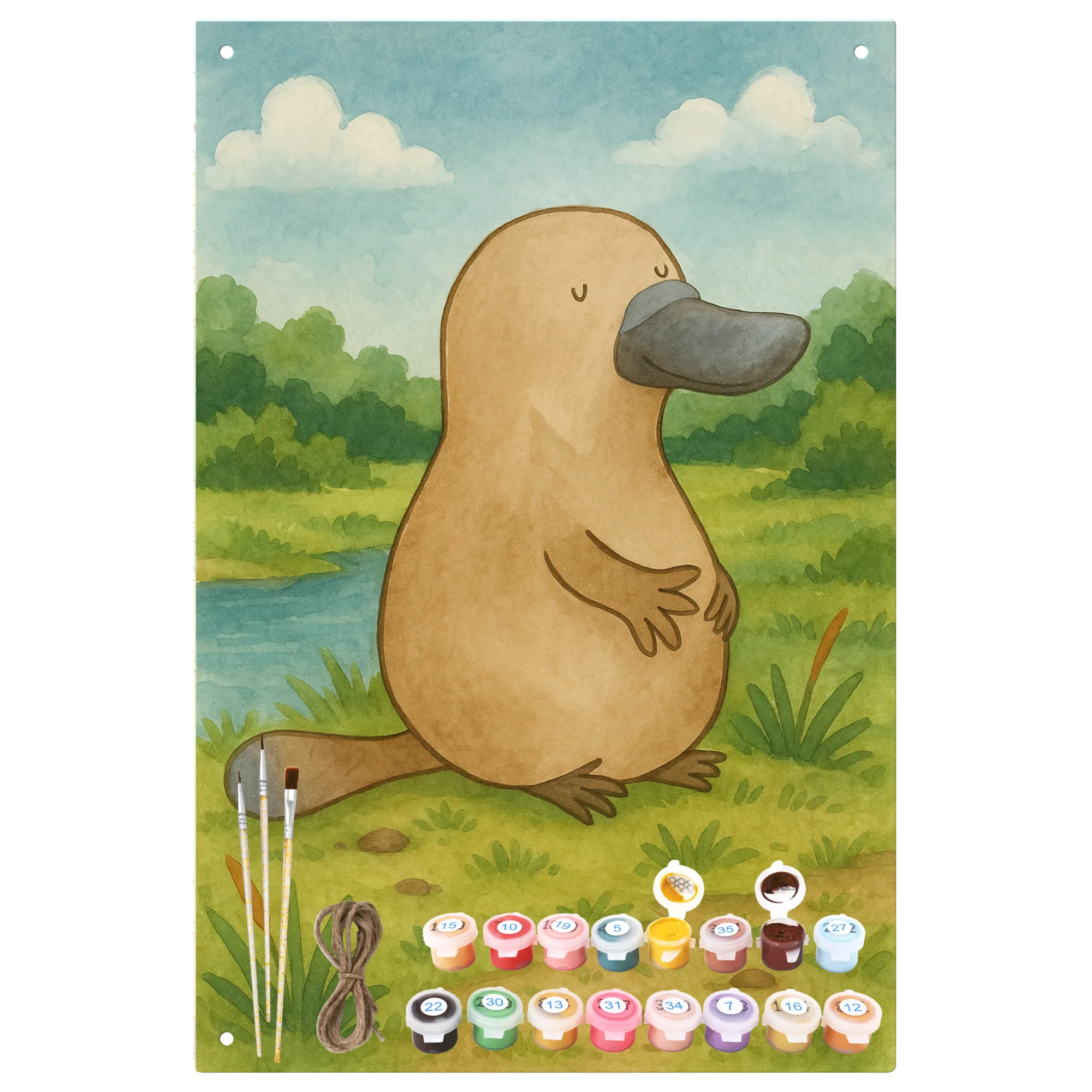 Malen nach Zahlen Metallschild Schnabeltier Mut Design
