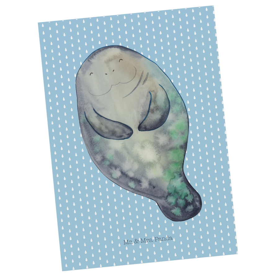 Postkarte Seekuh Happy - ohne Spruch - Blau Pastell