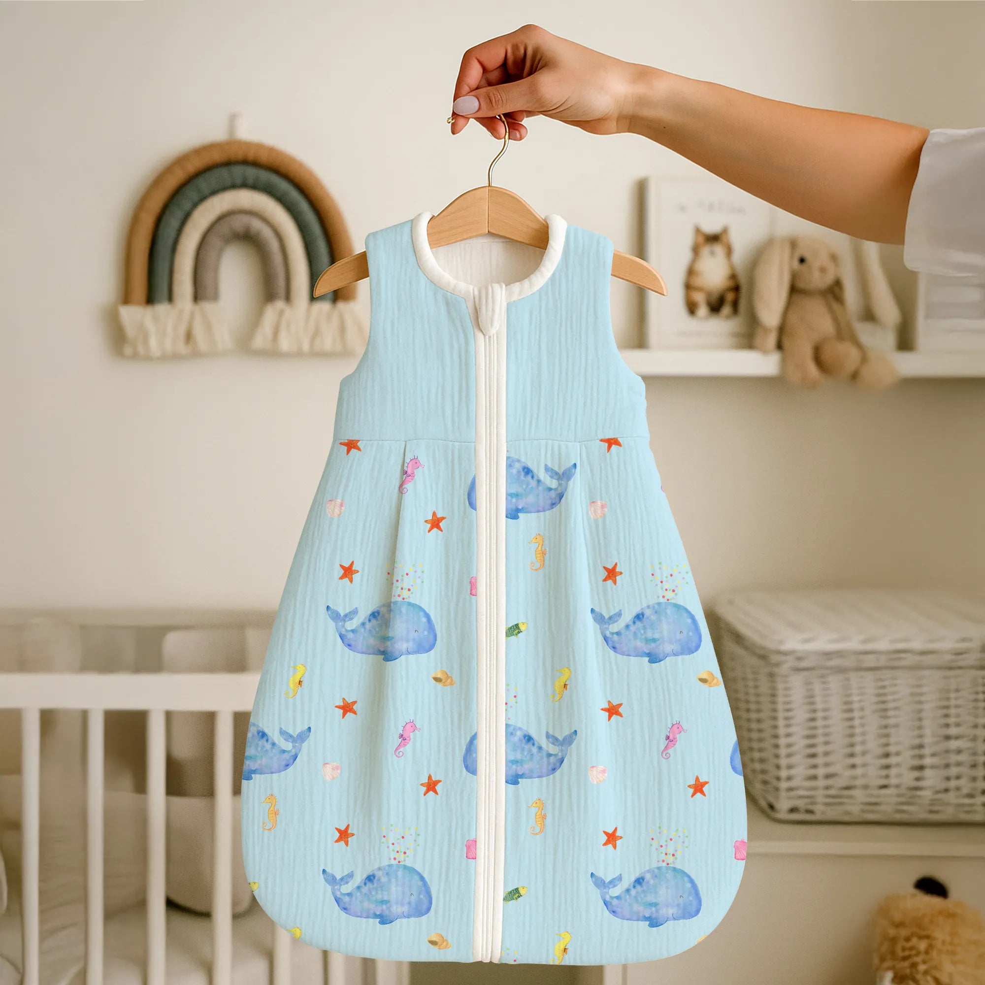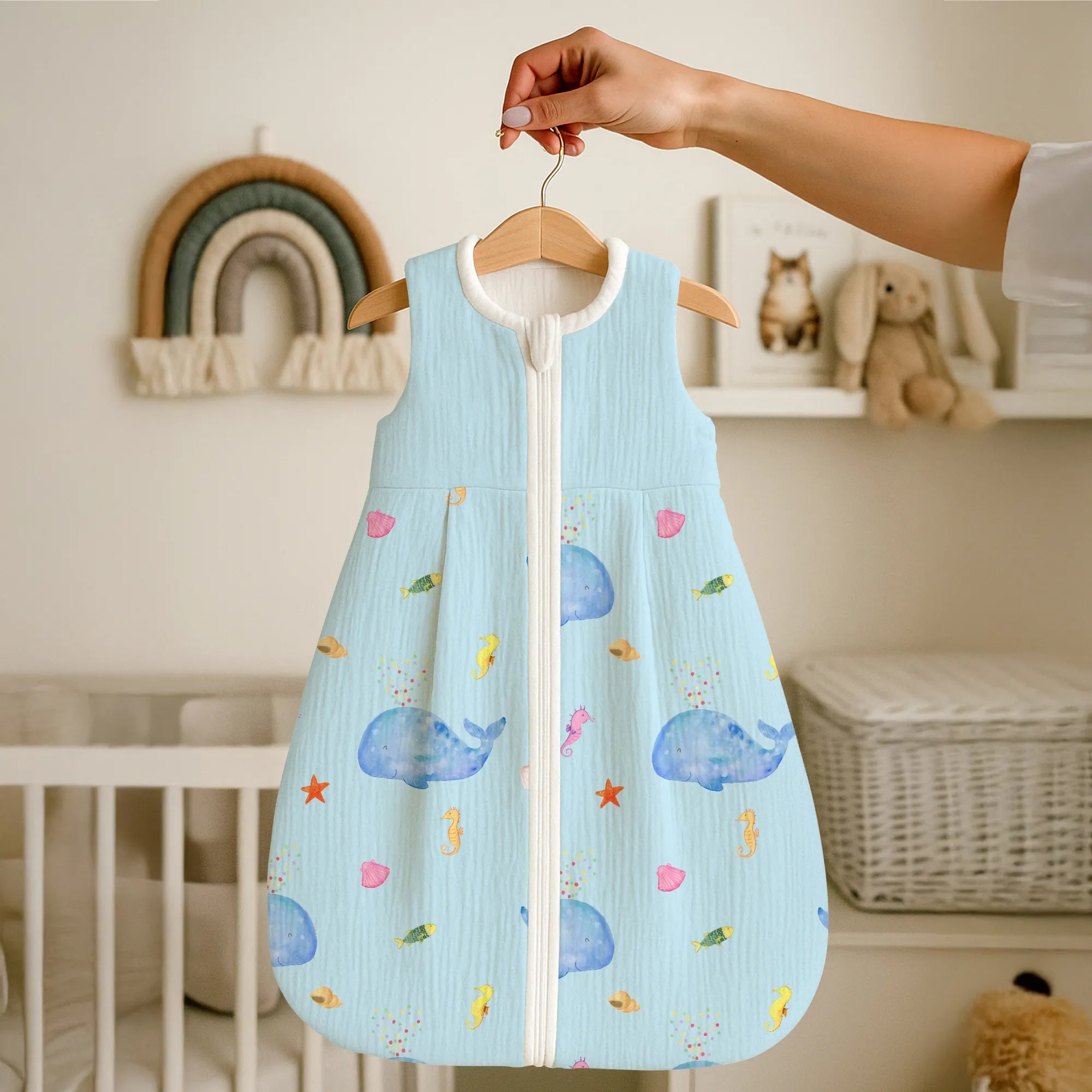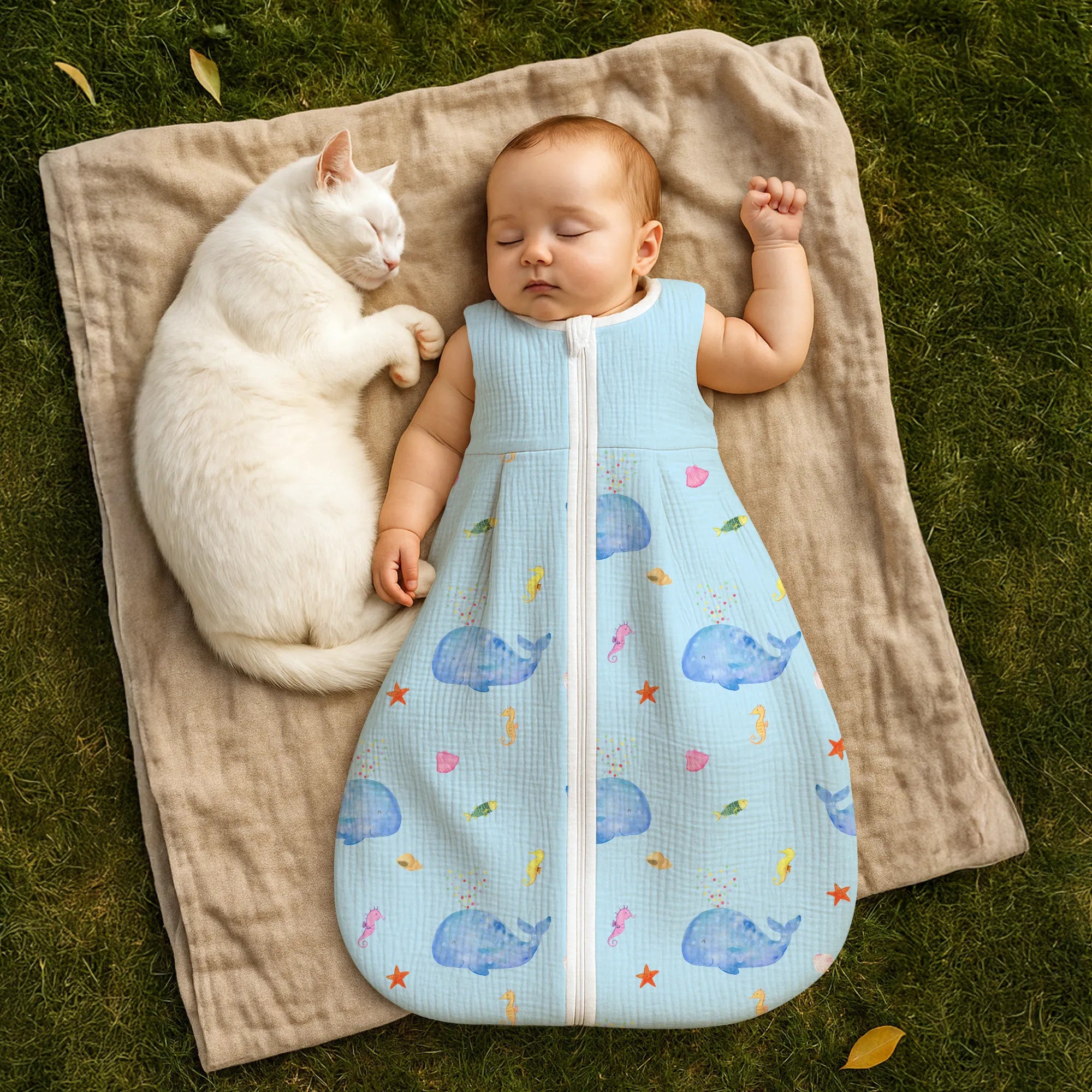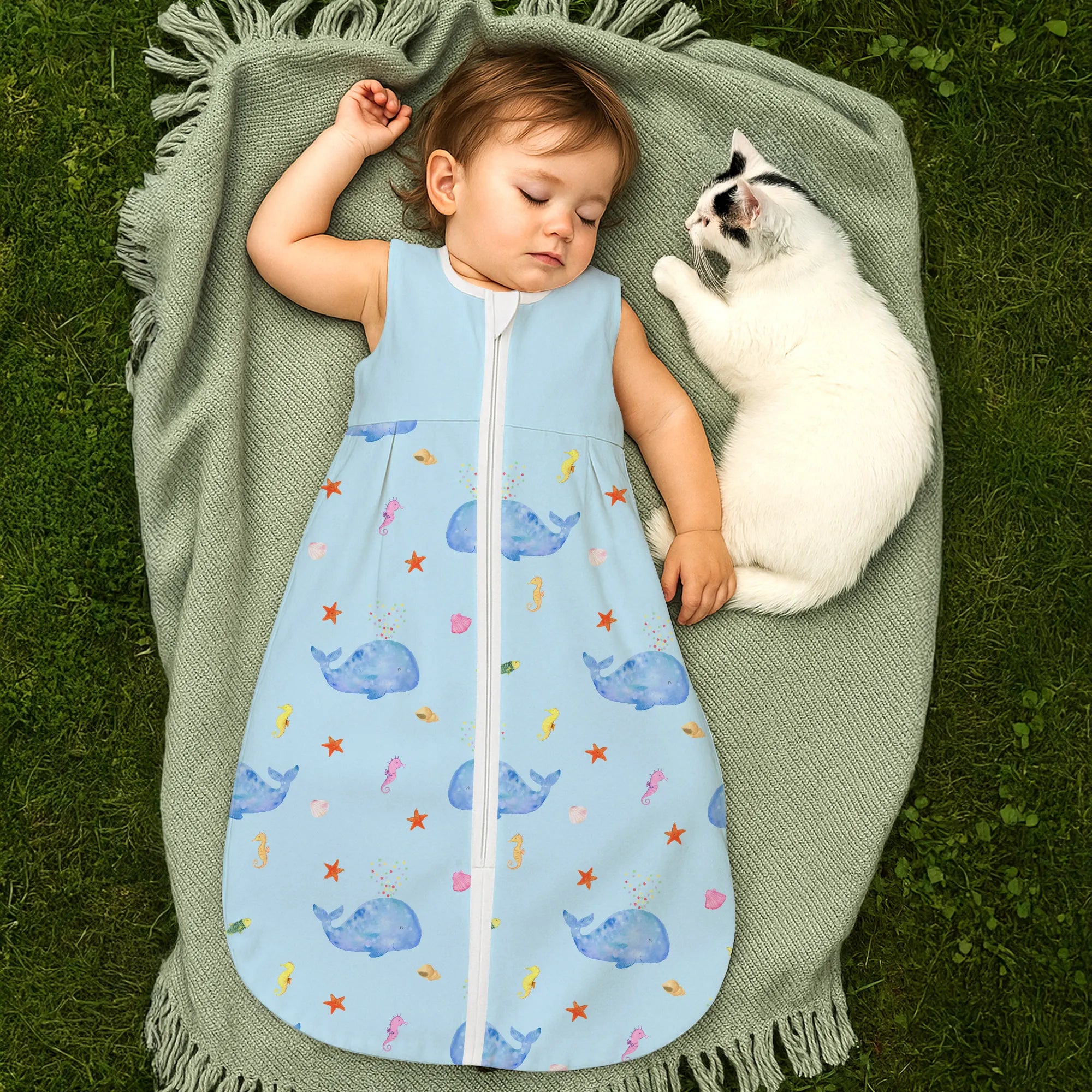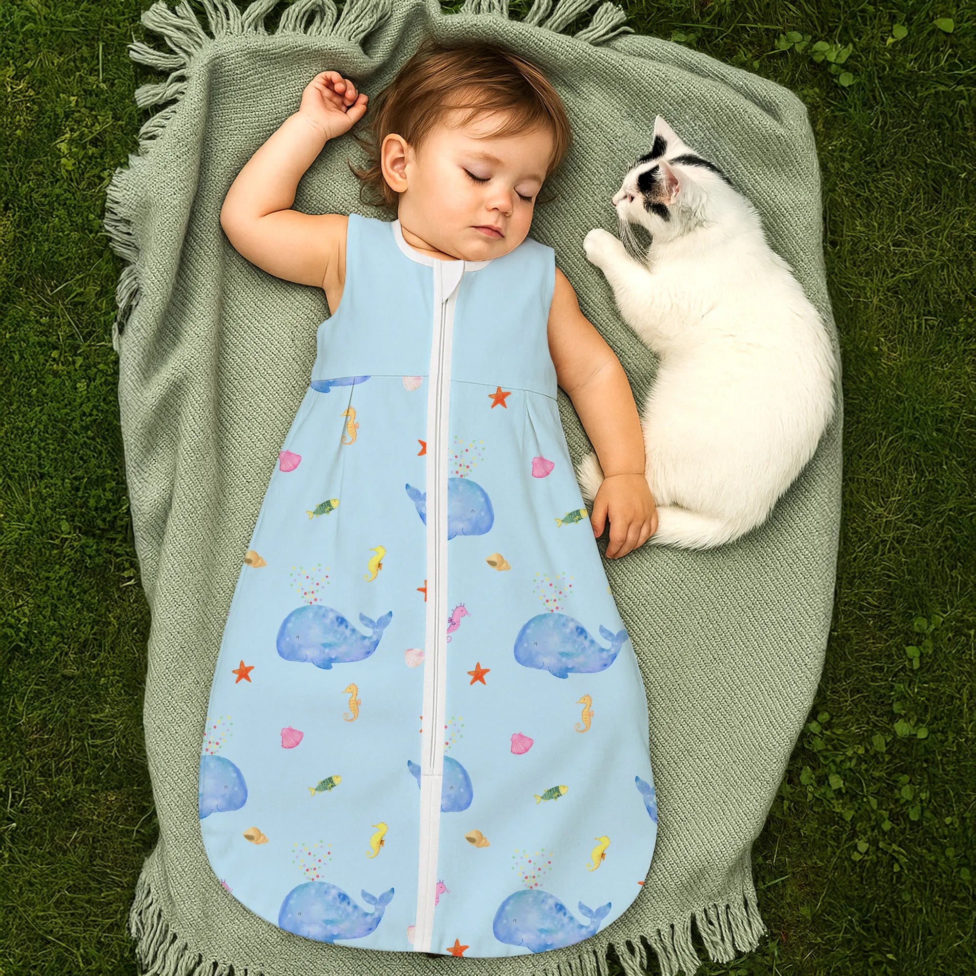 Der Schlafsack eignet sich hervorragend als Geschenk zur Geburt, Geschenk zur Taufe, Geschenk zum Geburtstag oder als besonderes Präsent für einen Neuanfang. Ob als Überraschung für frischgebackene Eltern oder als Teil einer thematischen Geschenkbox mit Meerestiere-Deko – dieses Stück zaubert ein Lächeln.