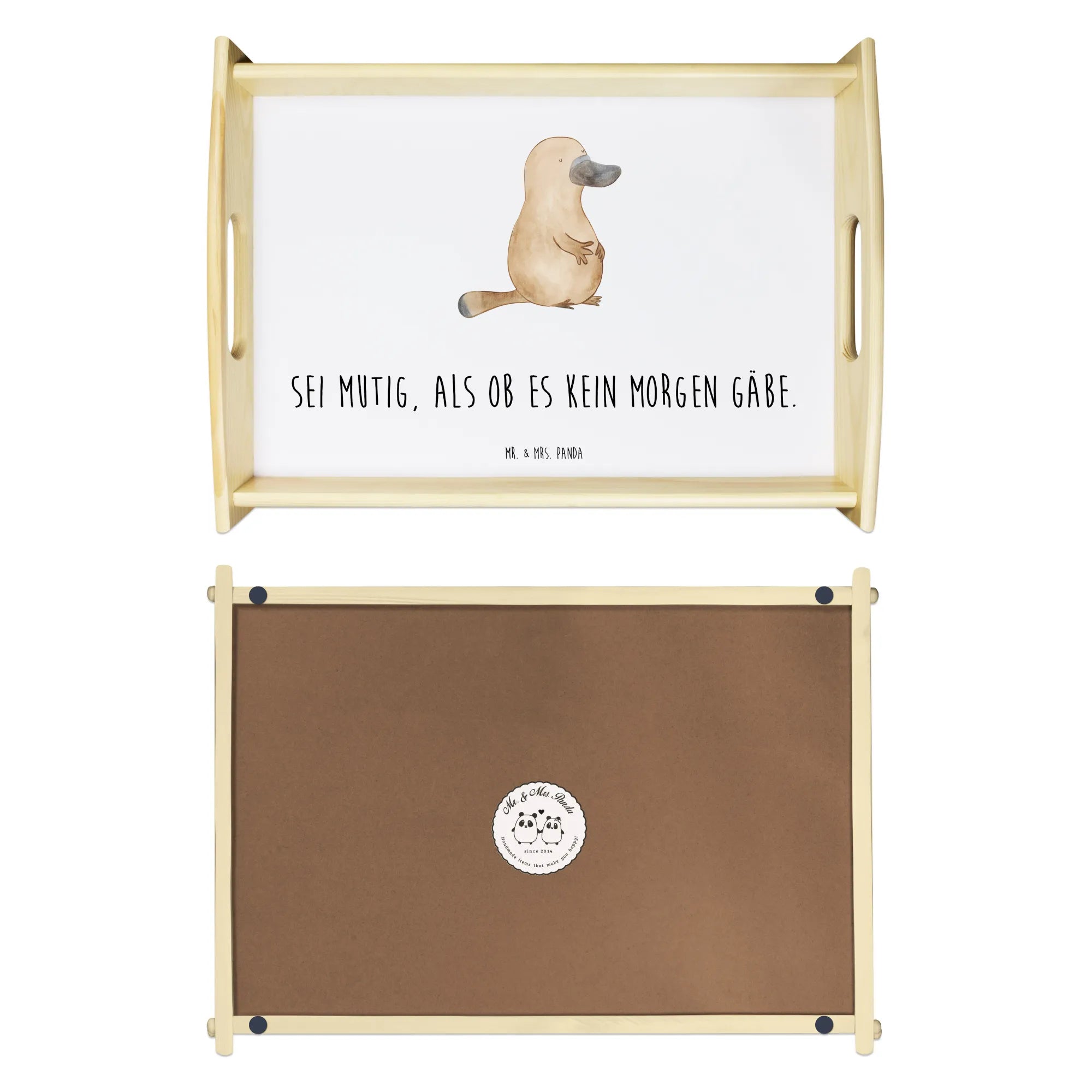 tablett für bett Schnabeltier Mut - mit Spruch - Weiß