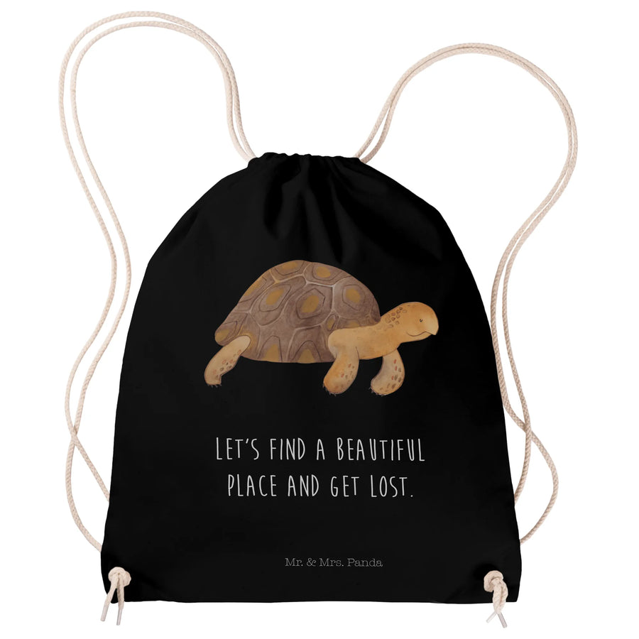 Sportbeutel Schildkröte marschiert - mit Spruch - Schwarz