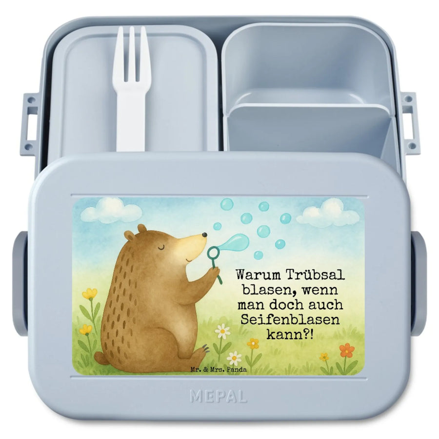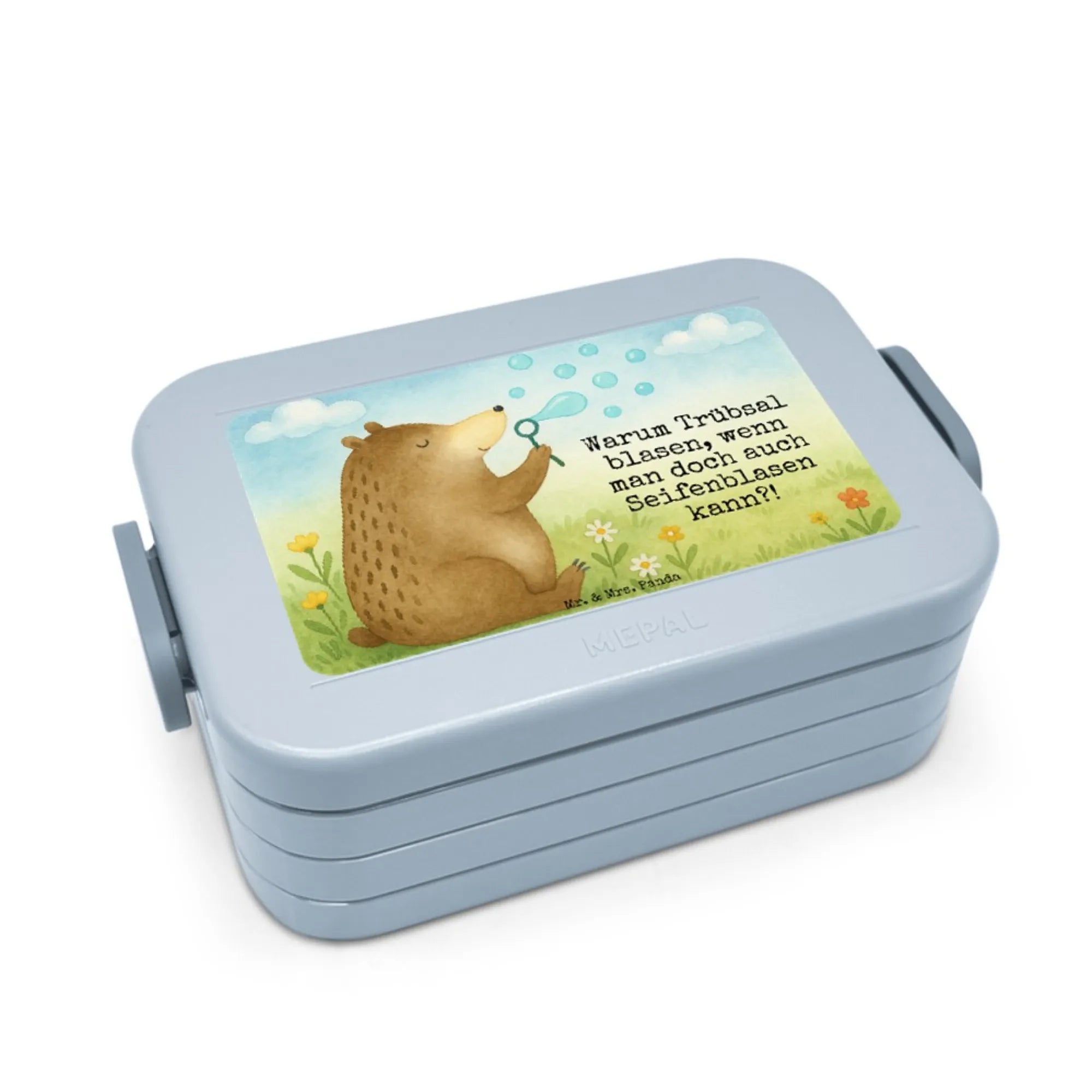 MEPAL Bentobox Bär Seifenblasen Design - mit Spruch - Blau Pastell