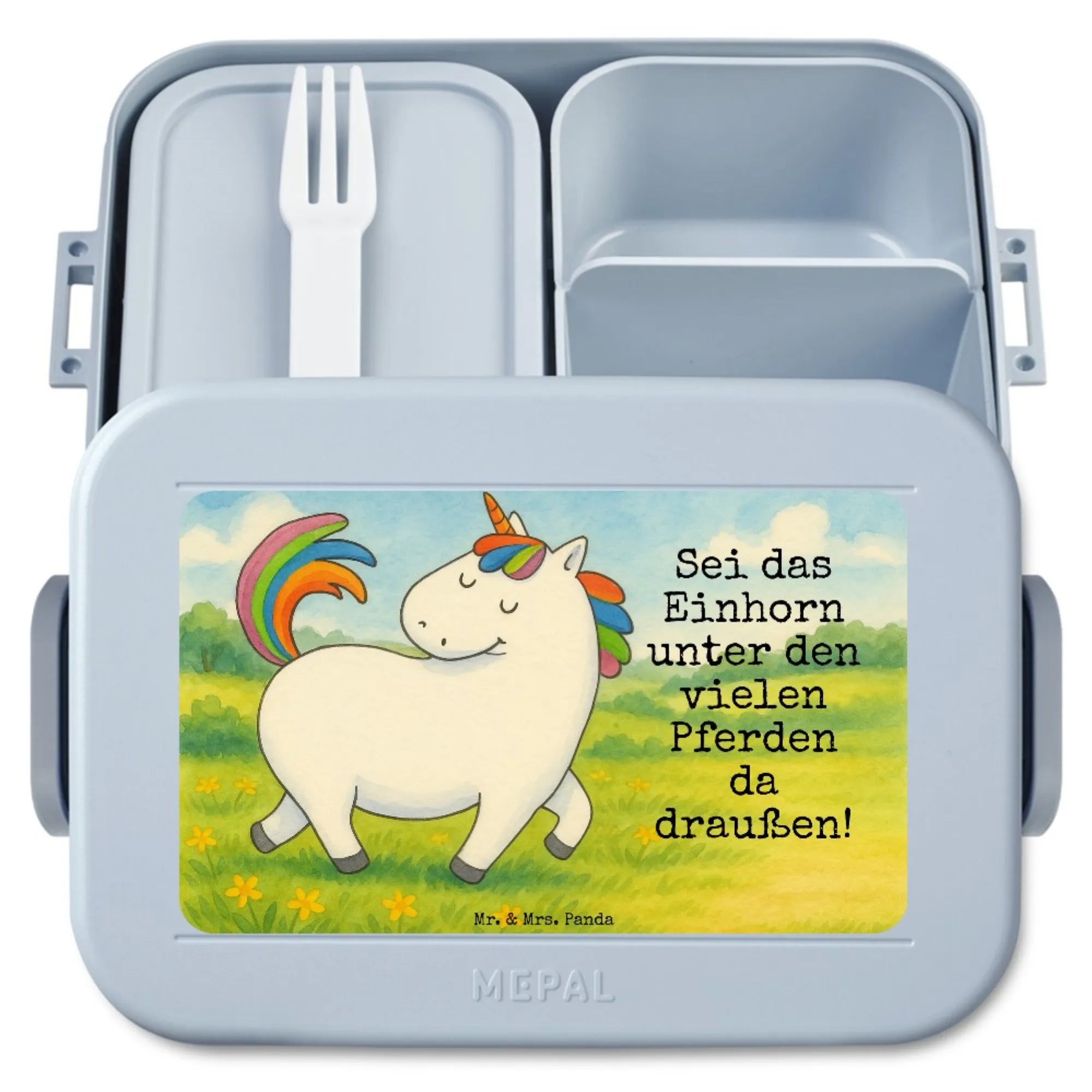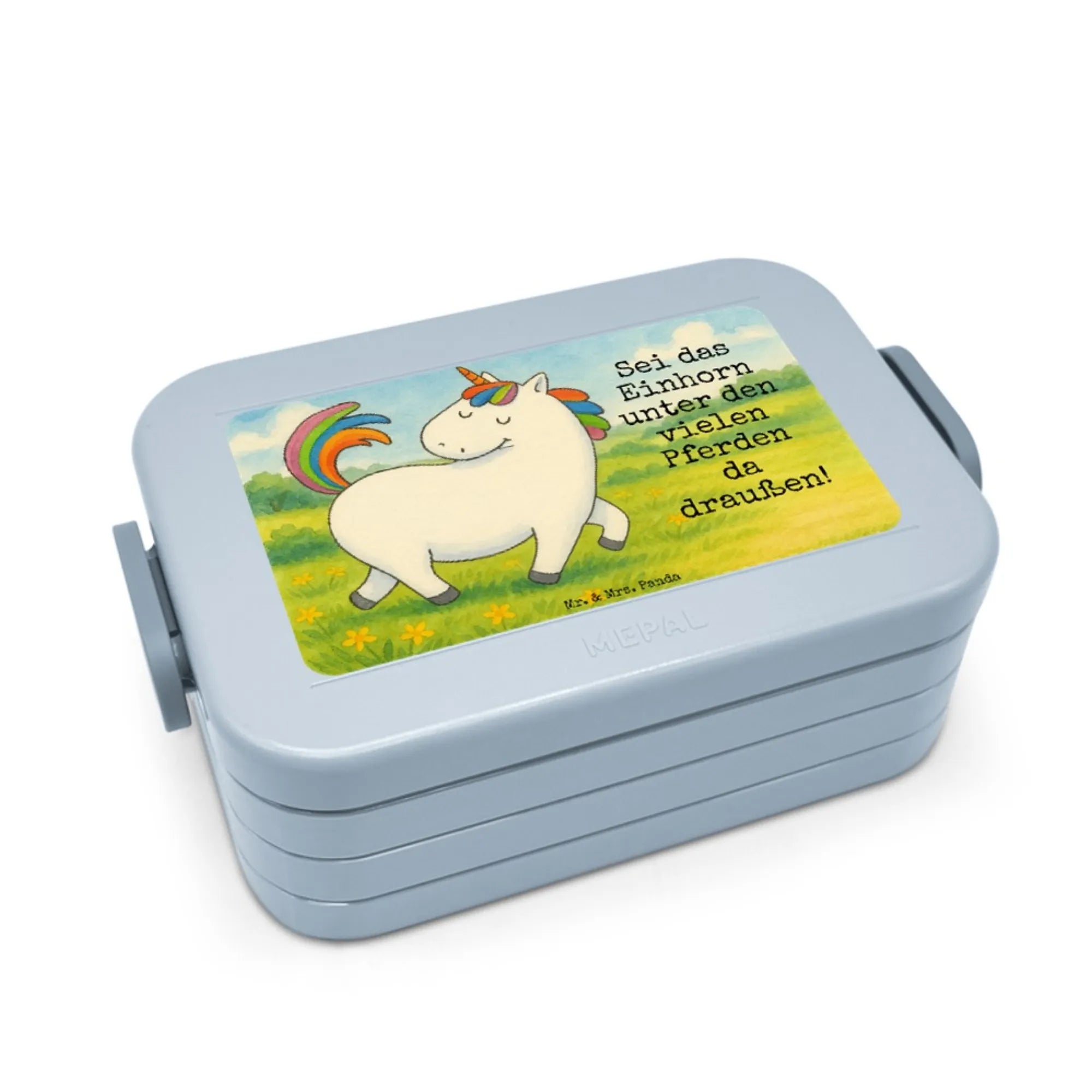 MEPAL Bentobox Einhorn Stolzieren Design - mit Spruch - Blau Pastell