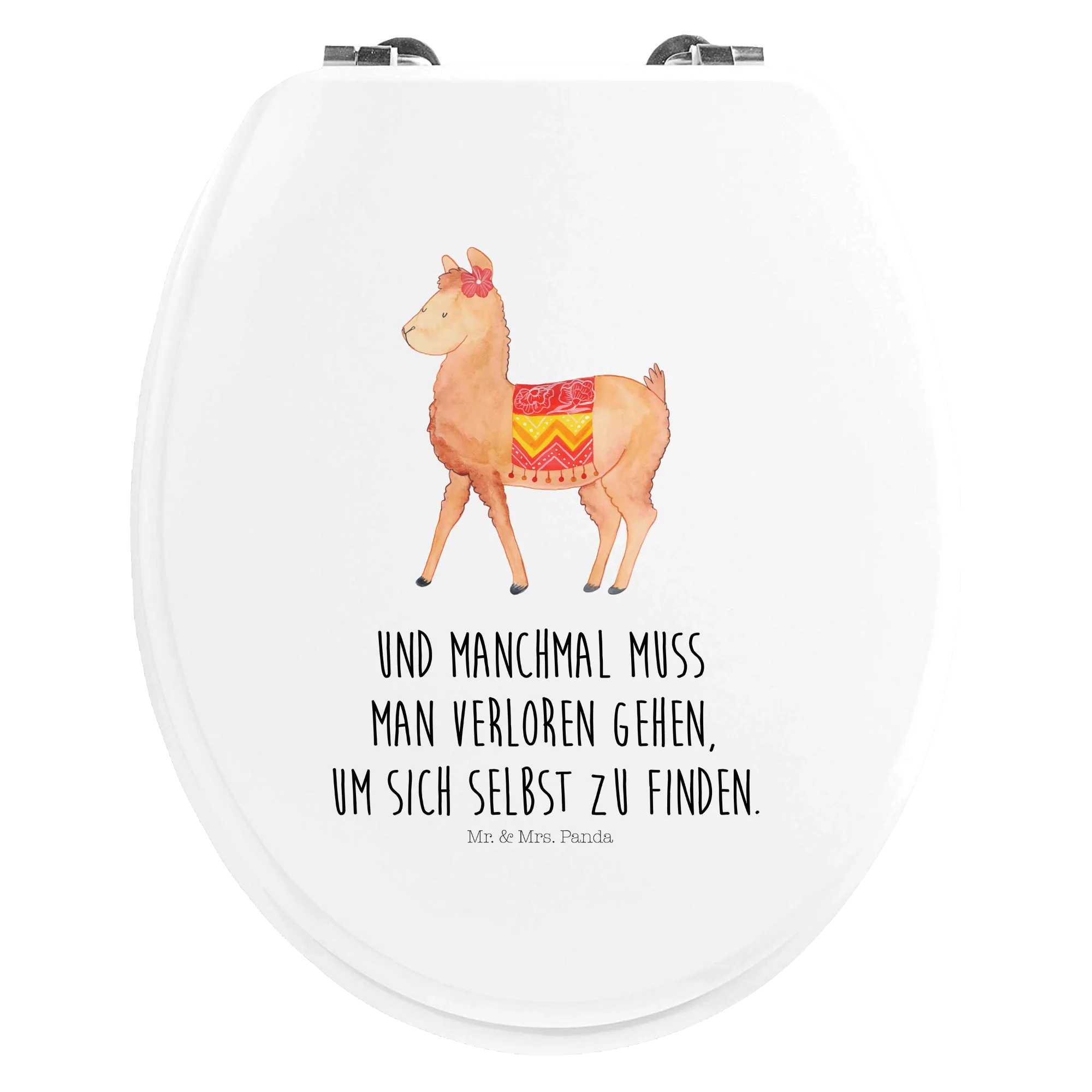 Dieser wunderschöne und praktische WC Sitz ist nicht nur ein Hingucker, sondern bietet auch hervorragenden Sitzkomfort. Egal ob du ihn für Gäste oder für dich selbst wählst, mit seinem entzückenden Motto bringst du frischen Wind in dein Badezimmer. Das niedliche Alpaka hat sich herausgeputzt und zeigt stolz seine süße Schleife, ganz nach dem Motto: 'Und manchmal muss man verloren gehen, um sich selbst zu finden.'