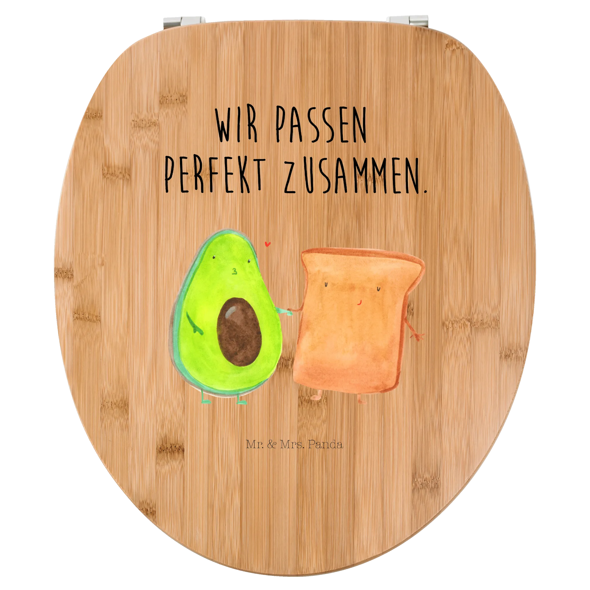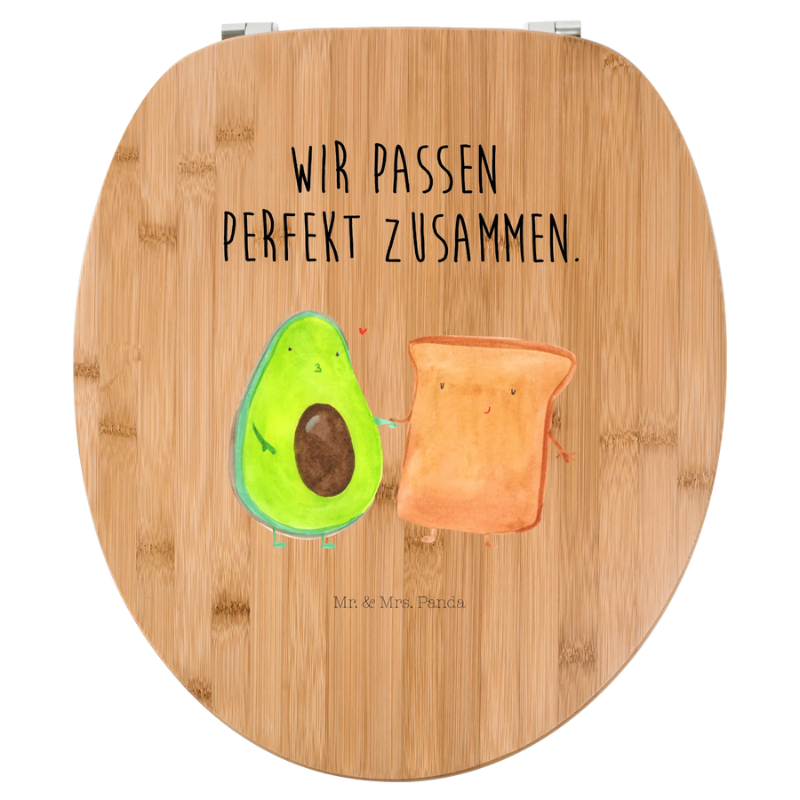 Der Motiv WC Sitz Avocado + Toast von Mr. & Mrs. Panda ist das perfekte Geschenk für all diejenigen, die Fun & Freude im Badezimmer lieben! Mit seinem süßen Motiv zeigt dieser Toilettendeckel ein liebenswertes Pärchen – eine frische Avocado und ein knuspriger Toast, die sich verliebt an den Händen halten. Diese Kombination bringt nicht nur einen Hauch von Lebensfreude in dein Badezimmer, sondern bietet auch einen hohen Sitzkomfort.