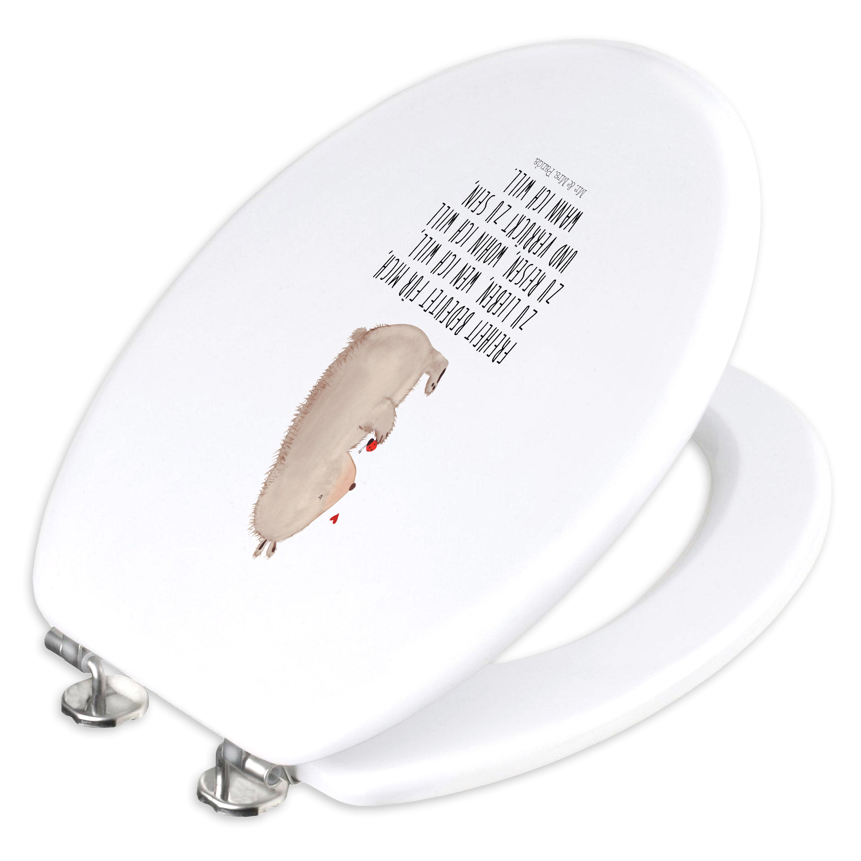 Mit dem Motiv WC Sitz von Mr. & Mrs. Panda verleihst du deinem Badezimmer Flair und Persönlichkeit. Diese WC Sitze, erhältlich in Bambus oder MDF, sind nicht nur ein praktisches Badaccessoire, sondern auch ein dekoratives Statement. Mit Maßen von 430 mm x 370 mm x 50 mm passen sie auf alle gängigen Toiletten. Unsere Designs mit humorvollen Pandamotiven und Sprüchen lassen den Raum weiterleben. Ein leises Schließen und die simple Montage, für die das notwendige Material bereitsteht, machen diesen WC Sitz zu einer Bereicherung für jedes Badezimmer. Ein besonderes Detail ist die versiegelte Oberfläche, die eine einfache Reinigung gewährleistet.