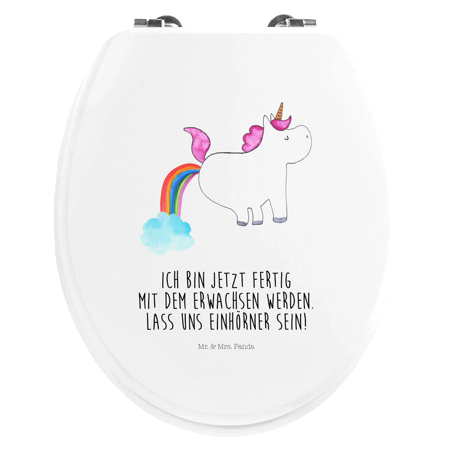 Worauf wartest du noch? Verleihe deinem Badezimmer einen fröhlichen Touch mit dem Motiv WC Sitz Einhorn Pupsend von Mr. & Mrs. Panda! Jedes Mal, wenn du die Toilette benutzt, wirst du an das Kindliche und Verspielte erinnert – und das ist einfach unbezahlbar!