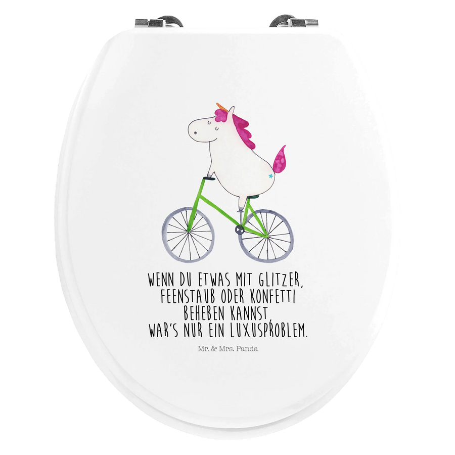 Motiv WC Sitz Einhorn Radfahrer - mit Spruch - Hartfaser Holzkern Weiß - Weiß