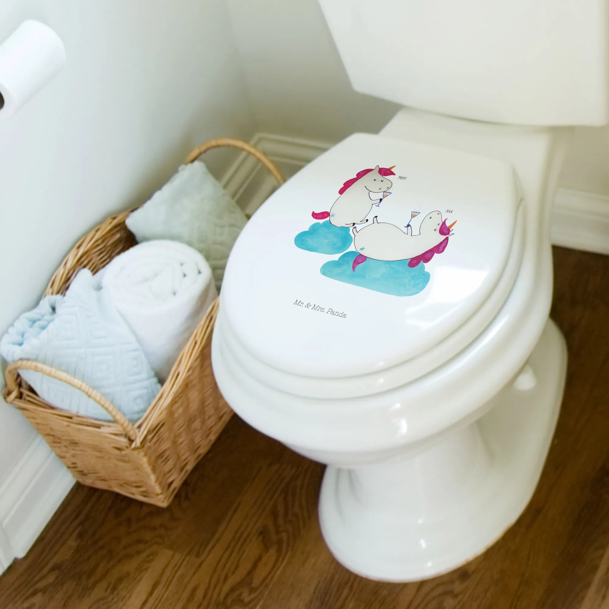 Motiv WC Sitz Einhörner Sekt - mit Spruch - Bambus - Transparent