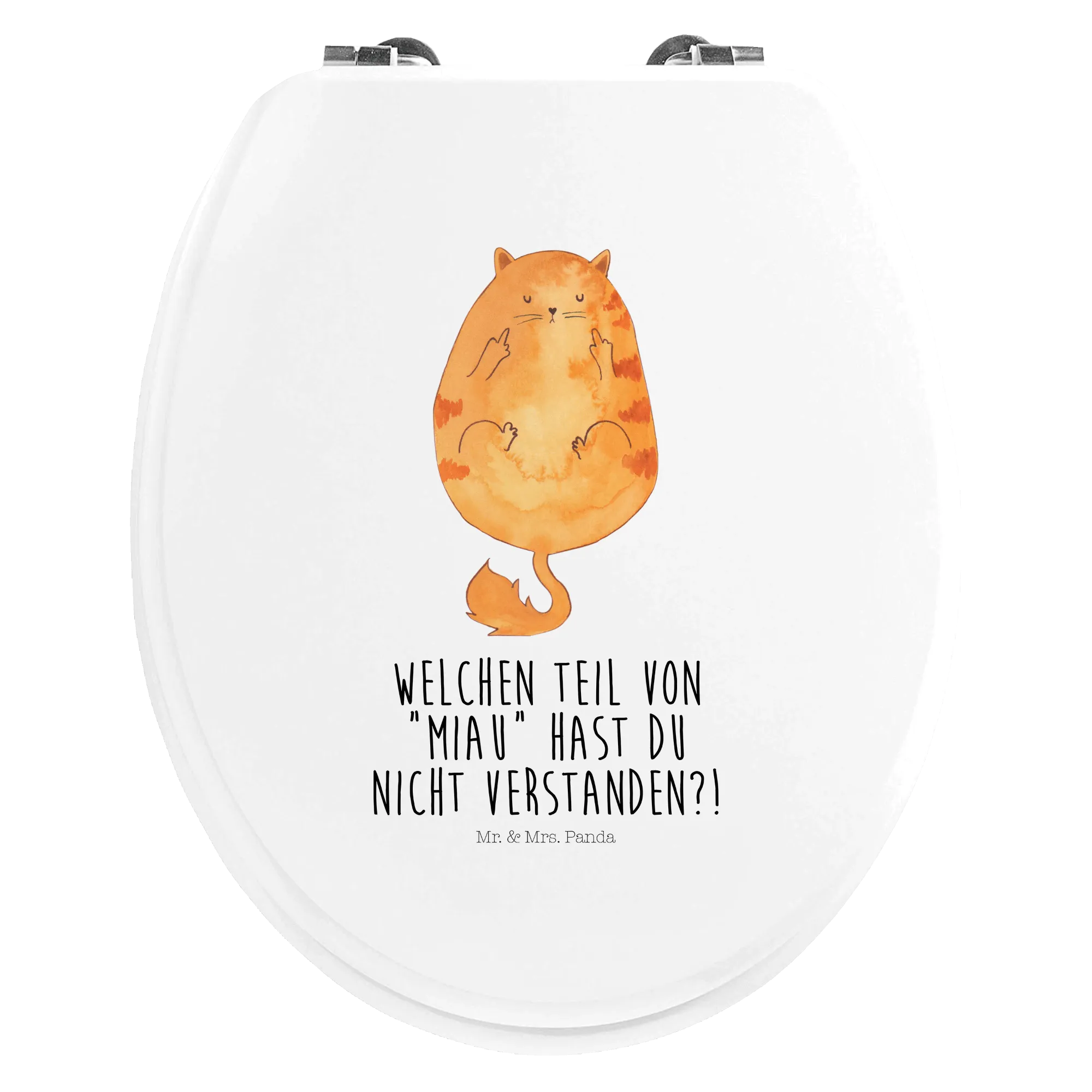 Der Motiv WC Sitz Katze Mittelfinger aus der exklusiven Katzen-Kollektion von Mr. & Mrs. Panda ist mehr als nur ein praktisches Badezimmeraccessoire – er ist ein Statement! Für alle Katzenliebhaber, die ihrem WC einen Hauch von Persönlichkeit verleihen möchten, ist dieser Toilettendeckel das perfekte Geschenk. Mit deinem neuen WC-Sitz holst du dir eine handgezeichnete Katze ins Badezimmer, die mit frechem Mittelfinger eindeutig eines sagt: 'Welchen Teil von "Miau" hast du nicht verstanden?!'.