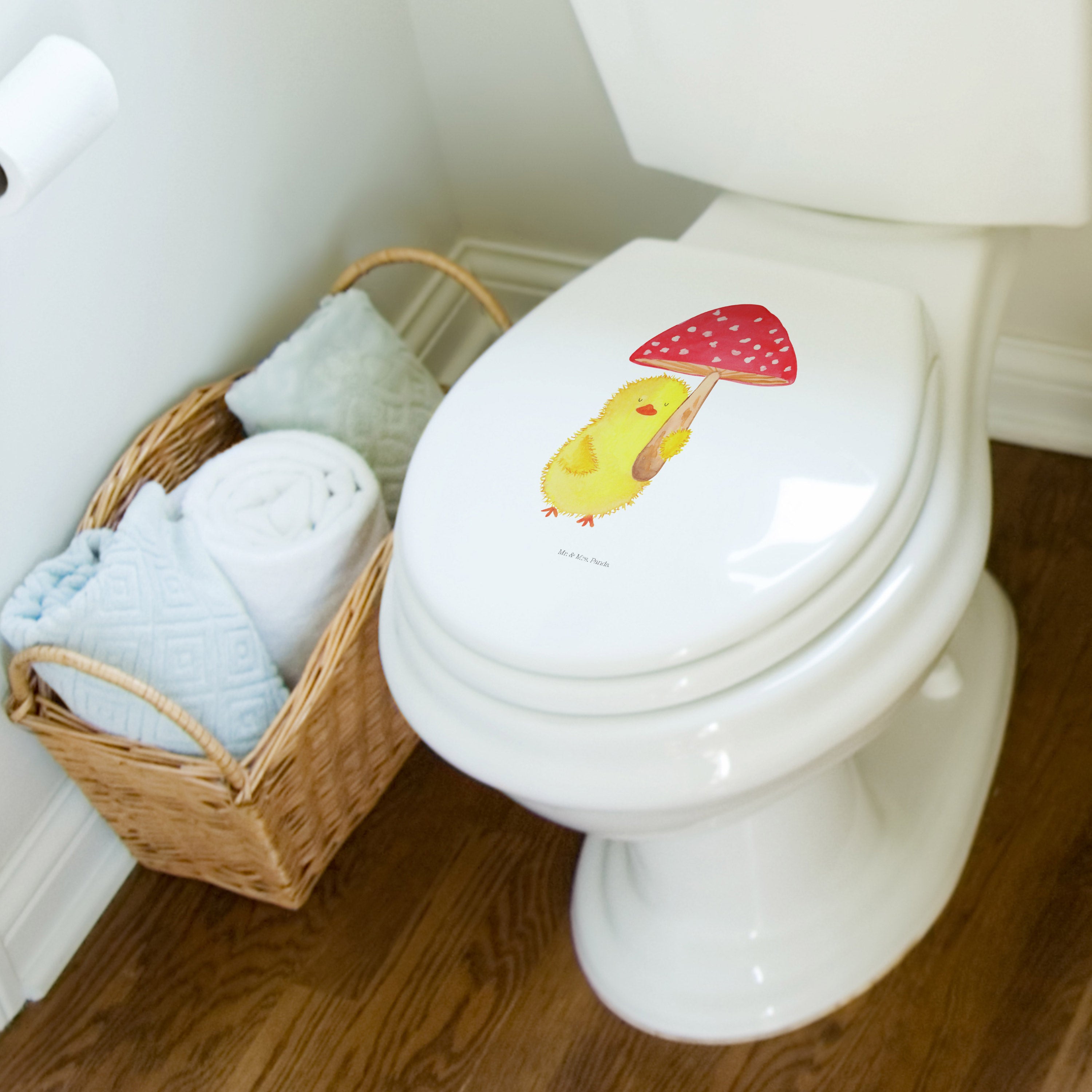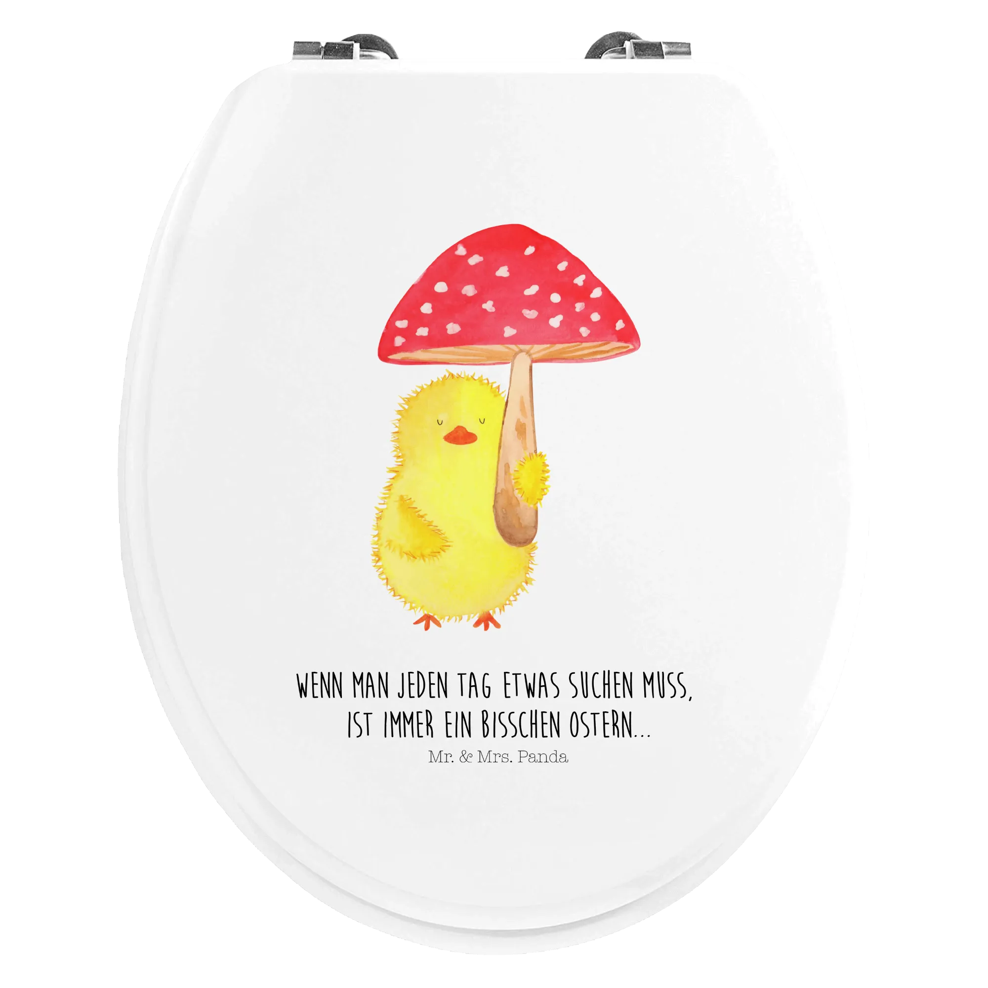 Der Motiv WC Sitz Küken Fliegenpilz aus der Ostern-Kollektion von Mr. & Mrs. Panda ist das perfekte Geschenk für alle, die die Osterzeit lieben und ihr Badezimmer auf eine fröhliche Art und Weise verschönern möchten. Mit seinem niedlichen Design, das ein kleines Küken zeigt, das einen roten Fliegenpilz hält, zaubert dieser Toilettensitz jedem ein Lächeln ins Gesicht. Die Osterzeit ist eine Zeit des Schenkens und der Freude, und was könnte schöner sein, als einem lieben Menschen ein Stück Ostern nach Hause zu bringen?