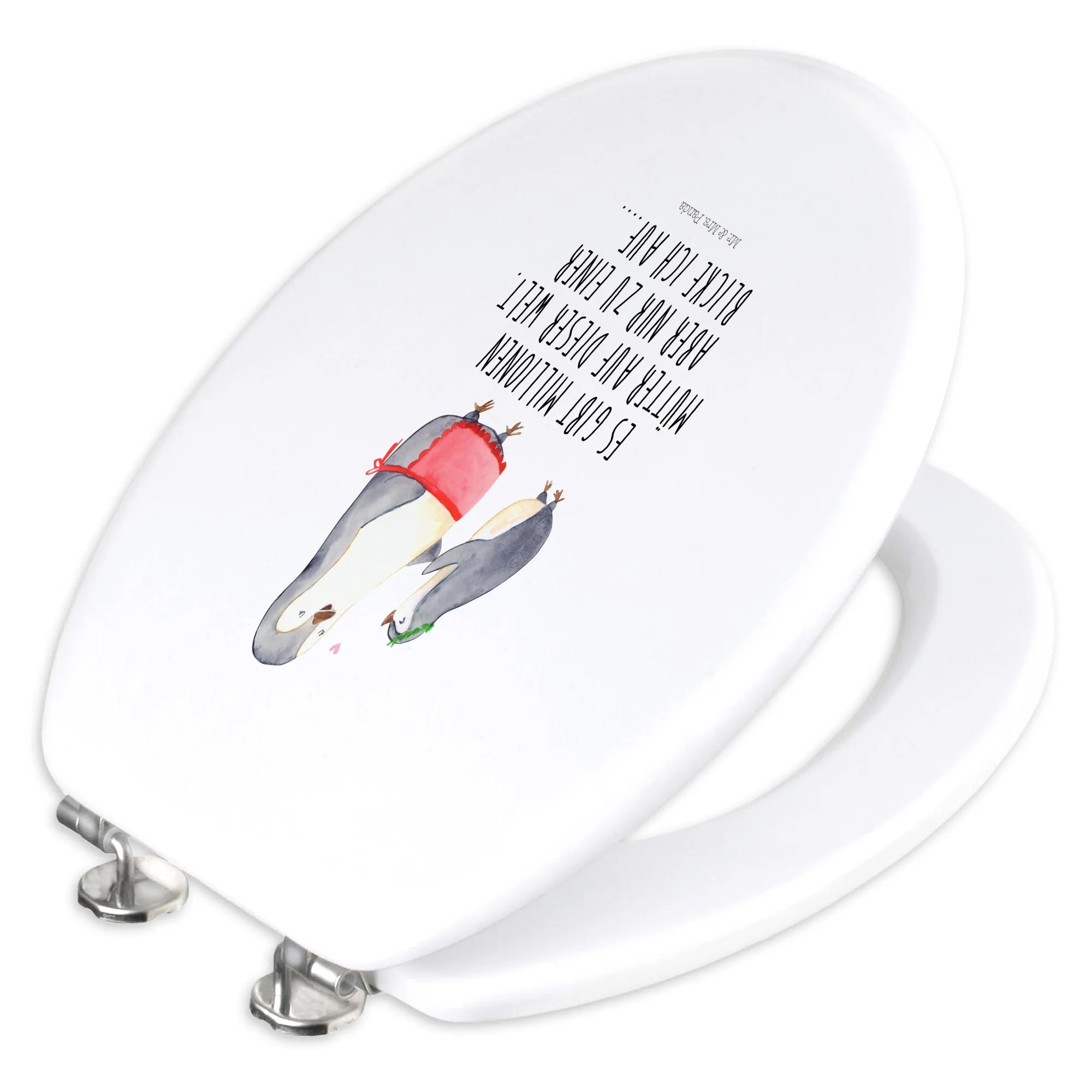 Entdecke die Welt von Mr. & Mrs. Panda mit unserem bezaubernden Motiv WC Sitz, der nicht nur durch sein einzigartiges Design verzaubert, sondern auch mit Funktionalität glänzt. Hergestellt aus hochwertigem Bambus Holz in einem natürlichen Braunton oder aus robustem MDF Holz in strahlendem Weiß, bietet dieser Toilettensitz nicht nur eine hohe Langlebigkeit, sondern auch einen außergewöhnlichen Sitzkomfort. Die Maße von 430 mm x 370 mm x 50 mm garantieren eine universelle Passform auf allen Euro-WC-Becken. Der liebevoll angebrachte UV Druck mit Sprüchen und niedlichen Motiven von Mr. & Mrs. Panda bringt Leben und Freude in jedes Badezimmer. Es handelt sich um einen WC-Sitz, der ohne Absenkautomatik auskommt, dennoch leise schließt und leicht zu montieren ist. Das Befestigungsmaterial ist selbstverständlich enthalten. Verwandle deine Toilette mit diesem charmanten Klodeckel in eine Oase der Lebensfreude.