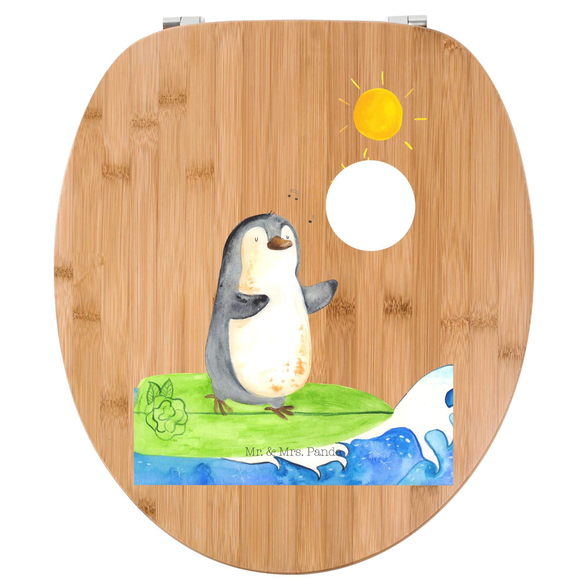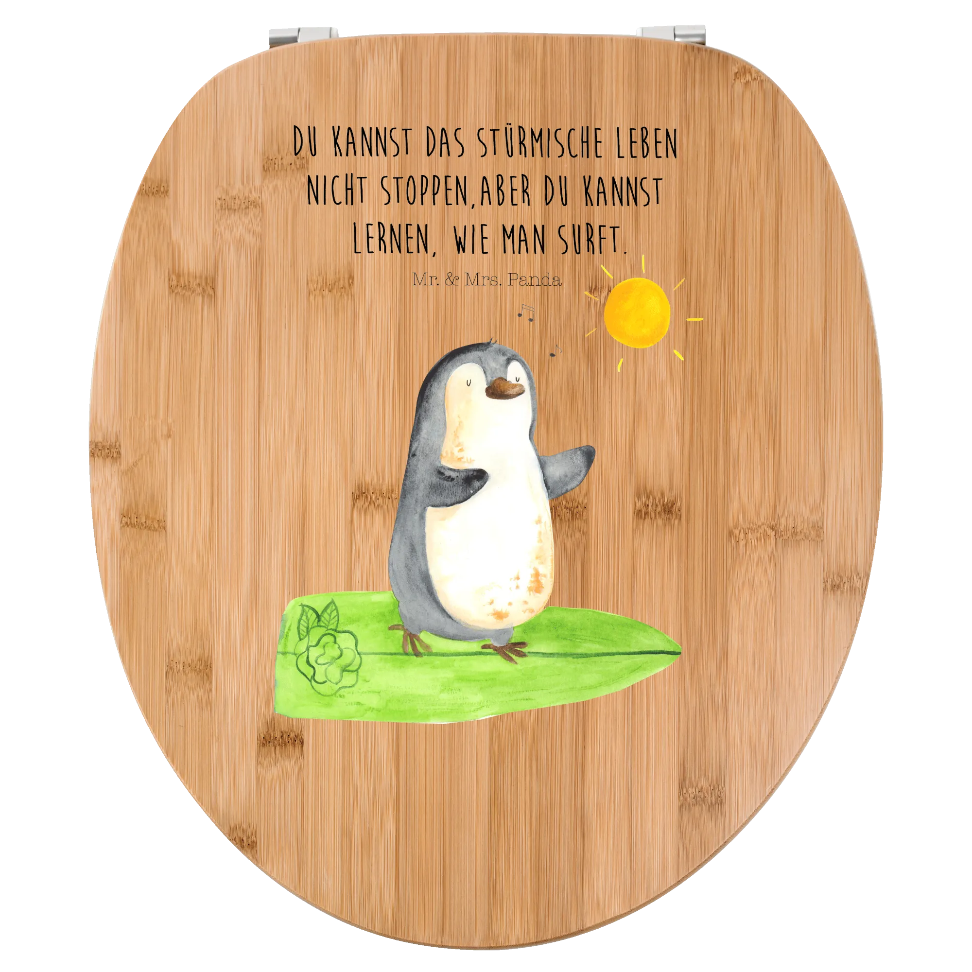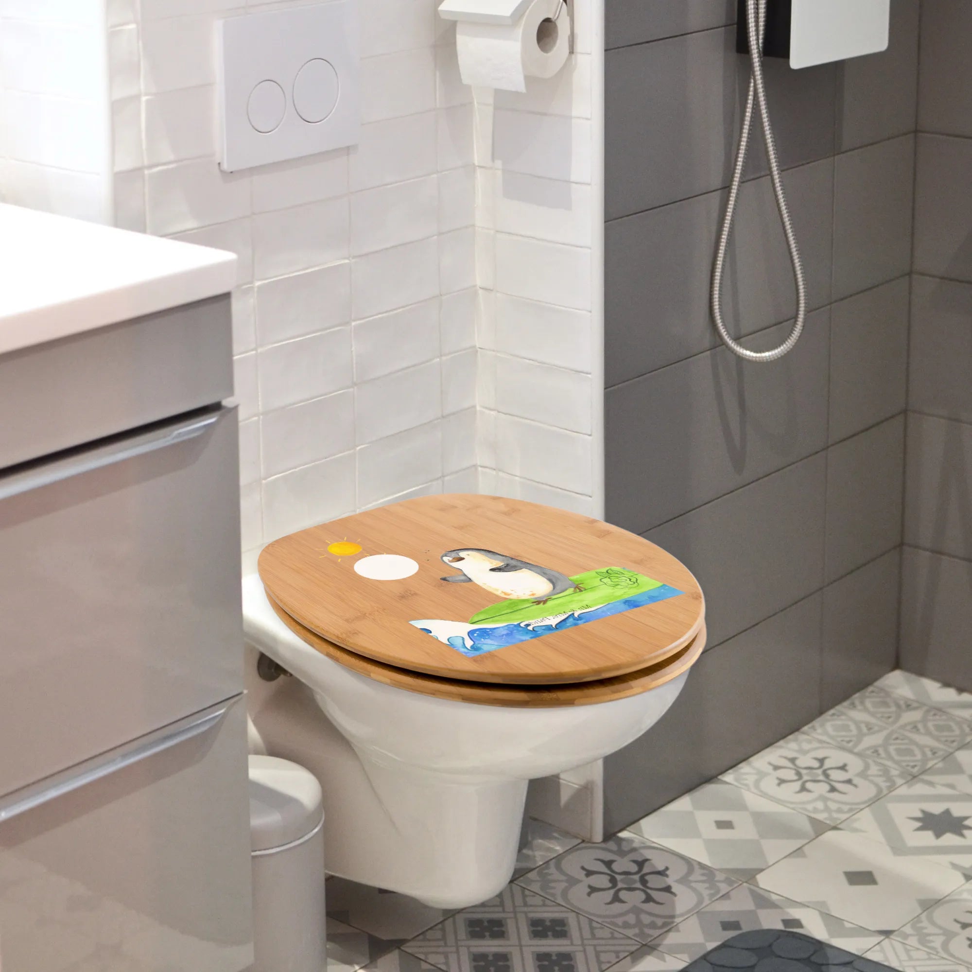 Motiv WC Sitz Pinguin Surfer - mit Spruch - Bambus - Transparent