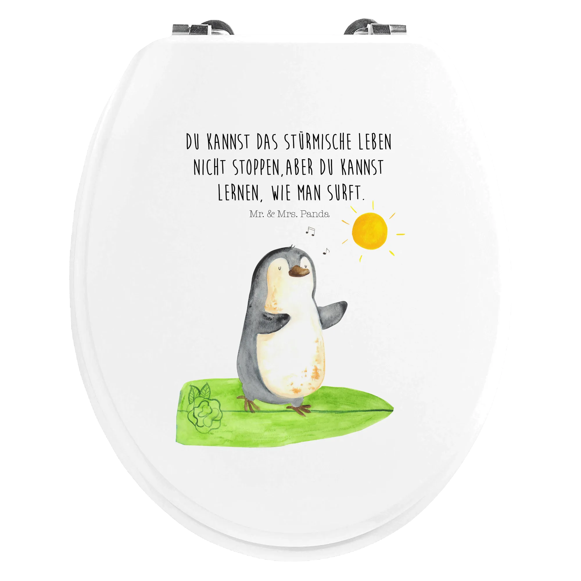 Der Motiv WC Sitz "Pinguin Surfer" aus der bezaubernden Pinguin-Kollektion von Mr. & Mrs. Panda ist nicht nur ein praktisches Badezimmeraccessoire, sondern auch ein echter Hingucker. Er bringt die fröhliche Energie des Surfens direkt in dein Zuhause! Mit dem süßen Pinguin, der auf seinem Surfbrett reitet, zauberst du jedem ein Lächeln ins Gesicht. Dieser stilvolle WC-Sitz wurde mit dem motivierenden Spruch „Du kannst das stürmische Leben nicht stoppen, aber du kannst lernen, wie man surft.“ veredelt und inspiriert dich, das Leben in vollen Zügen zu genießen.