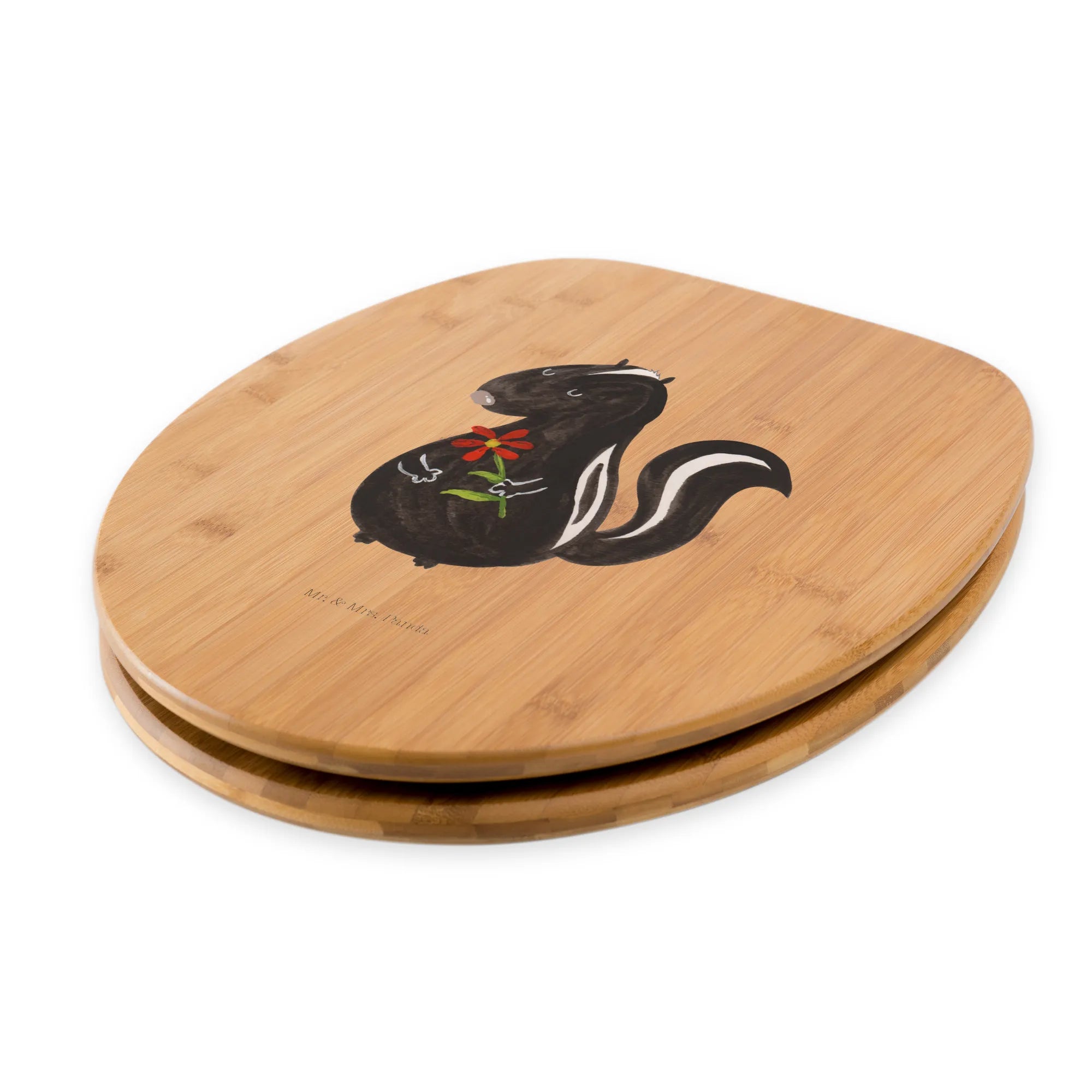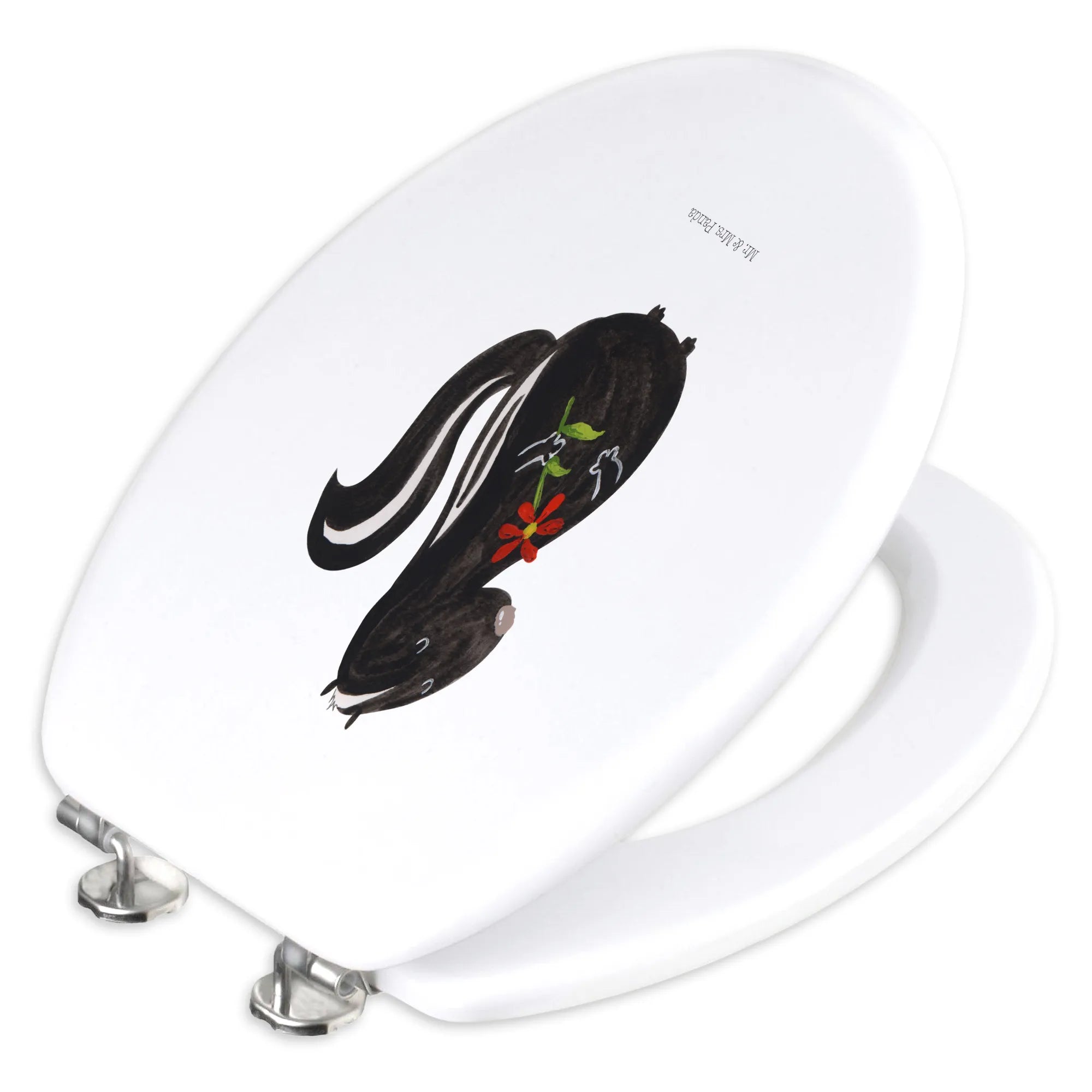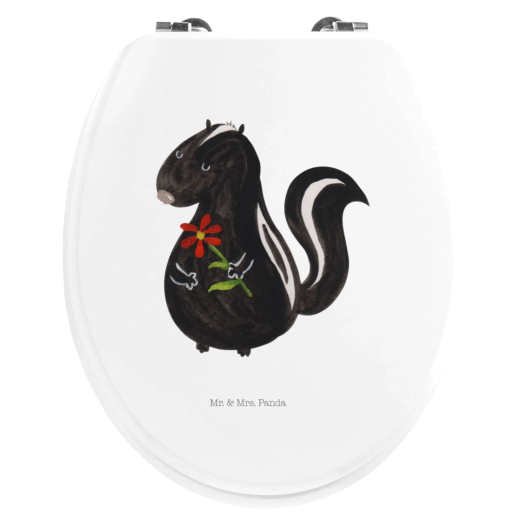 Mit dem Motiv WC Sitz "Stinktier Blume" aus der Stinktier-Kollektion von Mr. & Mrs. Panda holst du dir ein kleines Stück Freude in dein Zuhause! Schenke dir selbst oder anderen ein Stück Lebensfreude und zaubere mit diesem niedlichen Accessoire ein Lächeln in jedes Badezimmer.