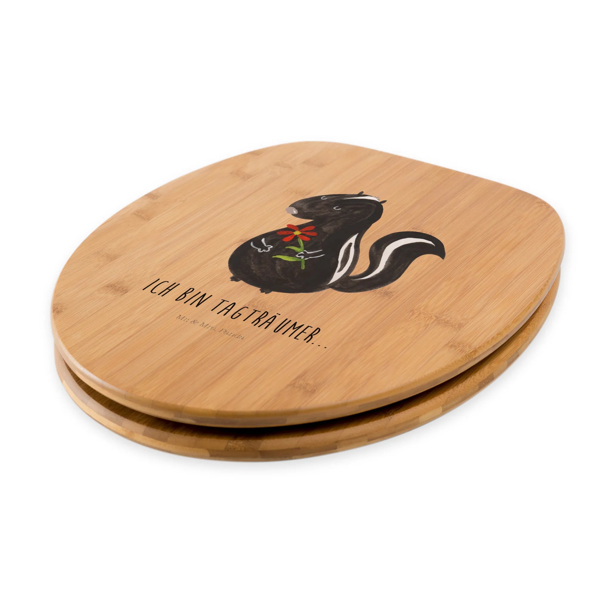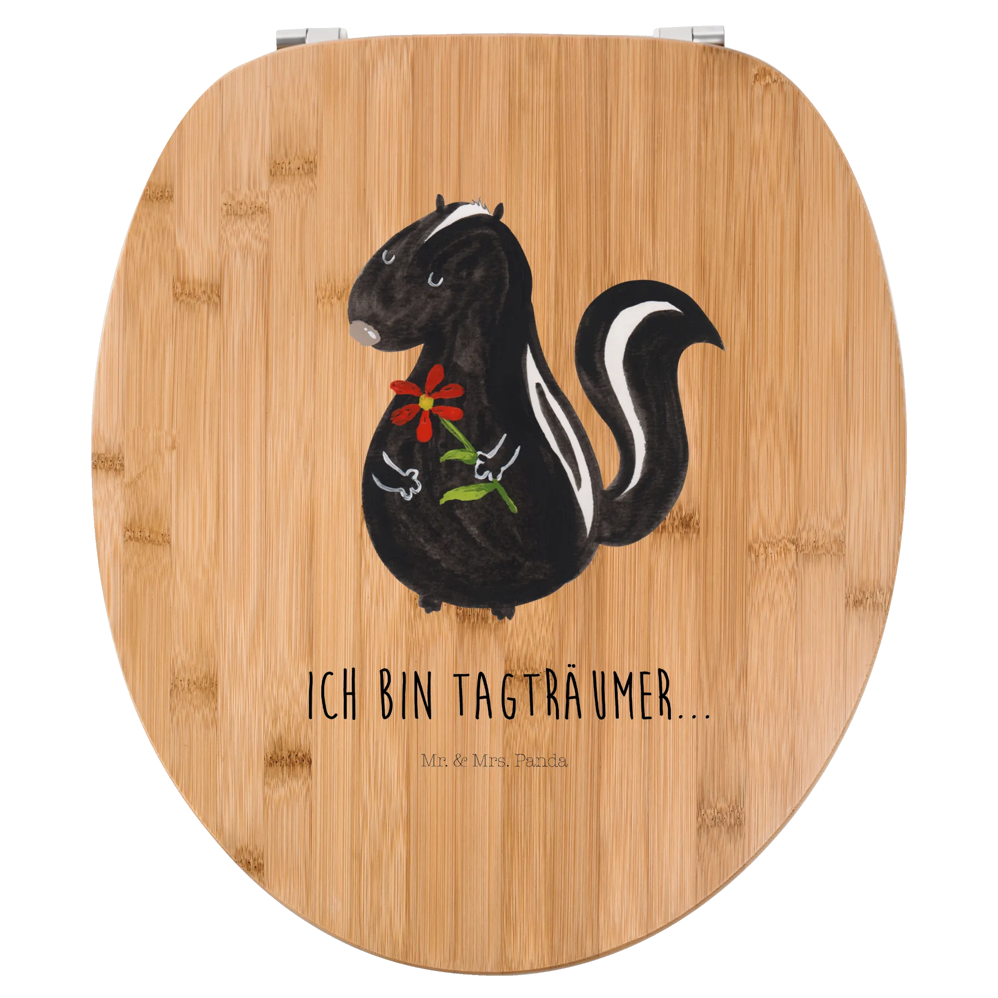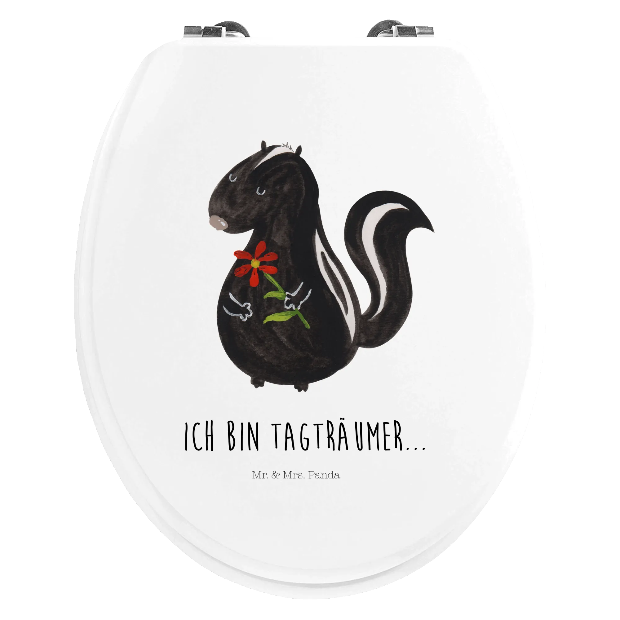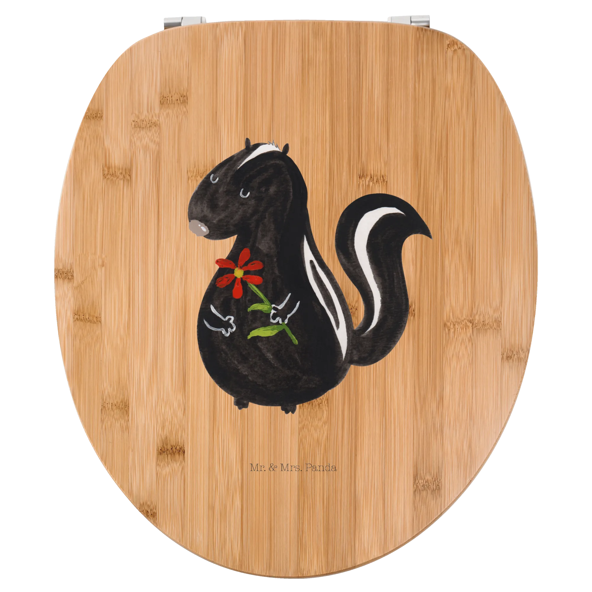 Mit dem Motiv WC Sitz "Stinktier Blume" aus der Stinktier-Kollektion von Mr. & Mrs. Panda holst du dir ein kleines Stück Freude in dein Zuhause! Schenke dir selbst oder anderen ein Stück Lebensfreude und zaubere mit diesem niedlichen Accessoire ein Lächeln in jedes Badezimmer.