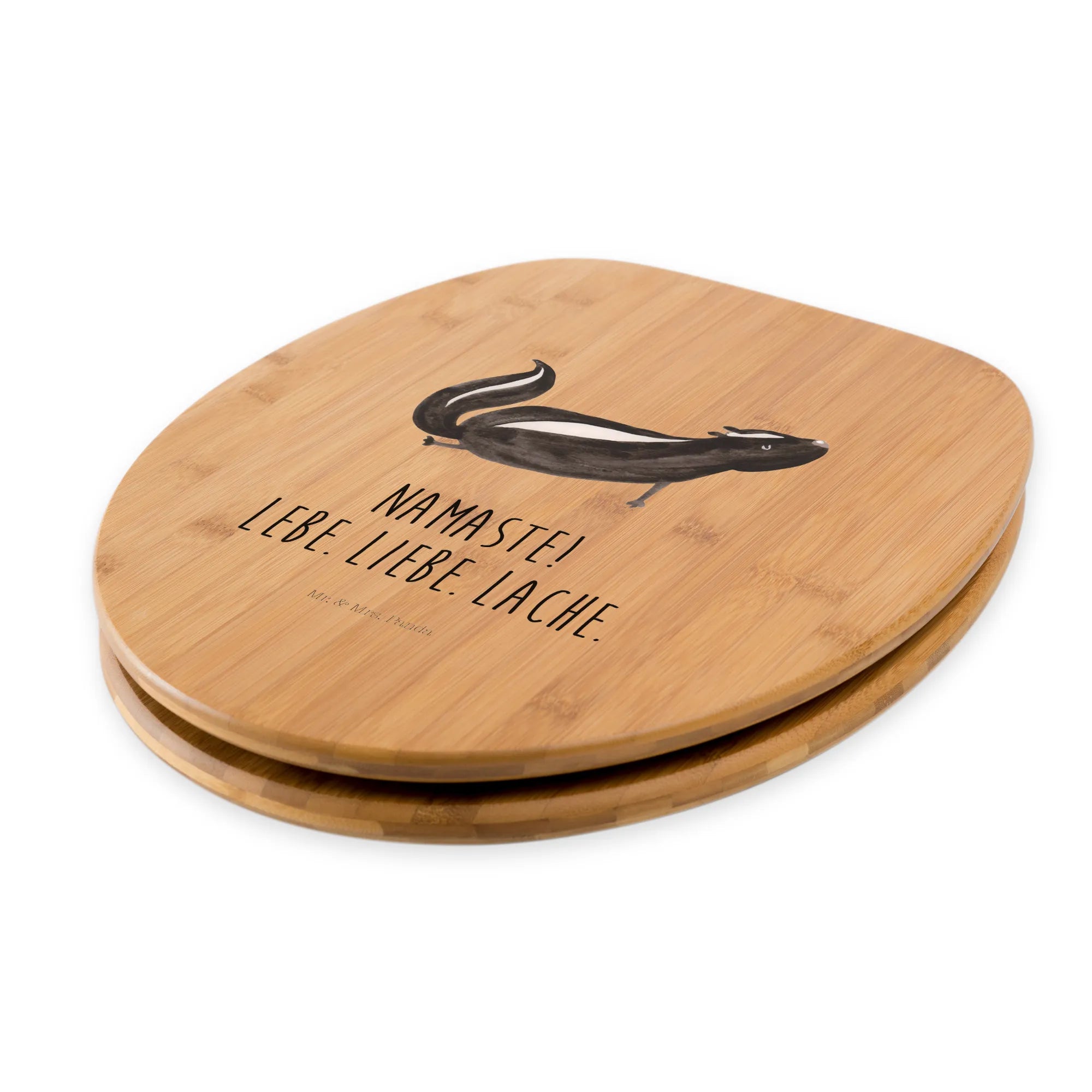 Perfektes Geschenk, einfach montierbar, hochwertig verarbeitet – das ist der Motiv WC Sitz Stinktier Yoga von Mr. & Mrs. Panda!