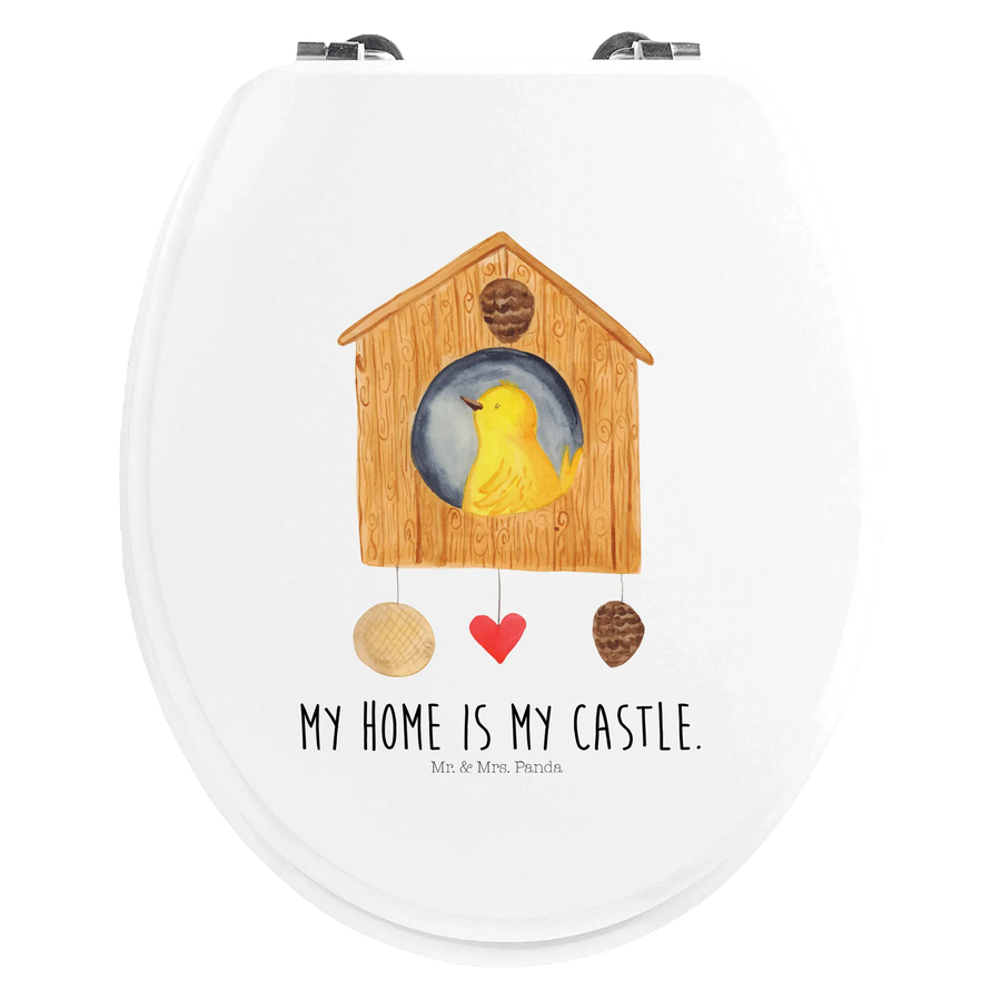 Motiv WC Sitz Vogel Haus - mit Spruch - Hartfaser Holzkern Weiß - Weiß