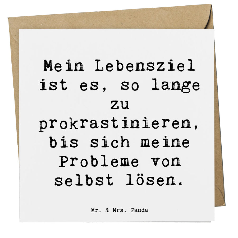Diese wunderschöne, quadratische Karte von Mr. & Mrs. Panda ist nicht nur ein einfacher Gruß, sondern ein besonderes Kunstwerk, das mit viel Liebe gestaltet wurde. Mit einem einzigartigen Spruch "Mein Lebensziel ist es, so lange zu prokrastinieren, bis sich meine Probleme von selbst lösen." spricht sie nahezu jeden an, der die Leichtigkeit des Lebens schätzt.