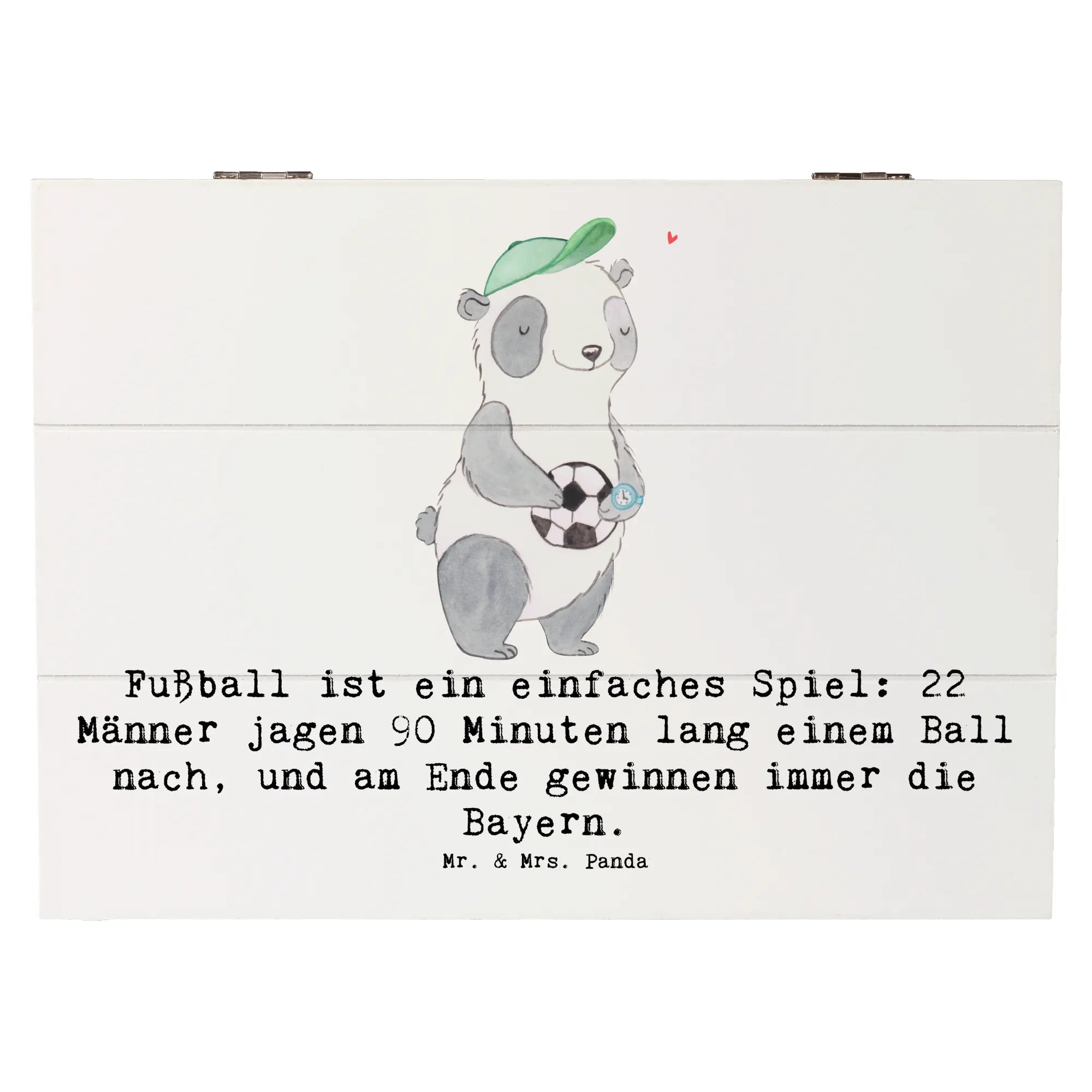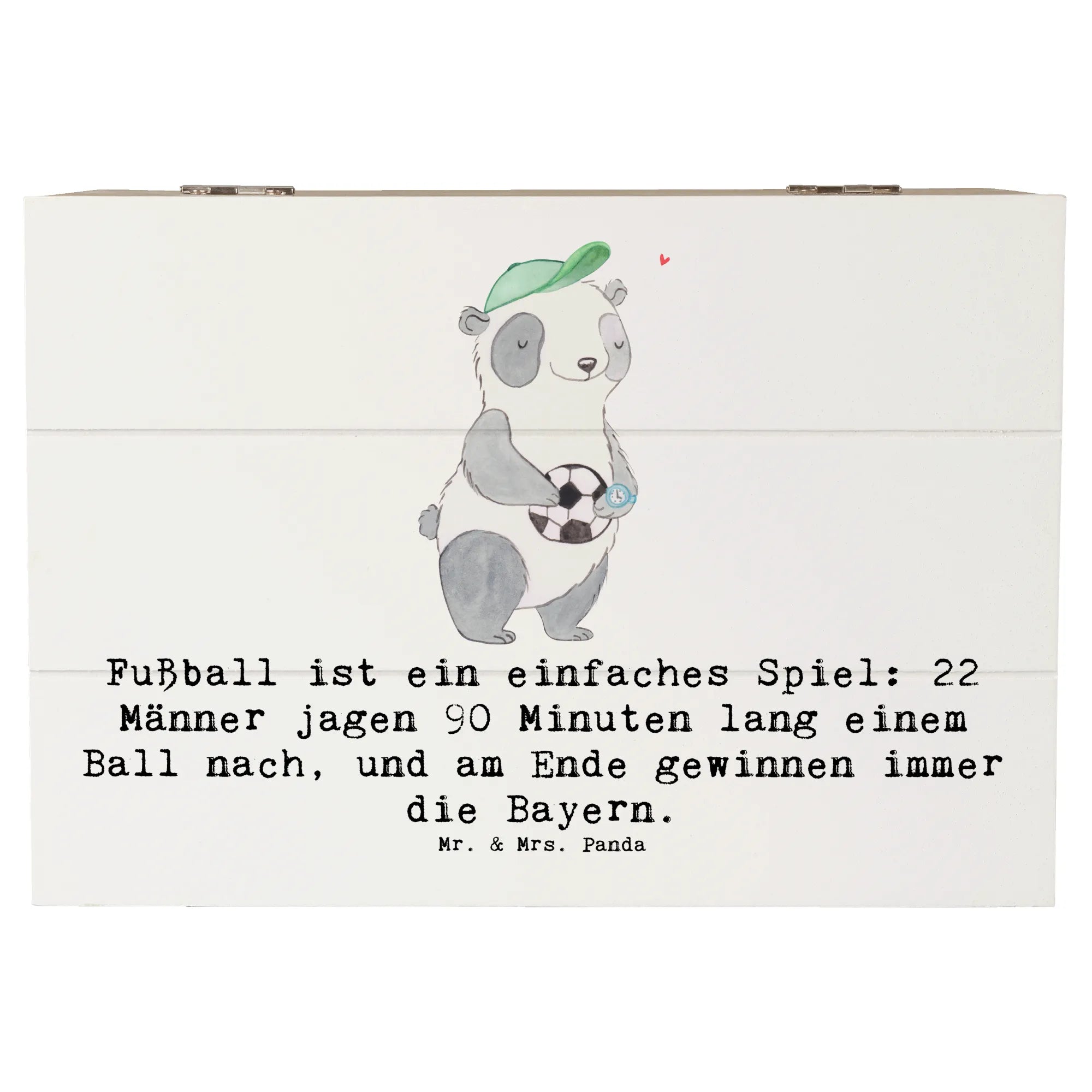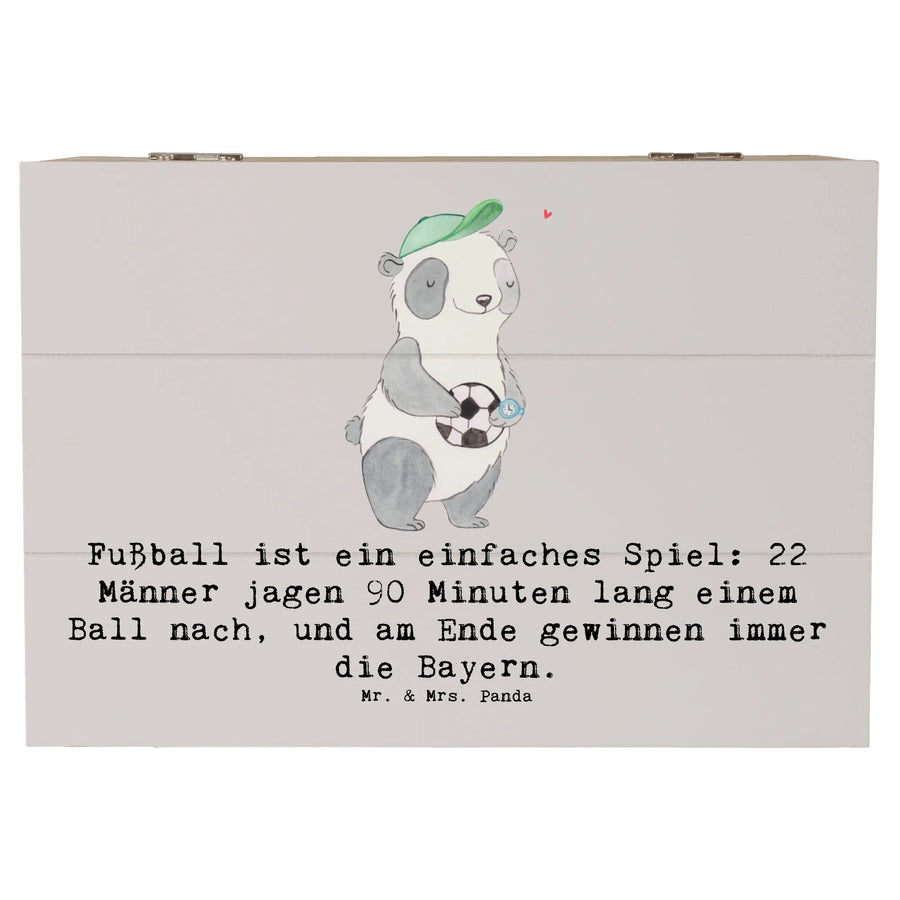 Die wunderschöne Holzkiste von Mr. & Mrs. Panda mit dem Motiv Fußball ist das perfekte Geschenk für alle Sportbegeisterten. Egal ob Du selbst ein leidenschaftlicher Fußballfan bist oder jemanden beschenken möchtest, diese Kiste ist ideal, um Erinnerungen festzuhalten. Der liebevoll gestaltete Spruch 'Fußball ist ein einfaches Spiel: 22 Männer jagen 90 Minuten lang einem Ball nach, und am Ende gewinnen immer die Bayern.' bringt alle Fußballfreunde zum Schmunzeln und zeigt Deine Verbundenheit zum Sport.