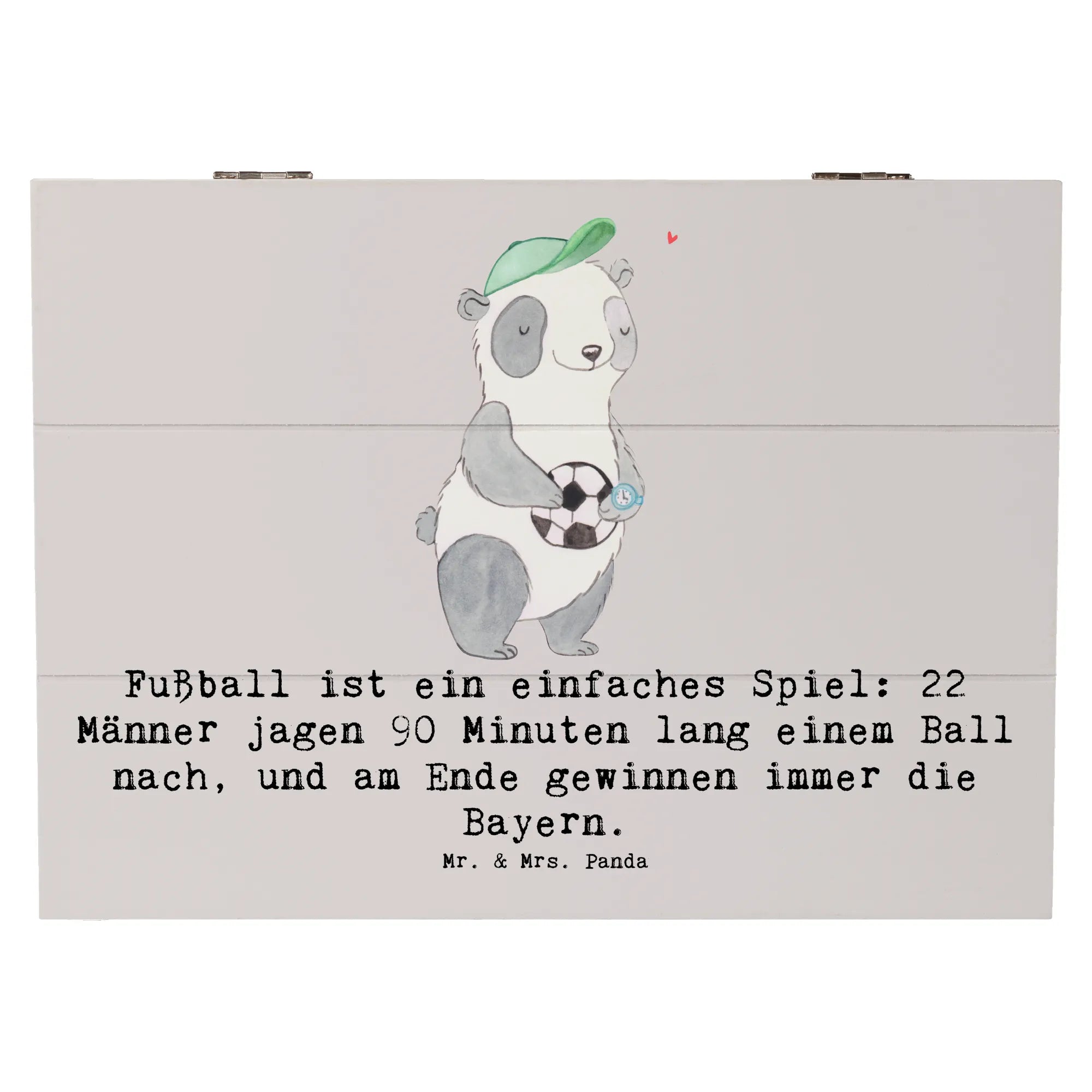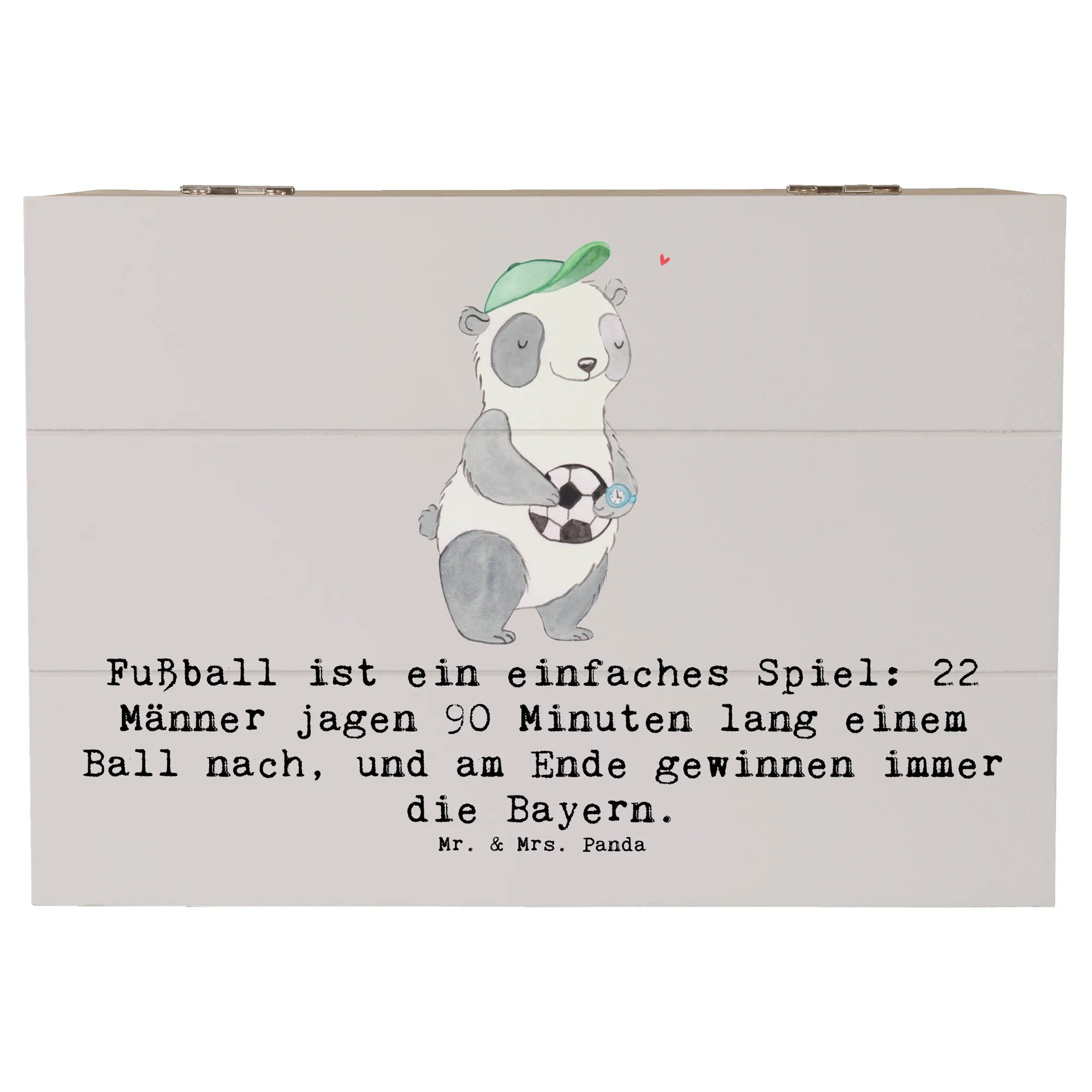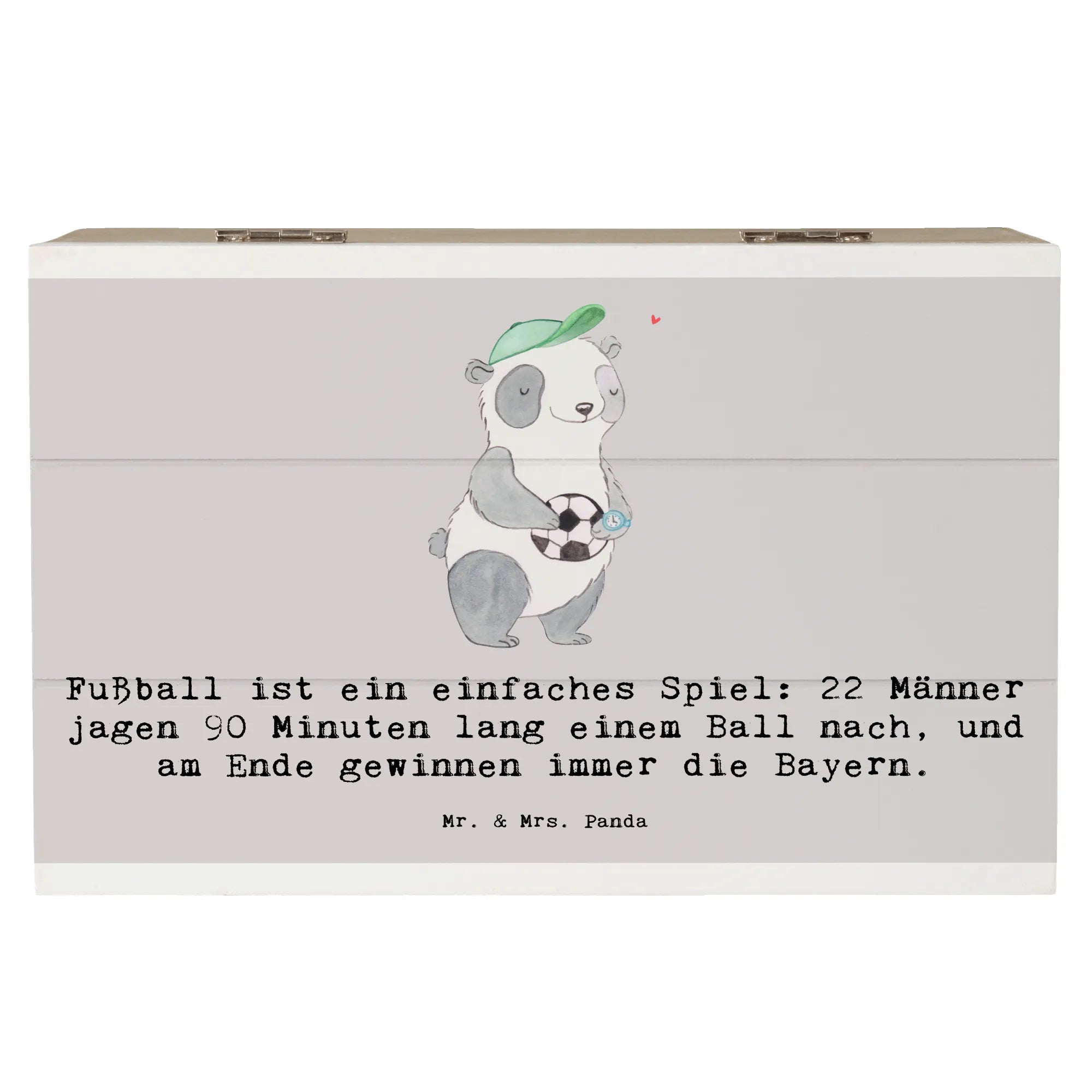 Die wunderschöne Holzkiste von Mr. & Mrs. Panda mit dem Motiv Fußball ist das perfekte Geschenk für alle Sportbegeisterten. Egal ob Du selbst ein leidenschaftlicher Fußballfan bist oder jemanden beschenken möchtest, diese Kiste ist ideal, um Erinnerungen festzuhalten. Der liebevoll gestaltete Spruch 'Fußball ist ein einfaches Spiel: 22 Männer jagen 90 Minuten lang einem Ball nach, und am Ende gewinnen immer die Bayern.' bringt alle Fußballfreunde zum Schmunzeln und zeigt Deine Verbundenheit zum Sport.