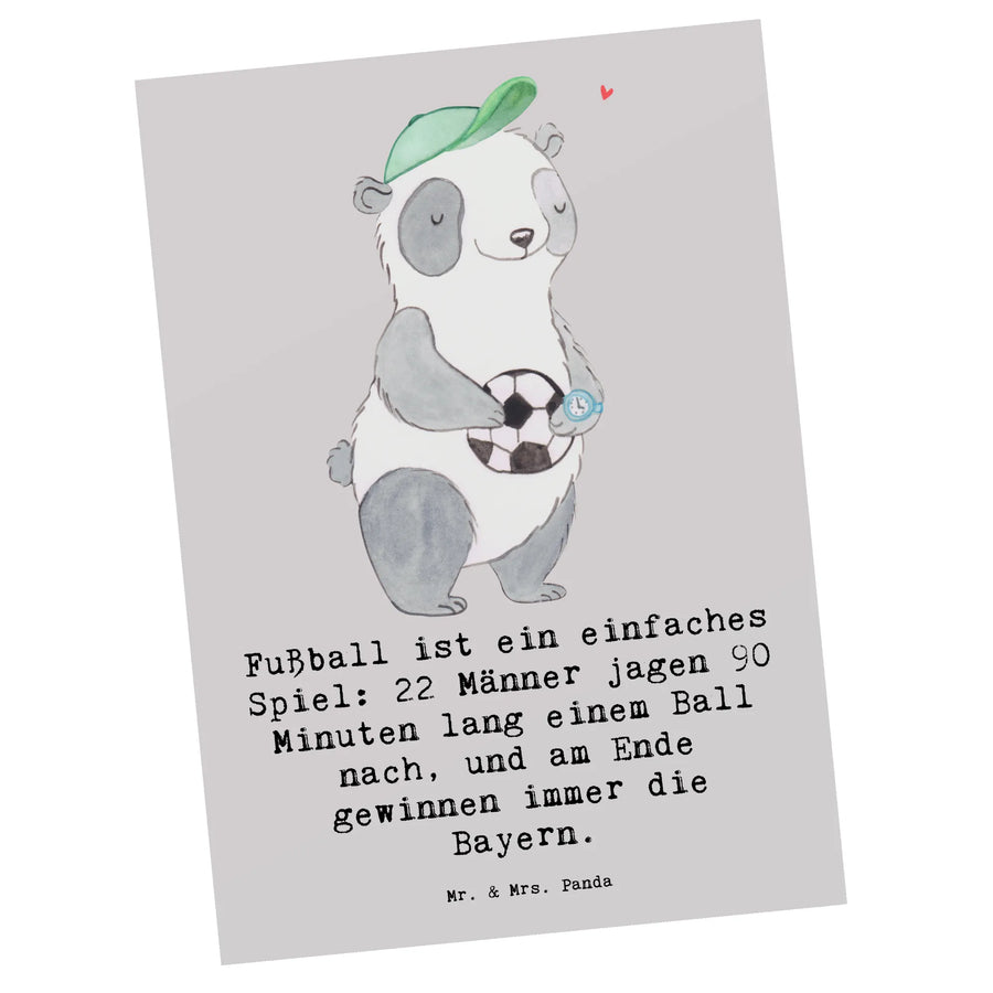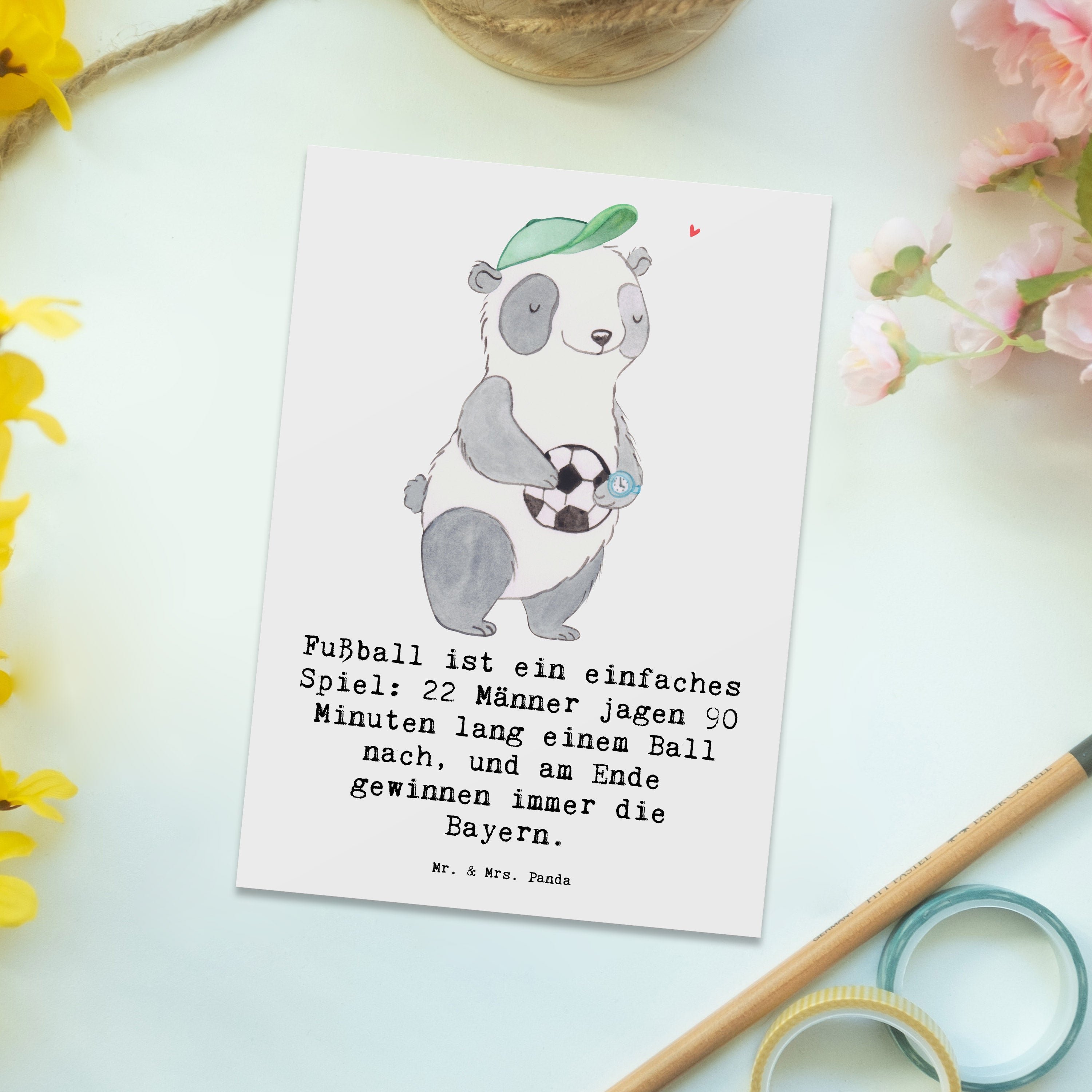 Entdecke die perfekte Postkarte für alle Fußballfans! Diese einzigartige Postkarte von Mr. & Mrs. Panda ist das ideale Geschenk für Sportliebhaber, die den Teamgeist und die Leidenschaft für Fußball feiern möchten. Mit dem witzigen Spruch "Fußball ist ein einfaches Spiel: 22 Männer jagen 90 Minuten lang einem Ball nach, und am Ende gewinnen immer die Bayern." ist diese Karte nicht nur ein schöner Gruß, sondern auch ein Lächeln für jeden, der sich für seine Lieblingssportart begeistert.