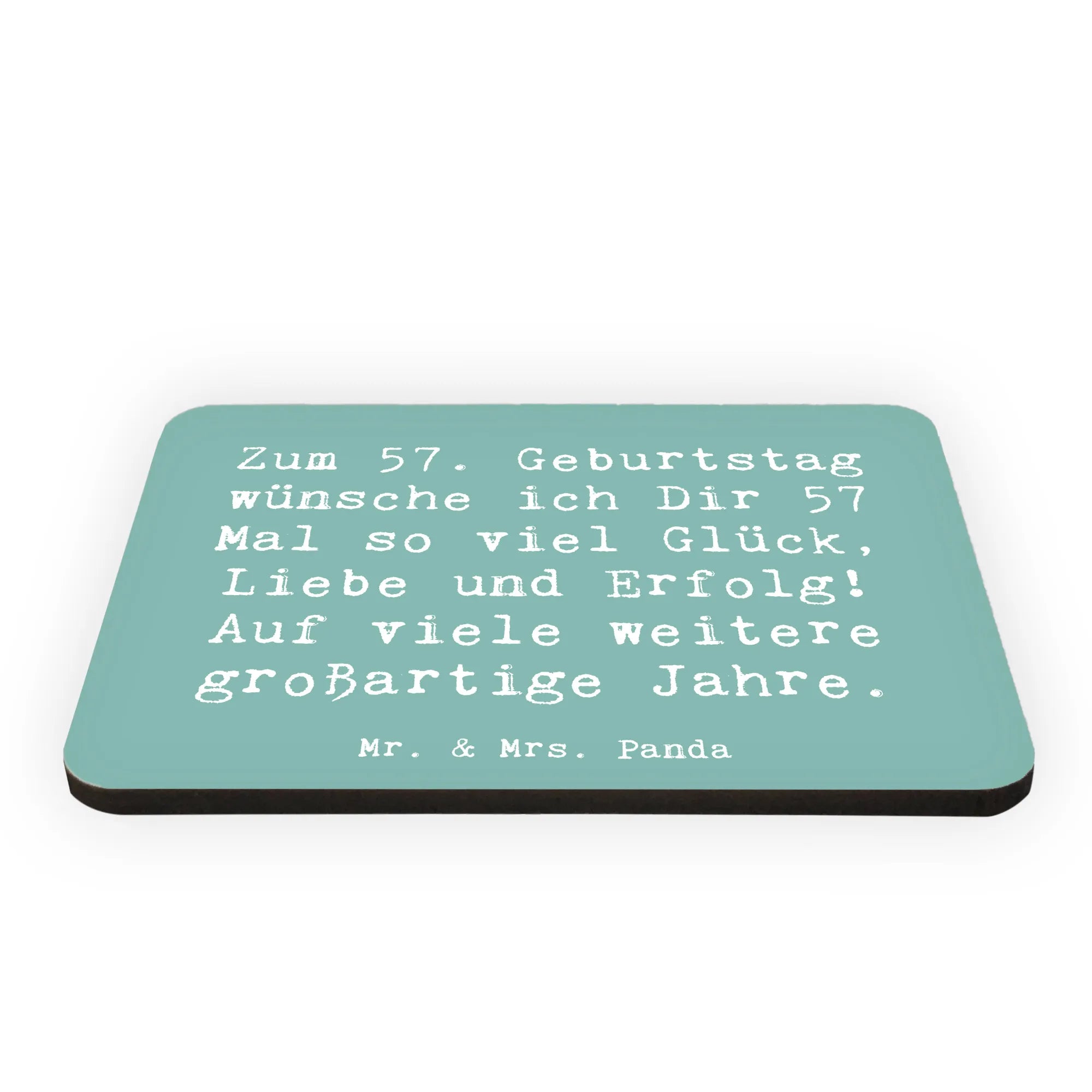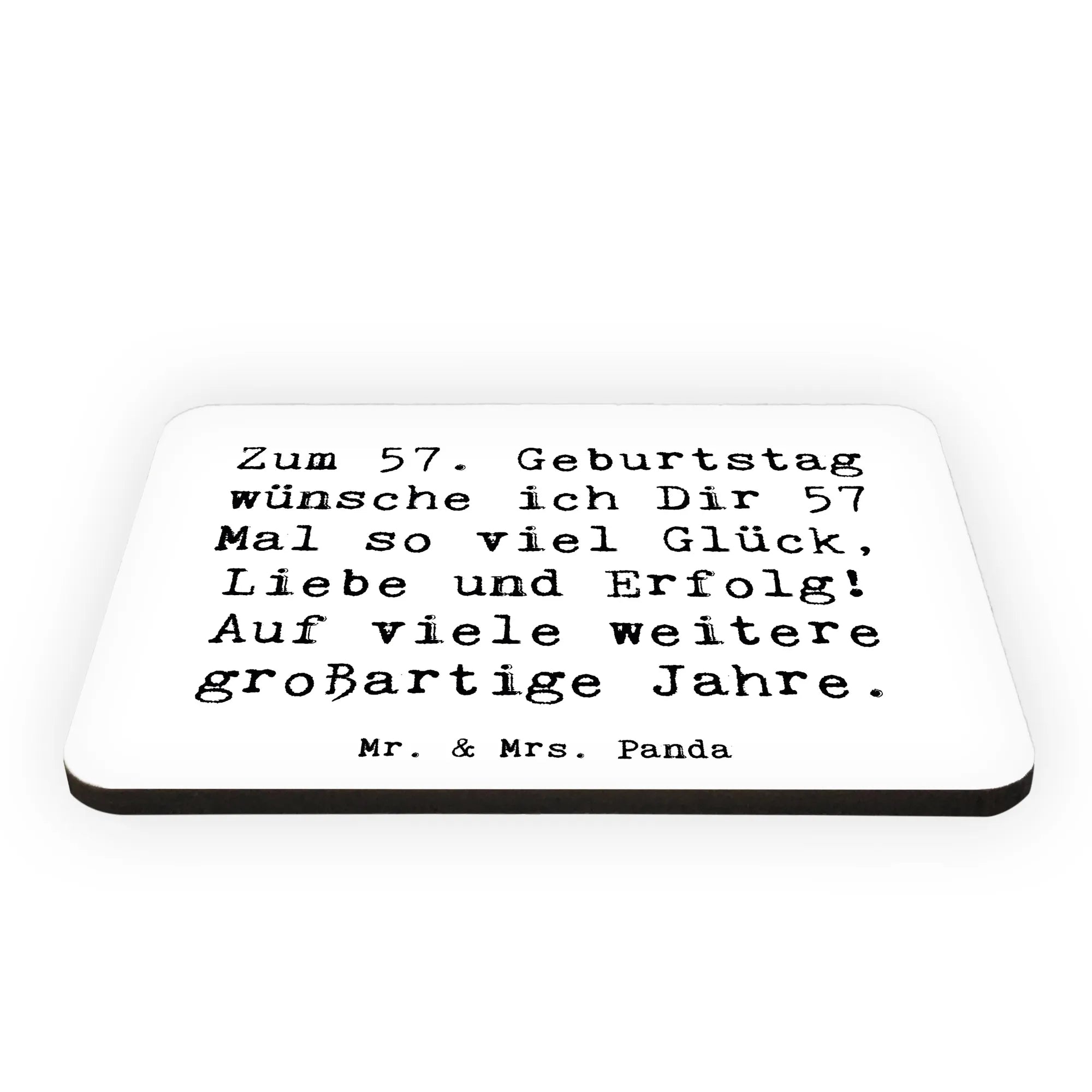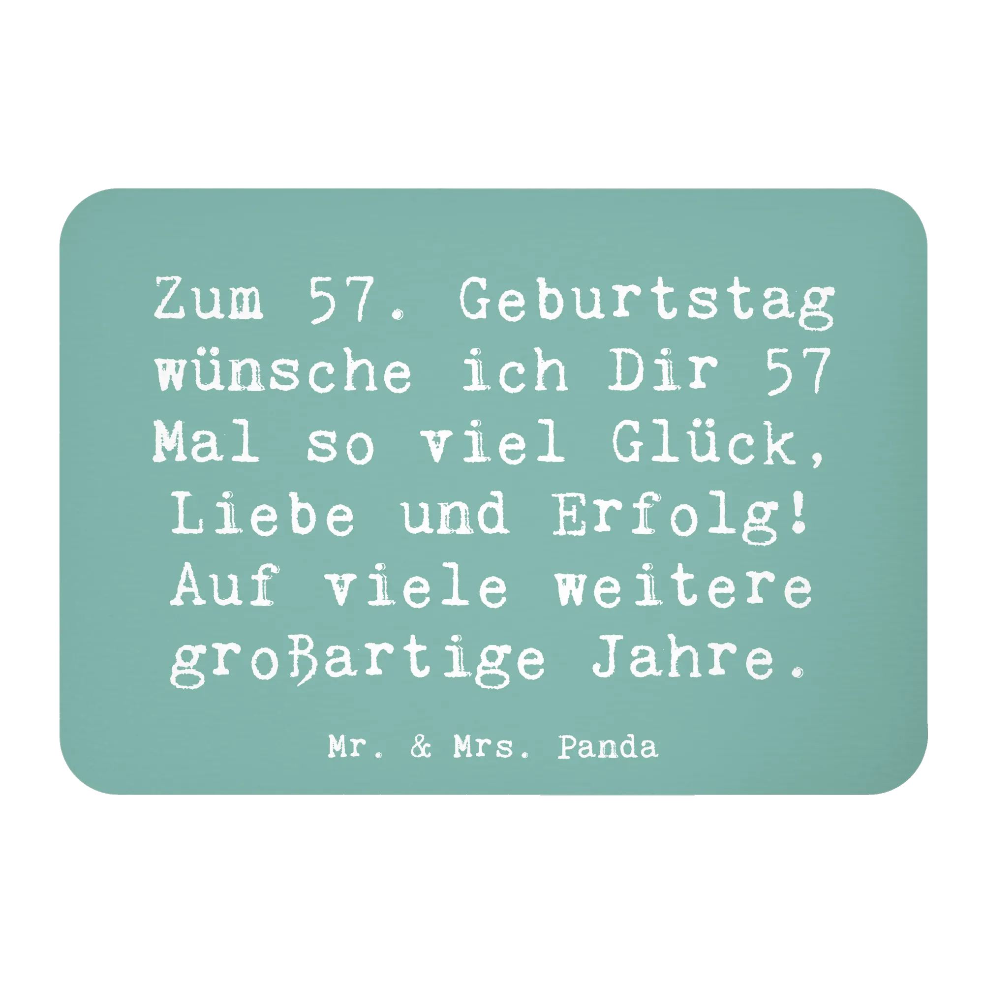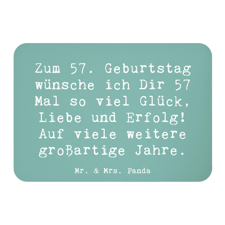 Der Magnet zum 57. Geburtstag von Mr. & Mrs. Panda ist das perfekte Geschenk für all jene, die diesen besonderen Tag gebührend feiern möchten. Mit dem liebevollen Spruch 'Zum 57. Geburtstag wünsche ich Dir 57 Mal so viel Glück, Liebe und Erfolg! Auf viele weitere großartige Jahre.' zaubert dieser Magnet ein Lächeln auf jedes Gesicht.