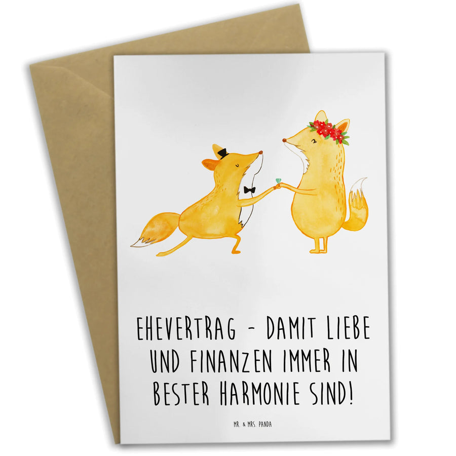 Entdecke unsere zauberhafte Grußkarte "Ehevertrag - Damit Liebe und Finanzen immer in bester Harmonie sind!" aus der Hochzeitskollektion von Mr. & Mrs. Panda! Diese wunderschöne und einzigartige Karte ist nicht nur ein Hingucker, sondern auch ein perfektes Geschenk für jede Hochzeit oder Verlobung. Mit viel Liebe zum Detail gestaltet, wird sie jeden Beschenkten garantiert begeistern.