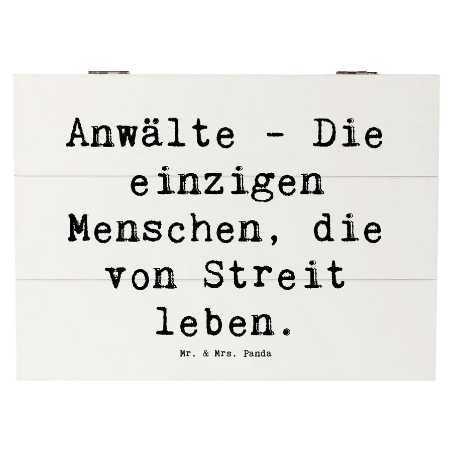 Die wunderschöne Holzkiste von Mr. & Mrs. Panda ist das perfekte Geschenk für alle Anwälte und Juristen! Mit dem liebevoll gestalteten Spruch "Anwälte - Die einzigen Menschen, die von Streit leben." bringt sie ein Lächeln in jeden Anwaltsalltag.